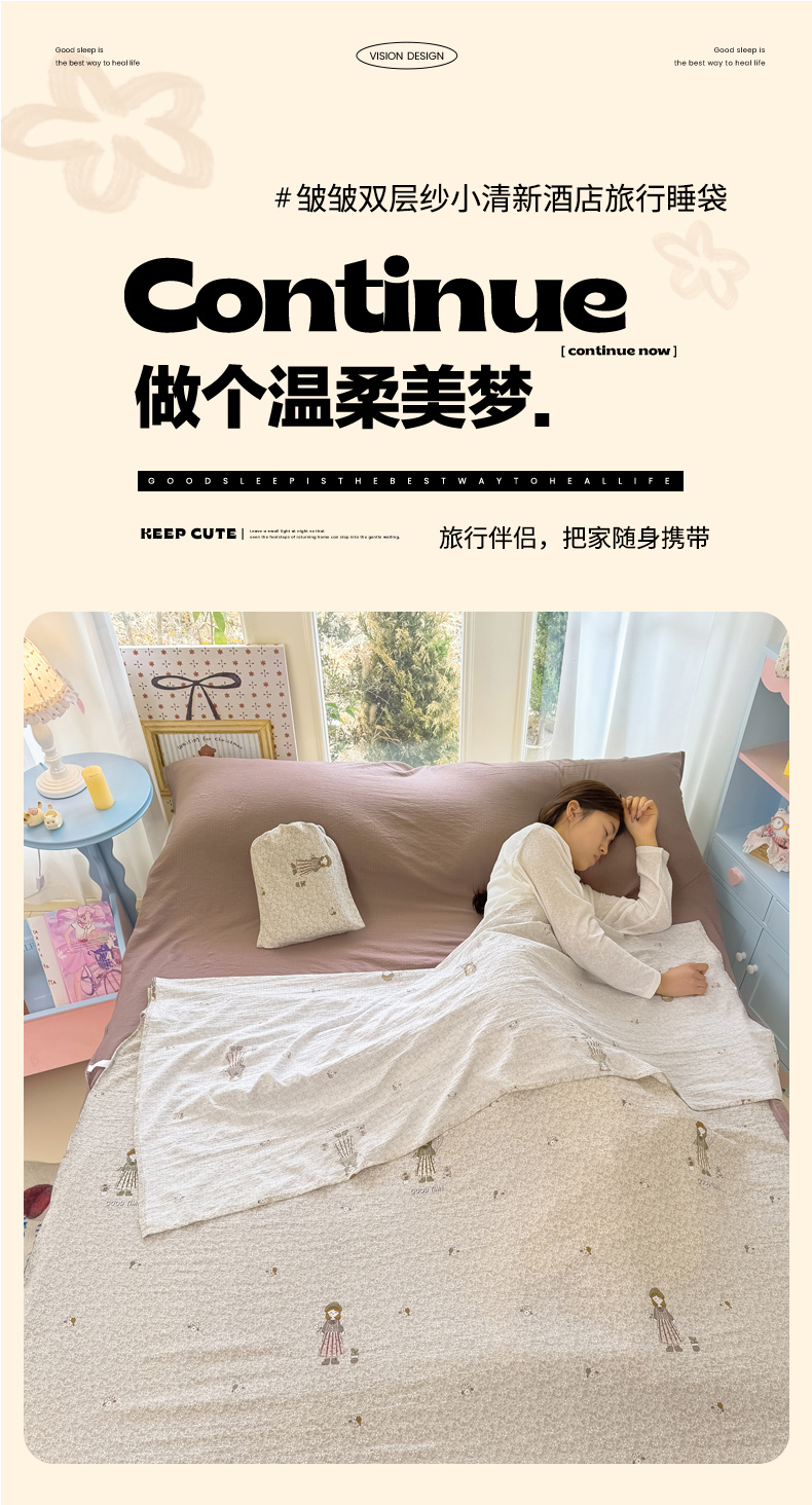 商品名称:Sweet dreams甜梦 2026新款A类皱皱双层纱小清新酒店一体式旅行睡袋 田园姑娘
