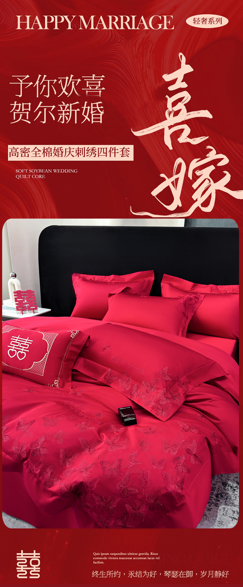 当前位置: 91家纺网 > 商品网购 > 床品套件 > 四件套 > 婚庆四件套 > 星蕴家纺 2026新款高档全棉婚庆四件套 挚爱一生