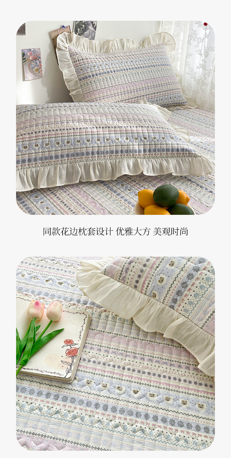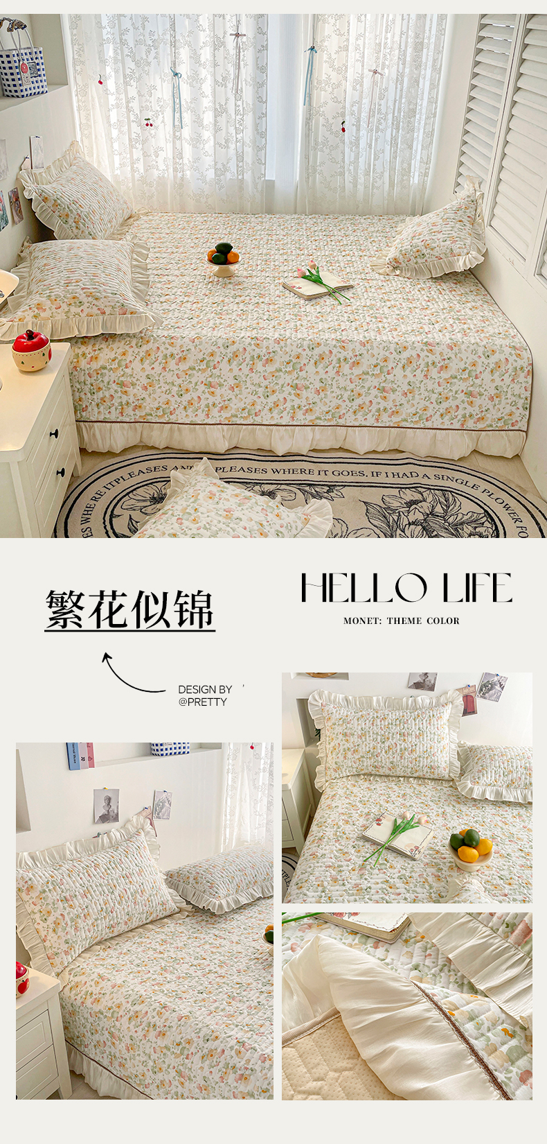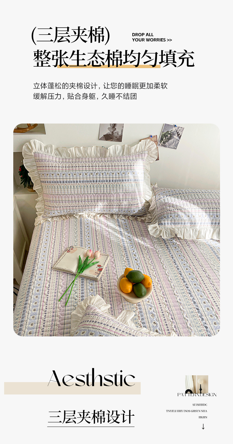 (总)美优兰 2025全棉法式花边双层纱水洗棉花床盖三件套(提供买家秀),组合图仅供参考,半亩花田,波点绿,春意盎然粉,春意盎然绿,玛德琳紫,南风,如画,写意,朱樱