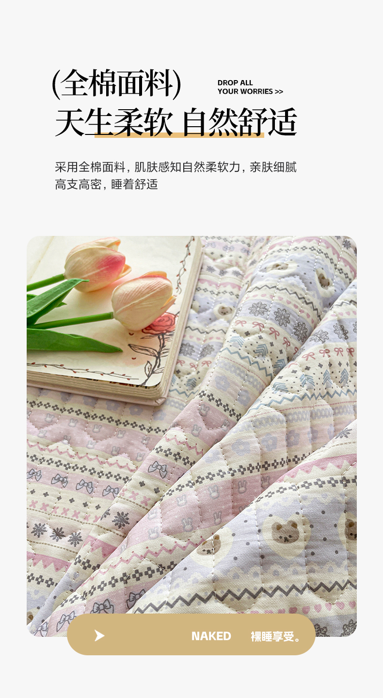(总)美优兰 2025春款全棉单面高温砂洗床盖,彩色煤球,潘多拉,顽皮熊,小奶狗,小松鼠,小猪日记,艾米,爱心狗,初见,春晓,法式庄园,花环,浆果小兔,咖啡小熊,兰亭序,清欢,水墨丹青,庭花