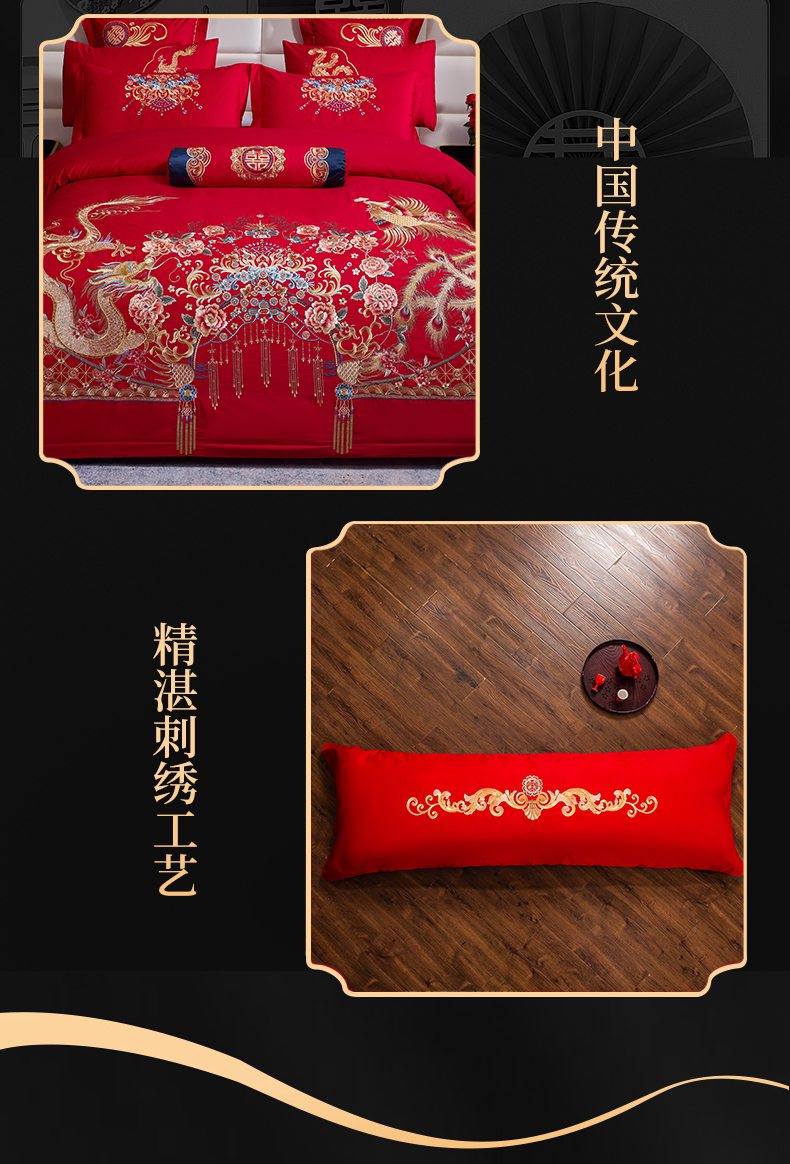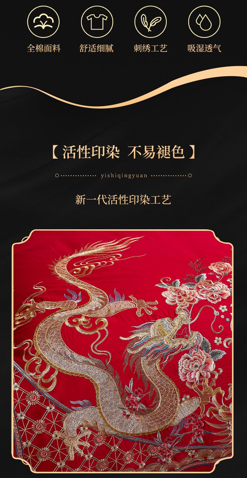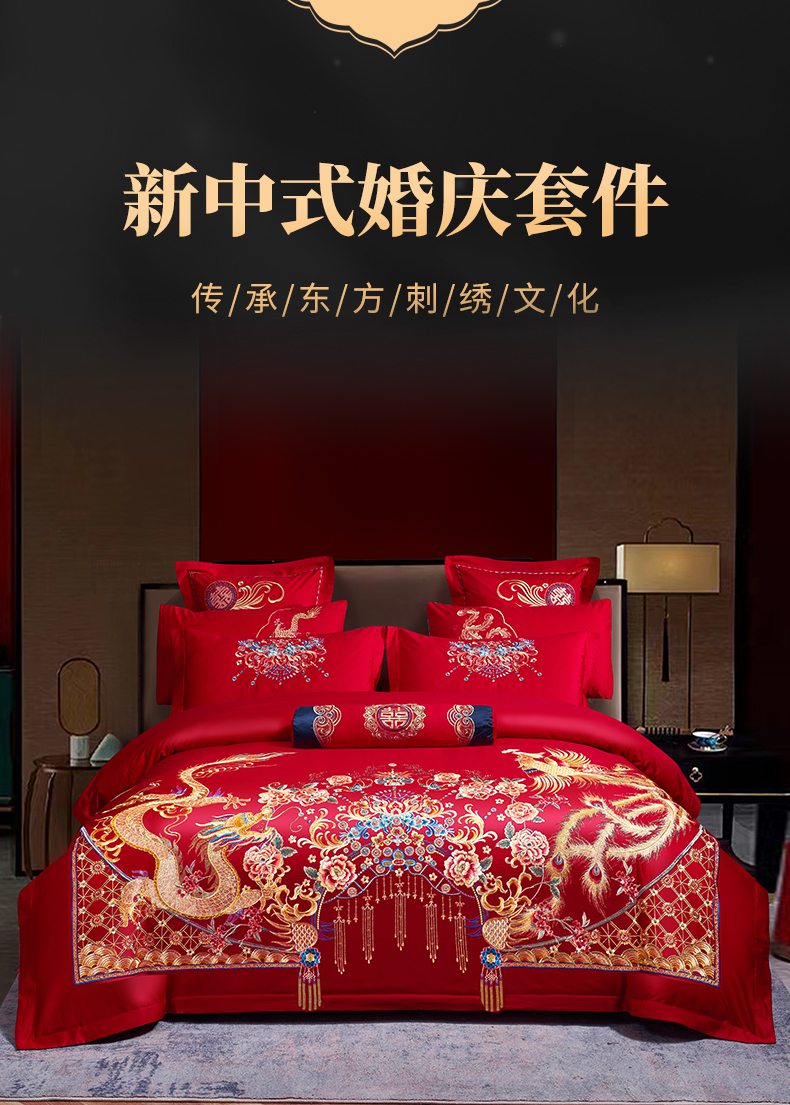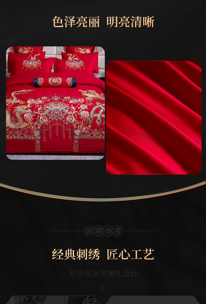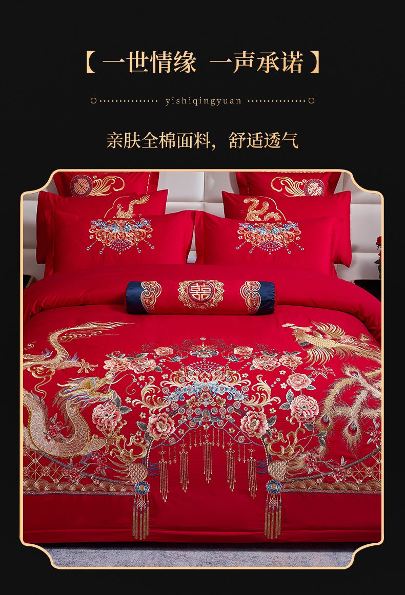 当前位置: 91家纺网 > 商品网购 > 床品套件 > 四件套 > 婚庆四件套 > 慕她家纺 2026慕她大花工艺款全棉纯棉婚庆四件套大红色刺绣结婚床上用品 凤冠霞帔