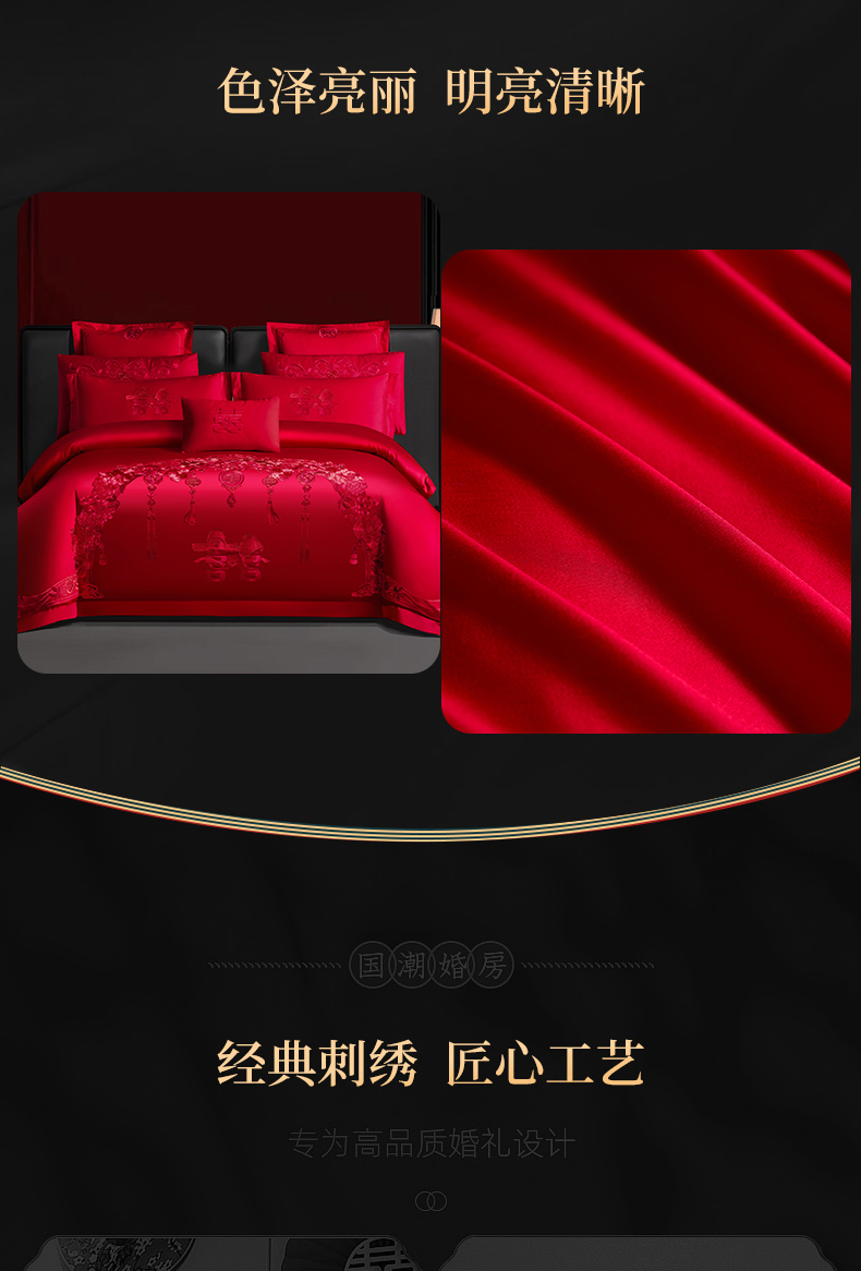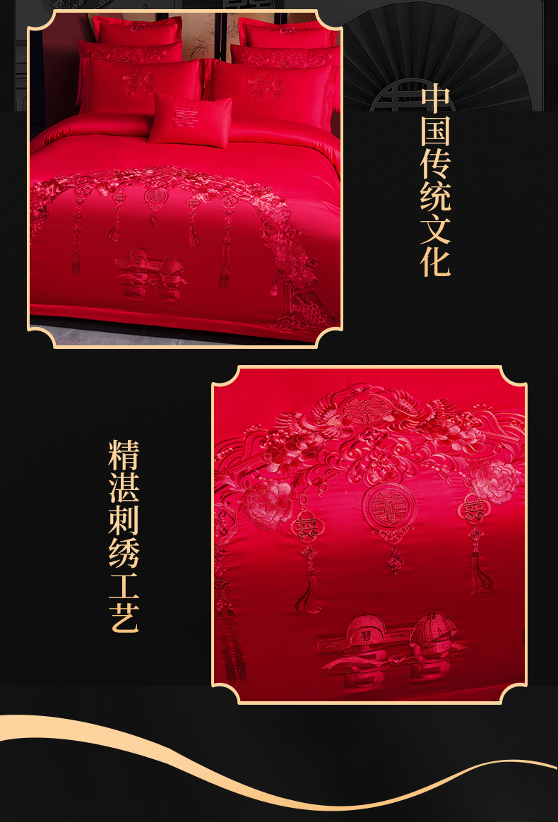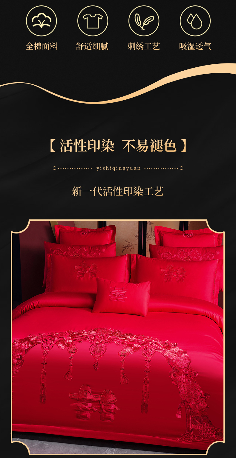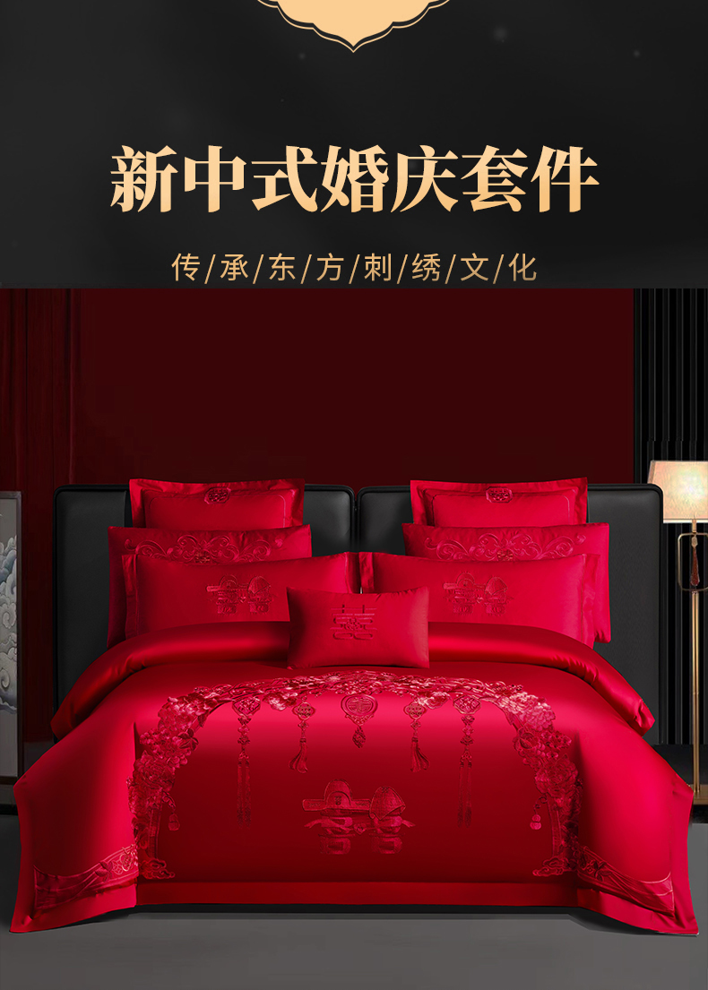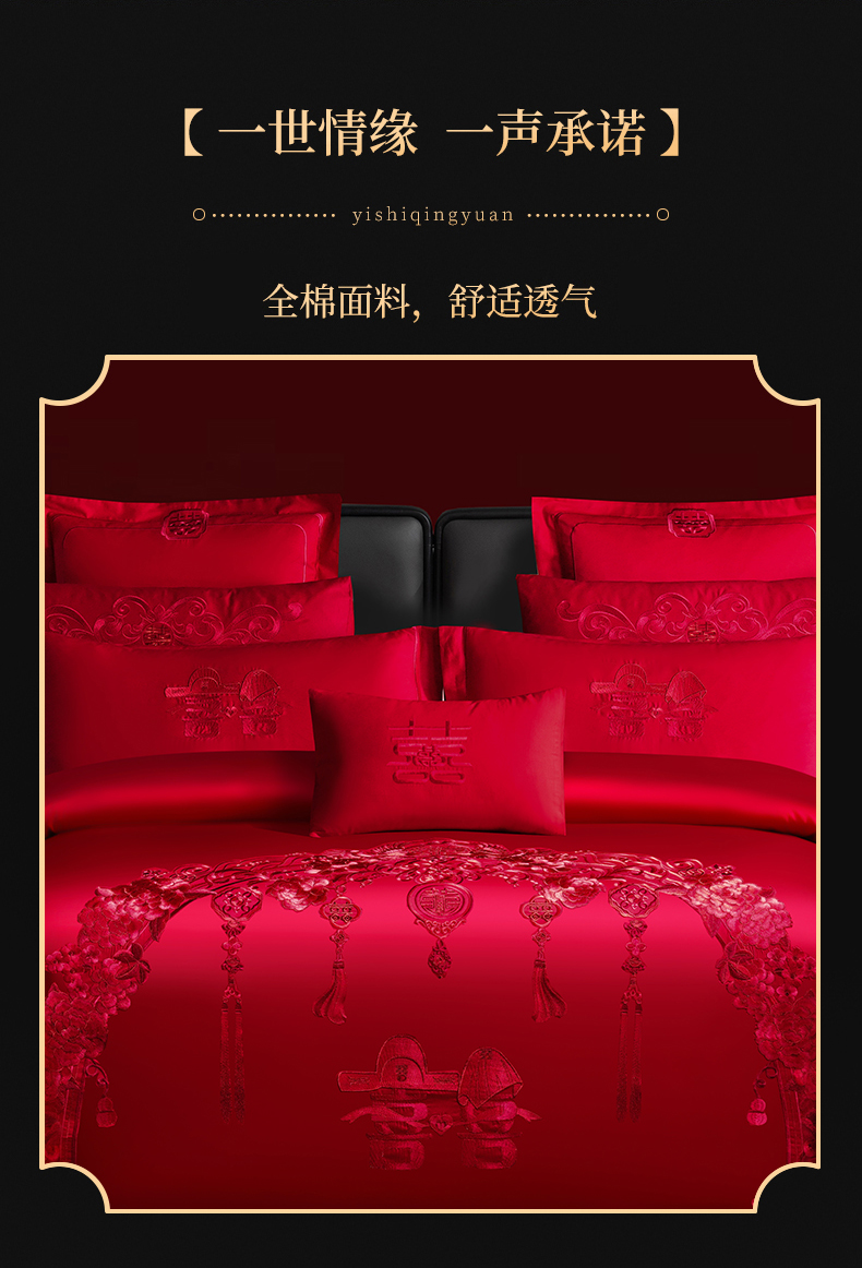 当前位置: 91家纺网 > 商品网购 > 床品套件 > 四件套 > 婚庆四件套 > 慕她家纺 2026慕她大花工艺款全棉纯棉婚庆四件套大红色刺绣结婚床上用品 走进幸福 红