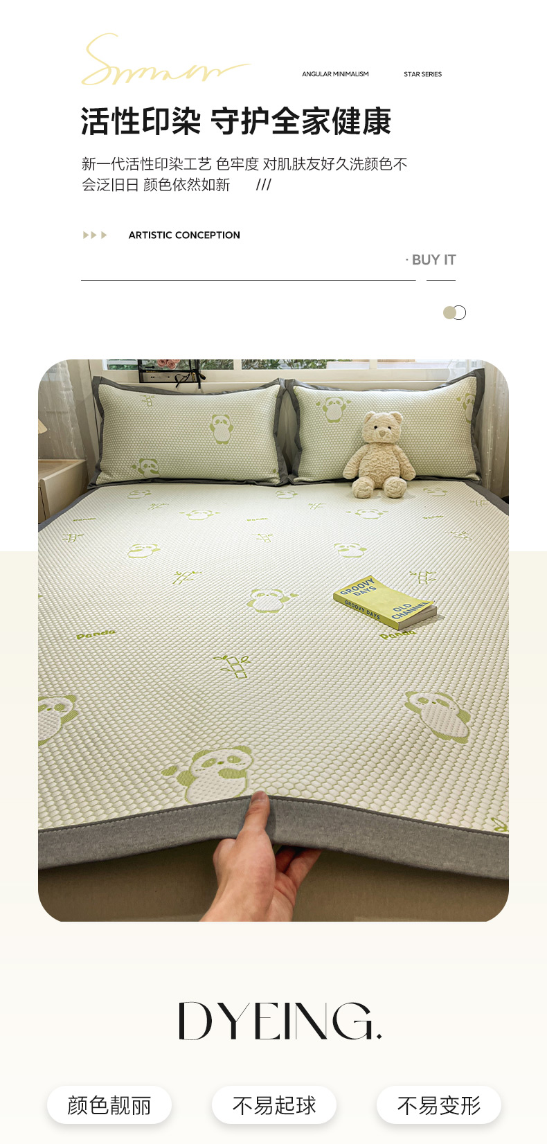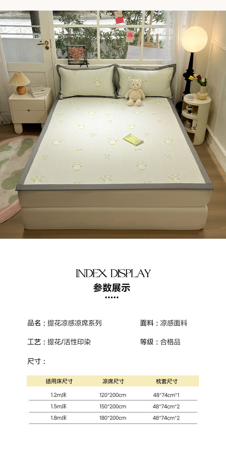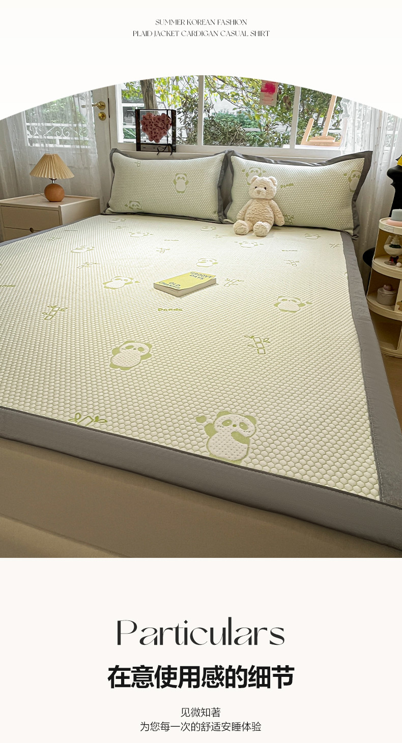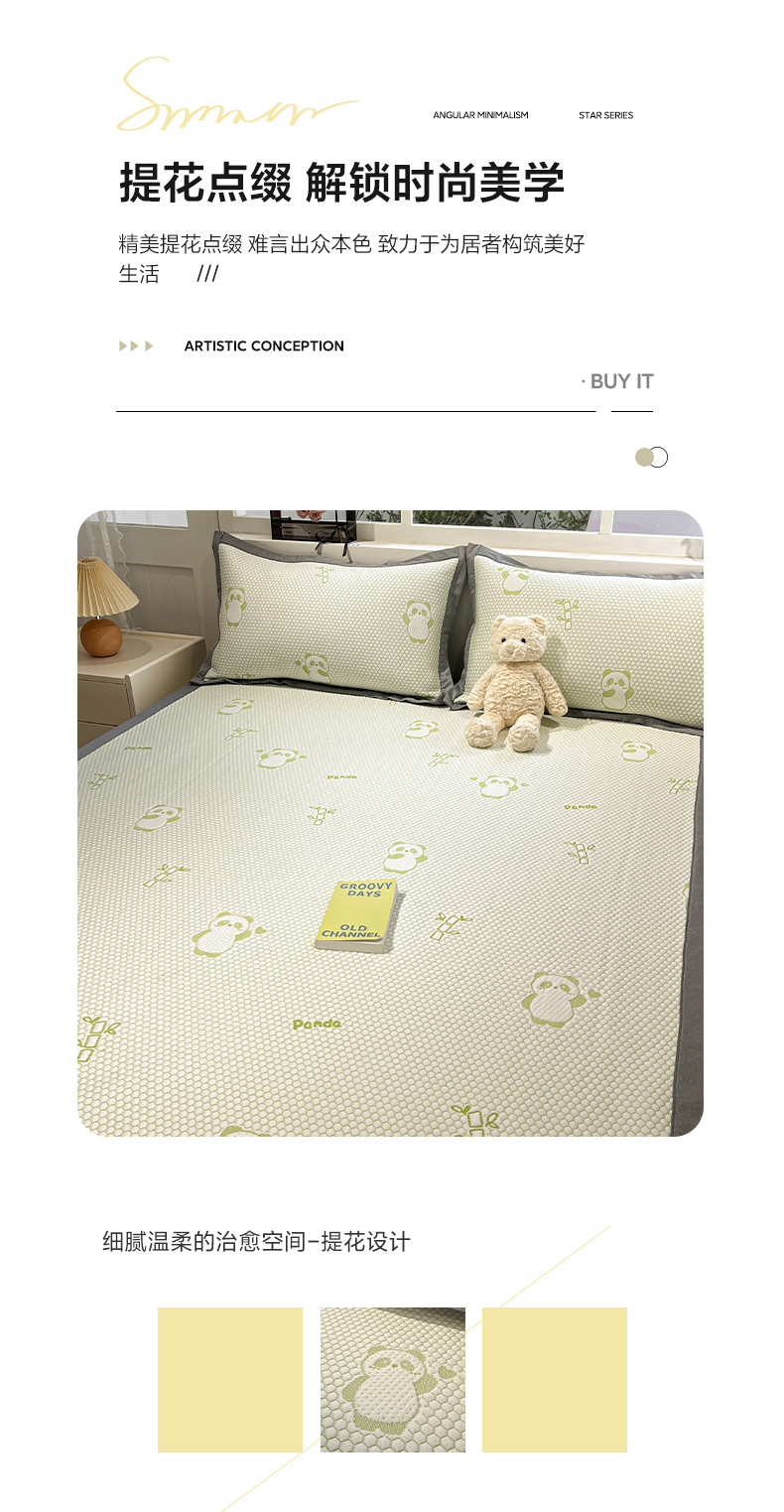商品名称:雅居纺家纺 2026新款A类加厚三明治底提花小清新凉感席床单款凉席席子 熊猫竹子