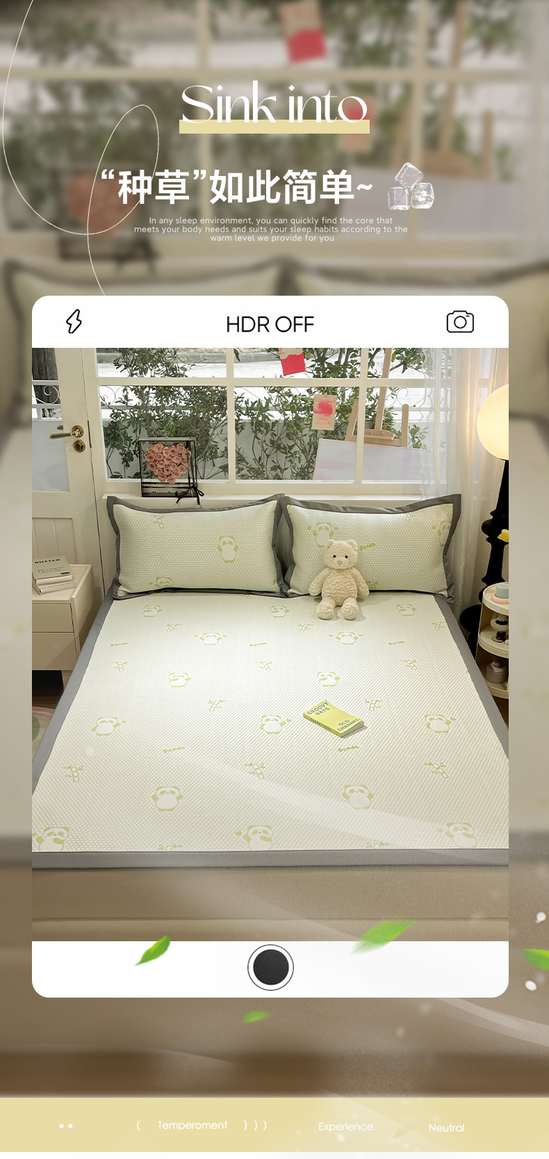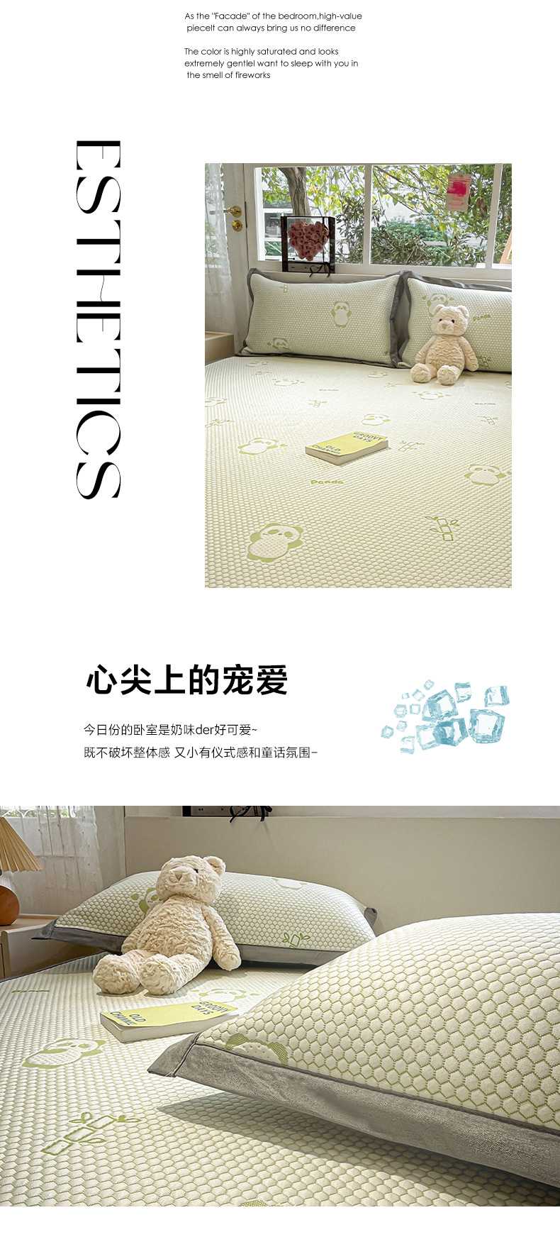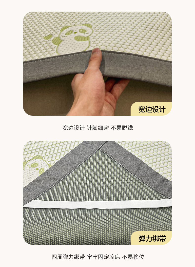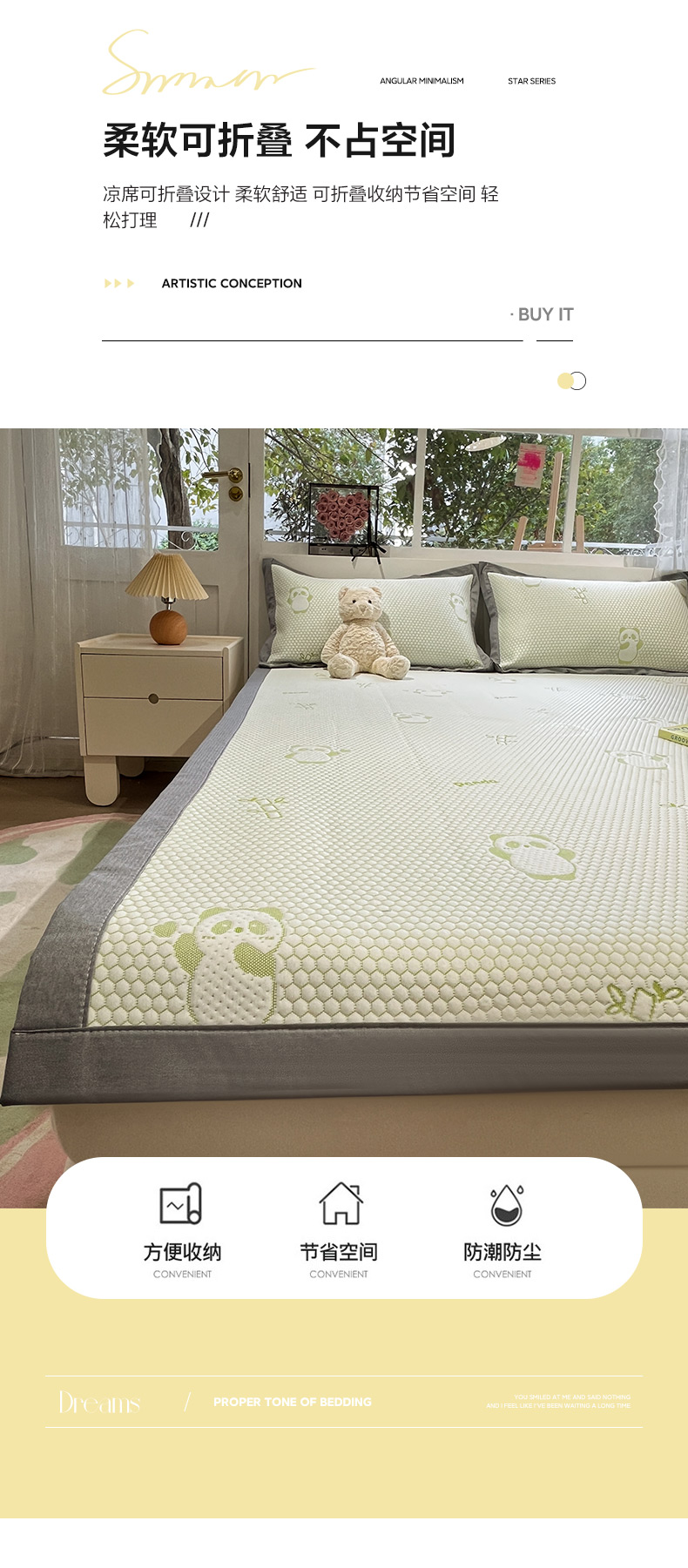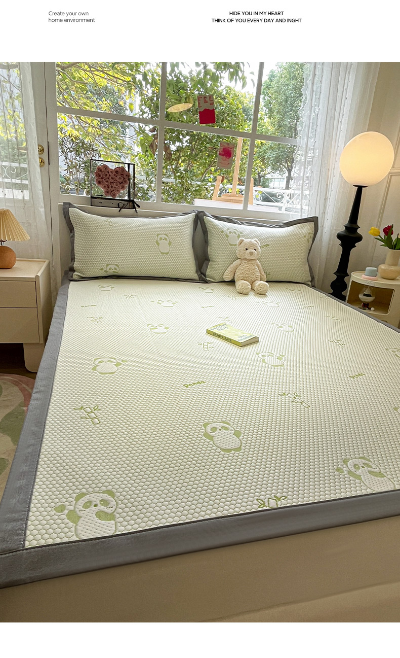 商品名称:雅居纺家纺 2026新款A类加厚三明治底提花小清新凉感席床单款凉席席子 熊猫竹子