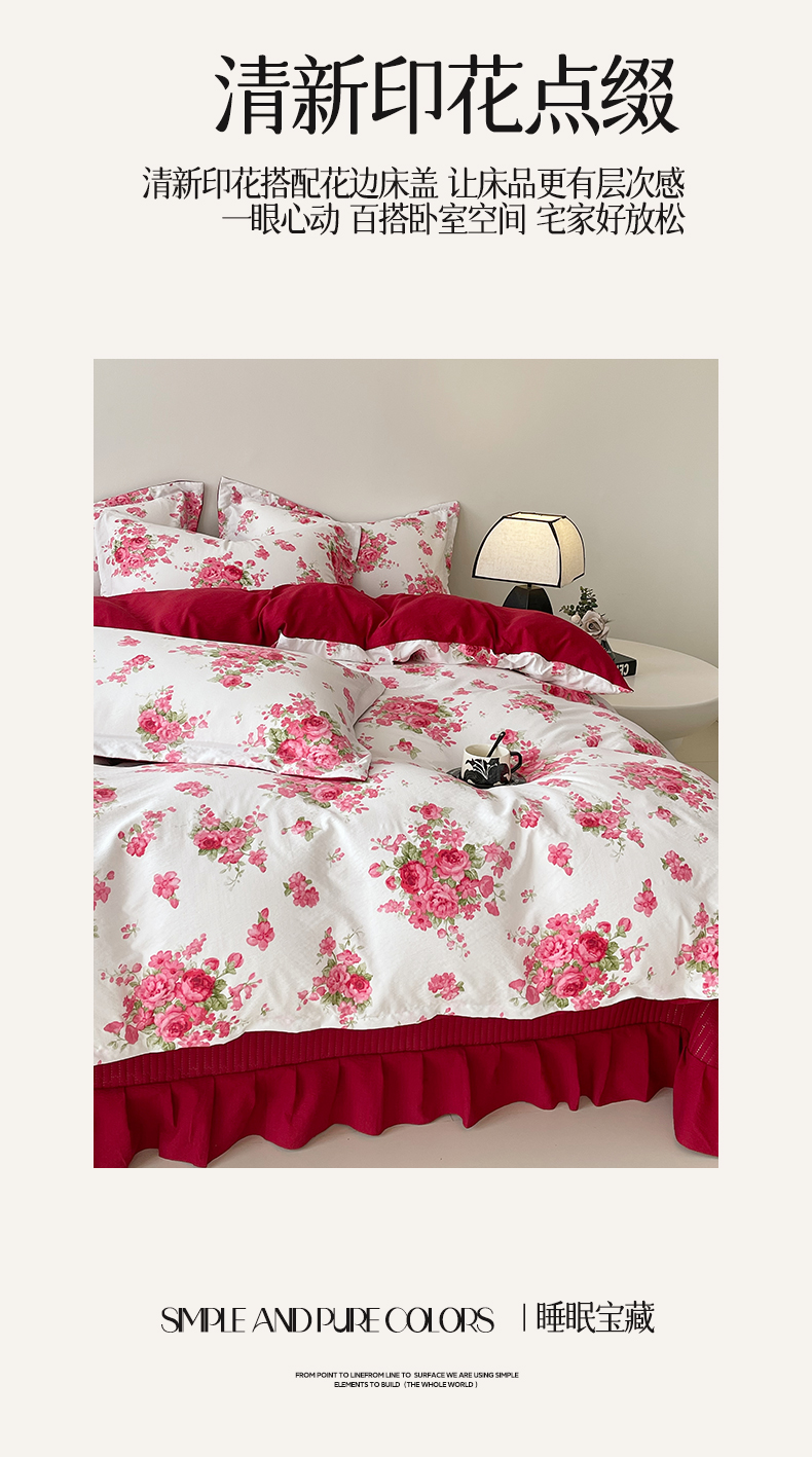 (总)锦彩家居 2026新款全棉数码印花小碎花花边款三件套四件套INS小红书博主风(提供买家秀),春缇玫瑰,烟雨丁香,微风浅夏,栀子花信,墨染山樱