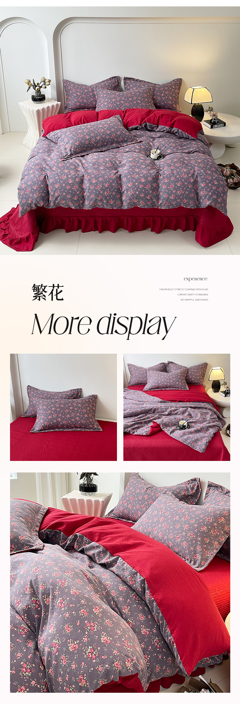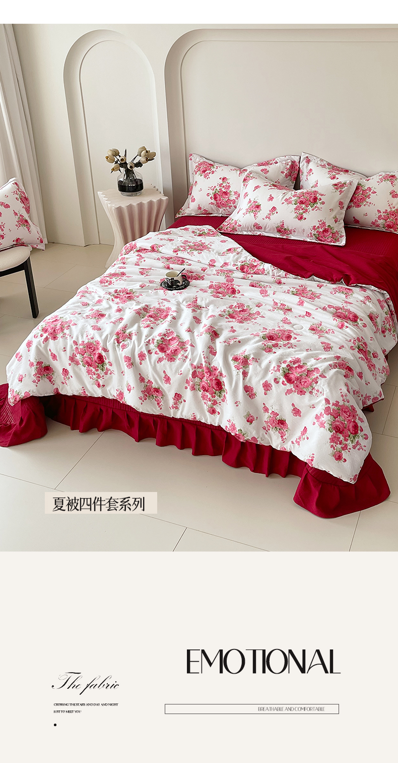 (总)锦彩家居 2026新款皱皱水洗棉夏被床盖四件套,安妮,繁花,海德花园,卡地亚-红,玫瑰园,樱桃蜜语