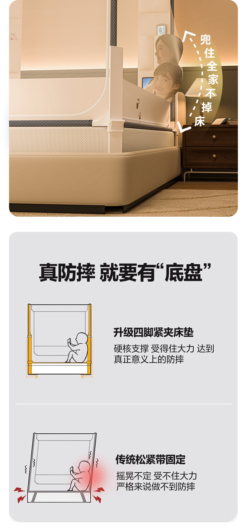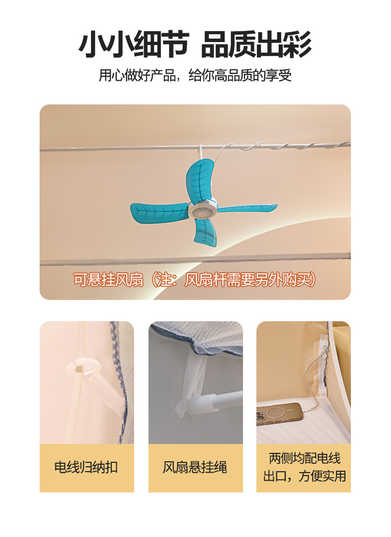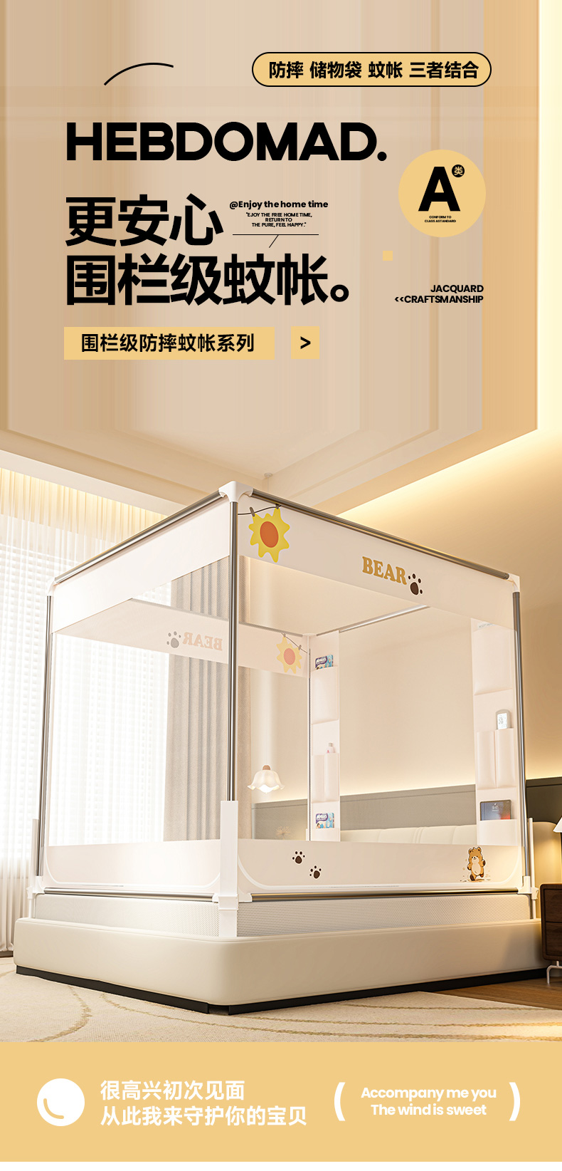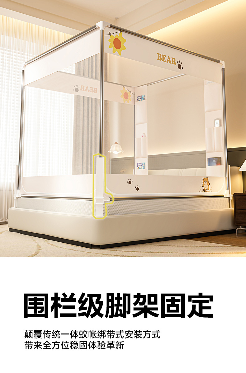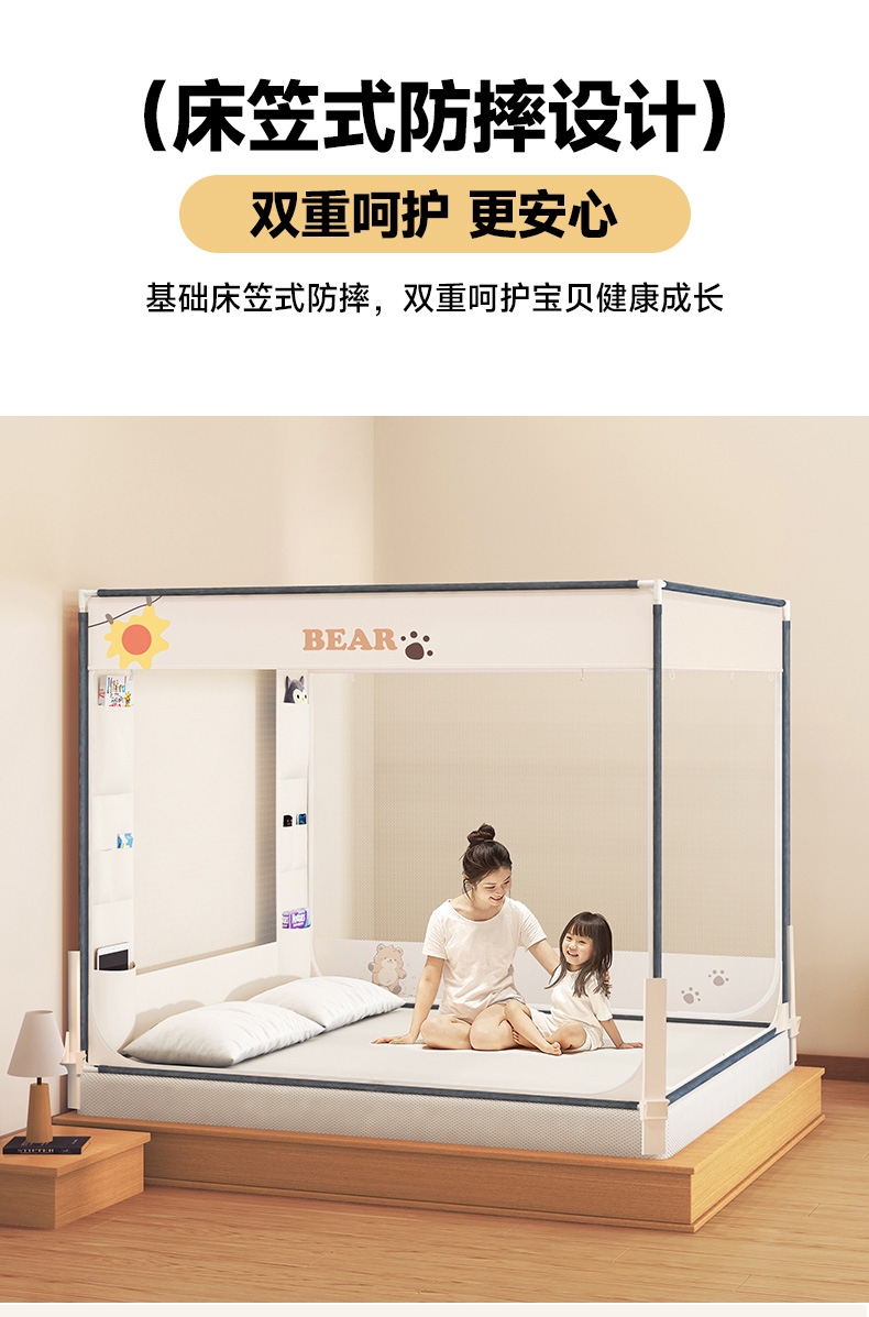 商品名称:(总)青竹苑 2026新款围栏托底口袋款坐床防摔蚊帐