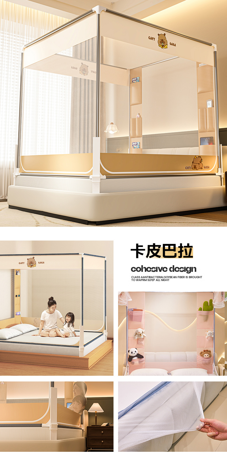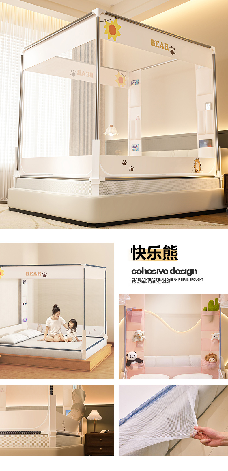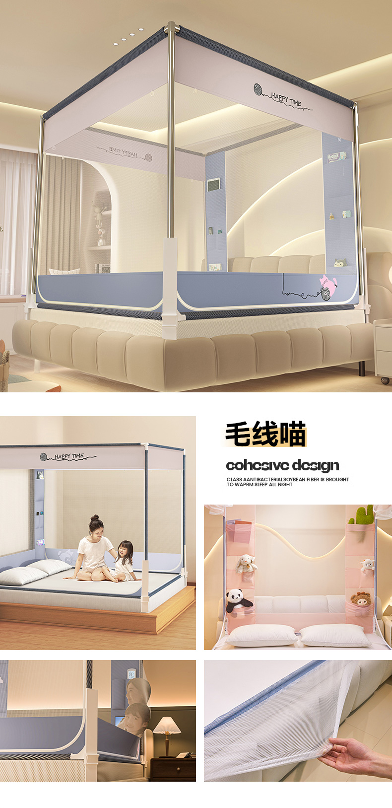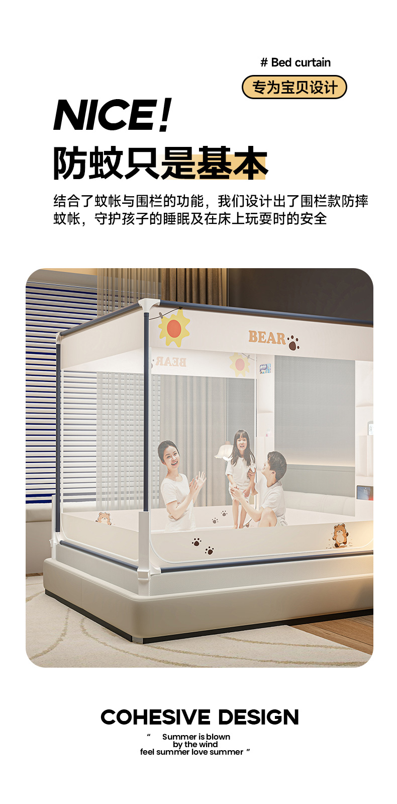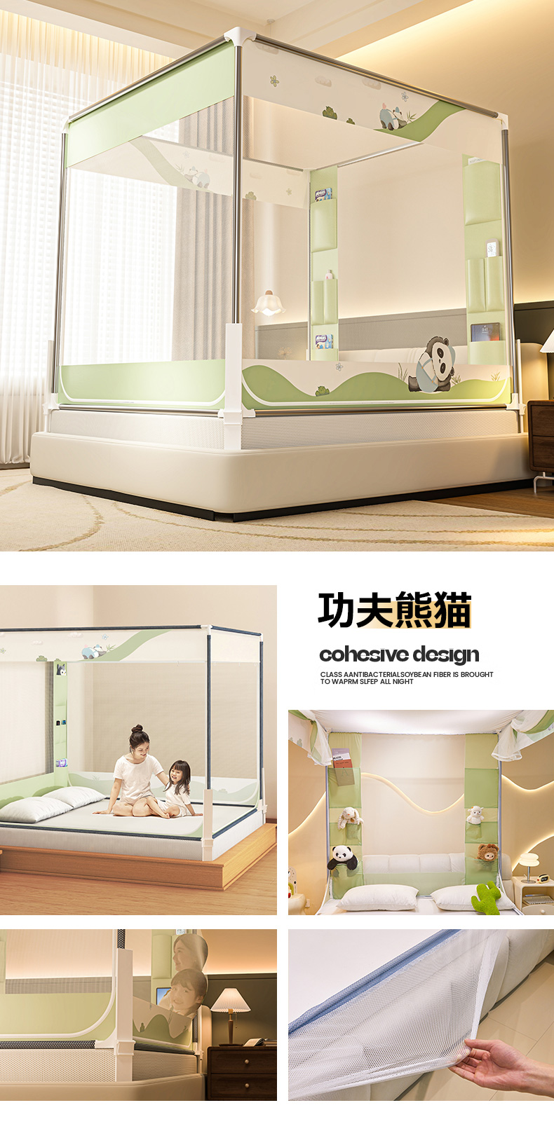 商品名称:(总)青竹苑 2026新款围栏托底口袋款坐床防摔蚊帐