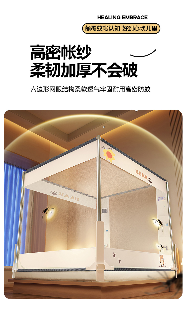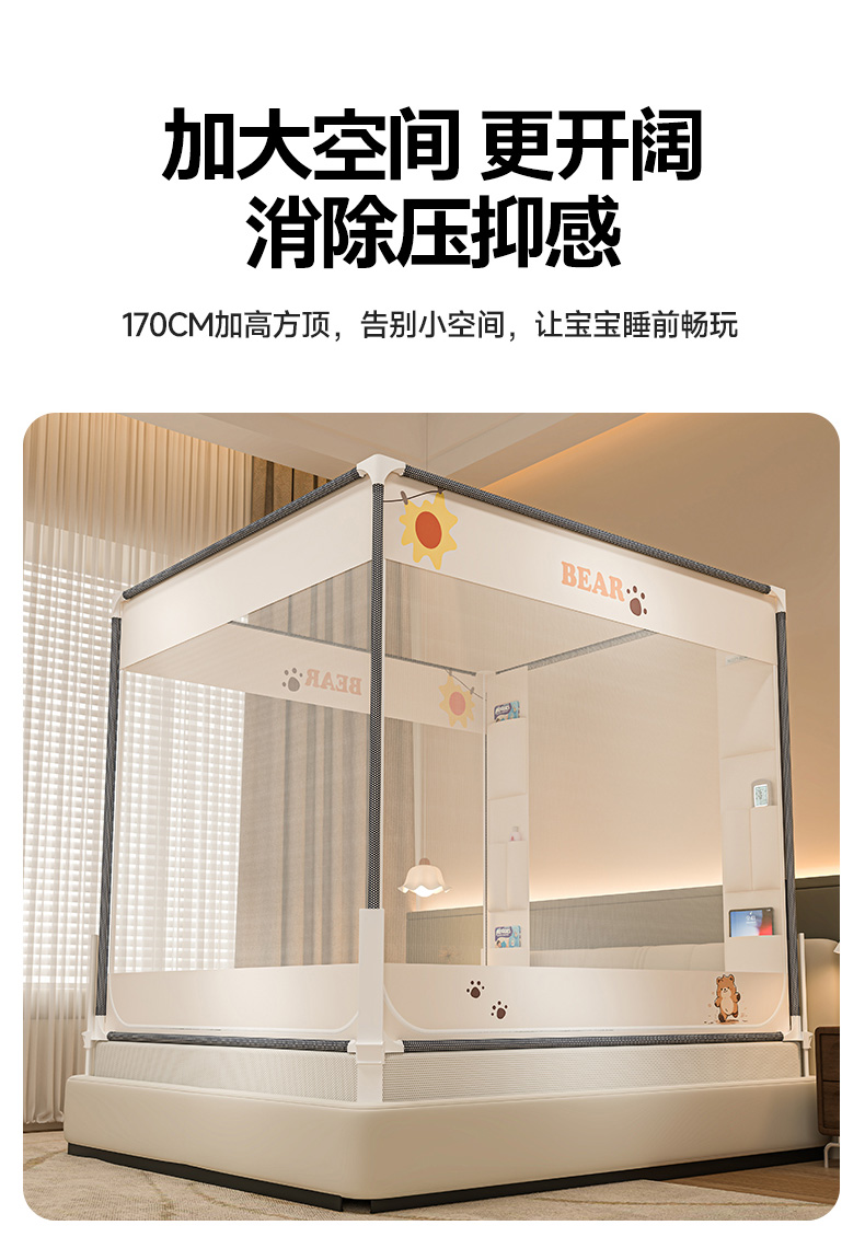 (总)青竹苑 2026新款围栏托底口袋款坐床防摔蚊帐