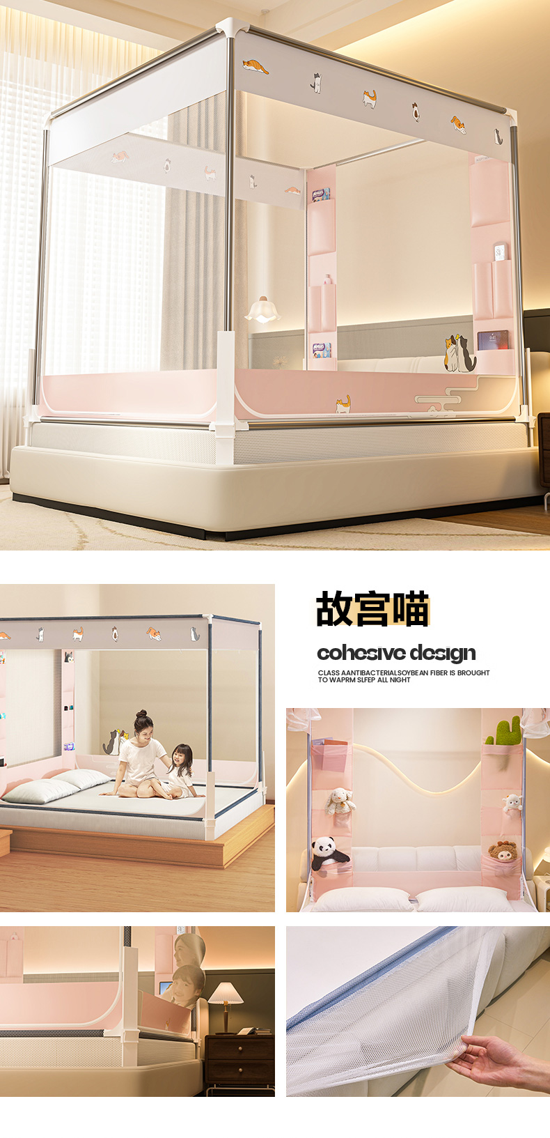 (总)青竹苑 2026新款圆弧款坐床防摔蚊帐,狗狗,好伙伴,兔兔,兔兔和猫猫,小熊猫,熊熊,蓝灰,米杏,浅粉,浅紫