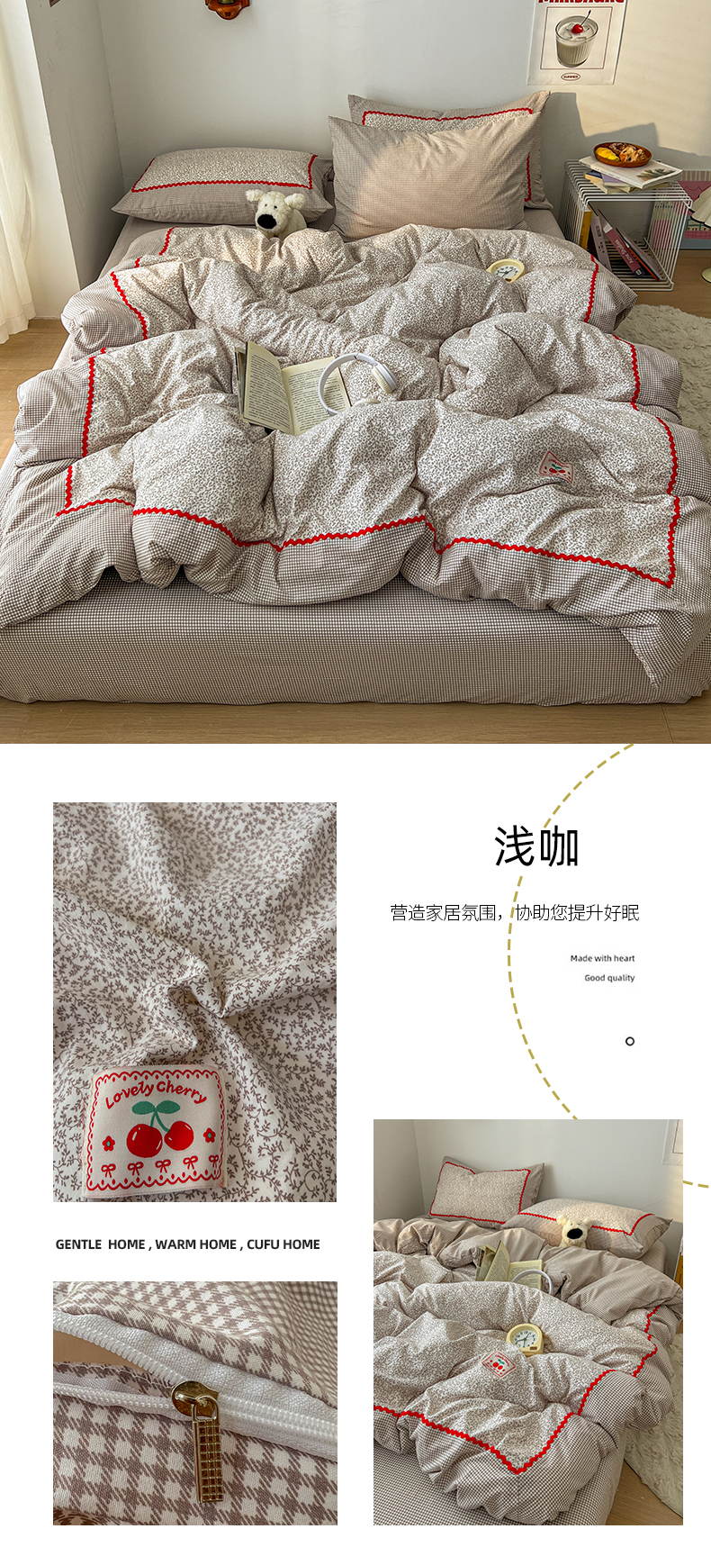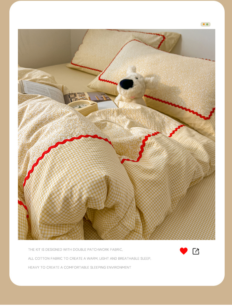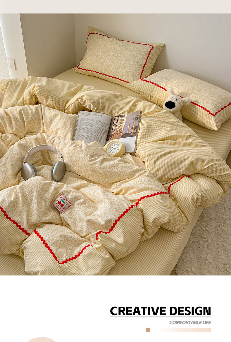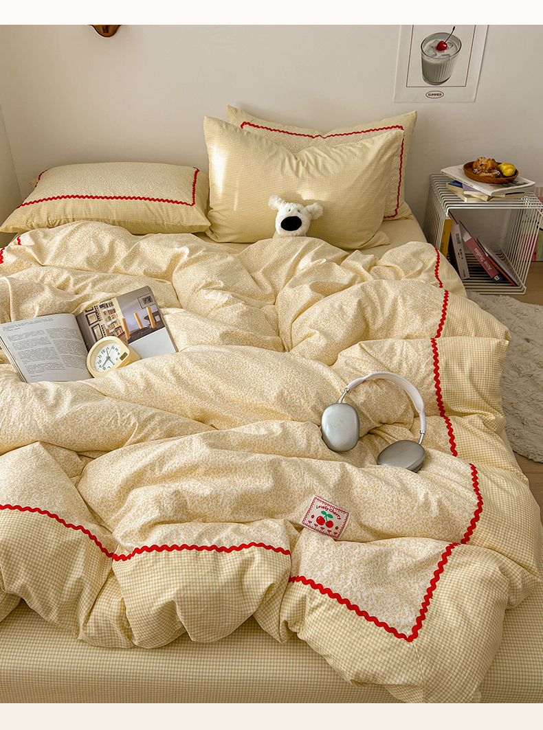 (总)睡美美家纺 2026新款古法水洗贴布格纹碎花云朵棉四件套-格纹小碎花