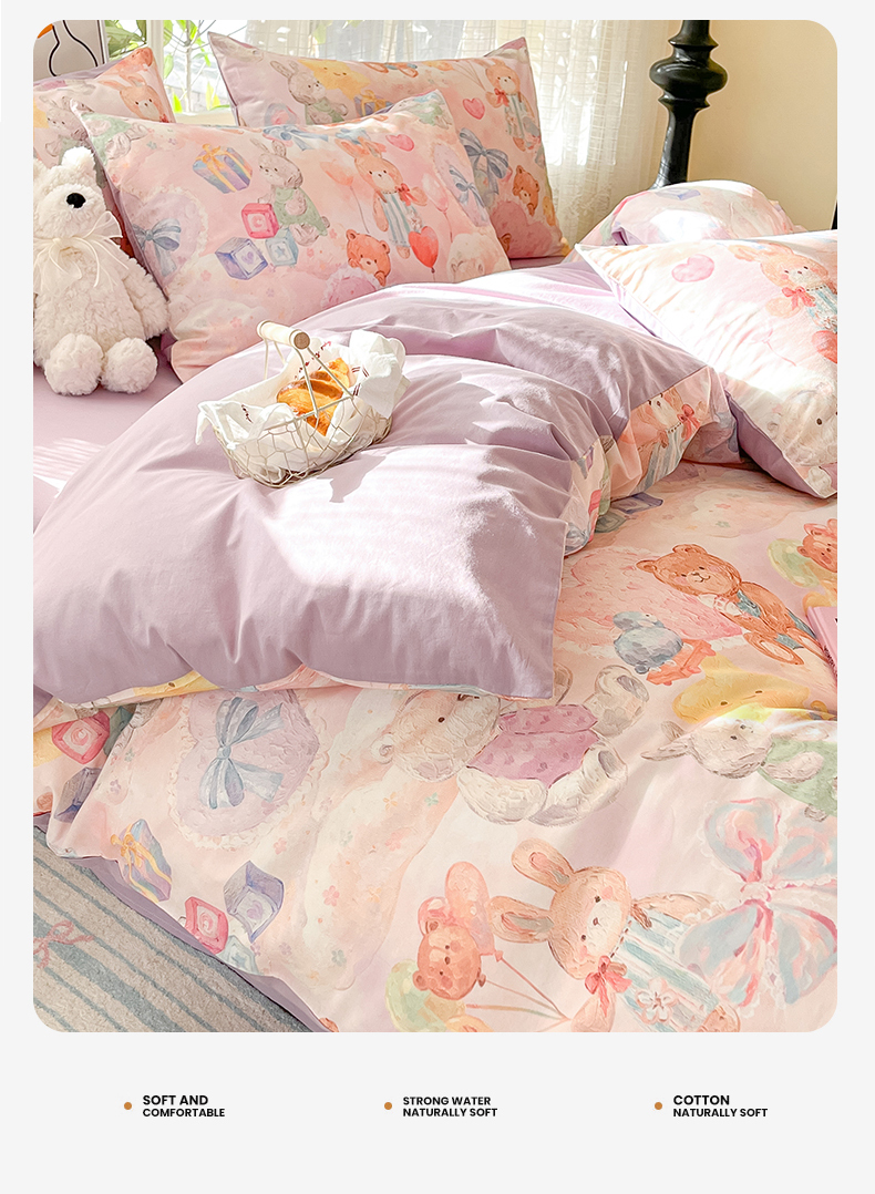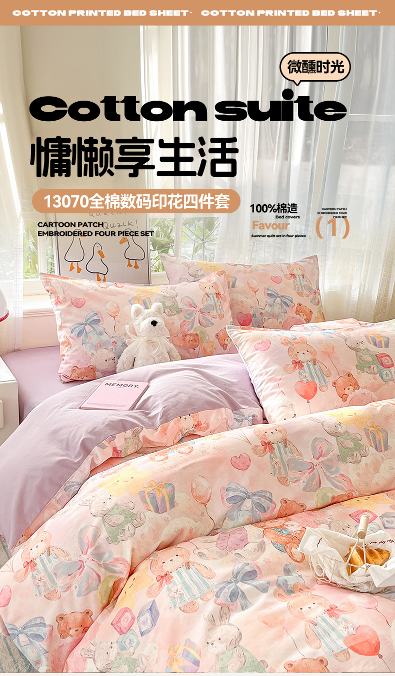(总)睡美美家纺 2026新款13070数码印花全棉纯棉动物卡通三件套四件套,动物派对,萌宠乐园,梦幻城堡-绿,梦幻城堡-粉,花车小熊-蓝,洛克庄园,节日狂欢,花车小熊-紫,木马小象,人鱼公主,熊仔的玫瑰园,悠悠花园