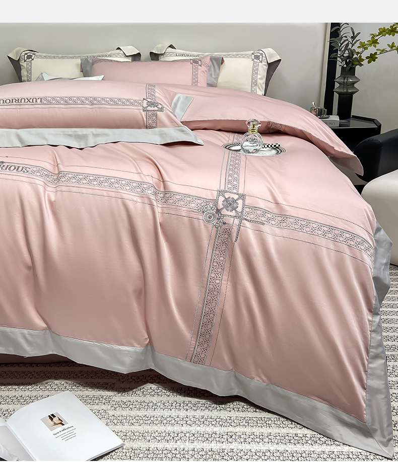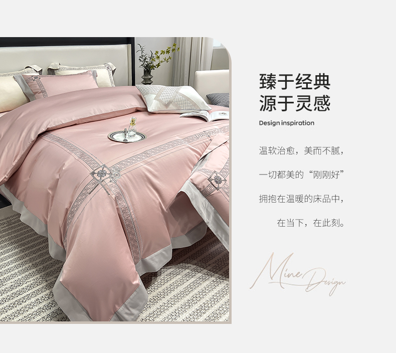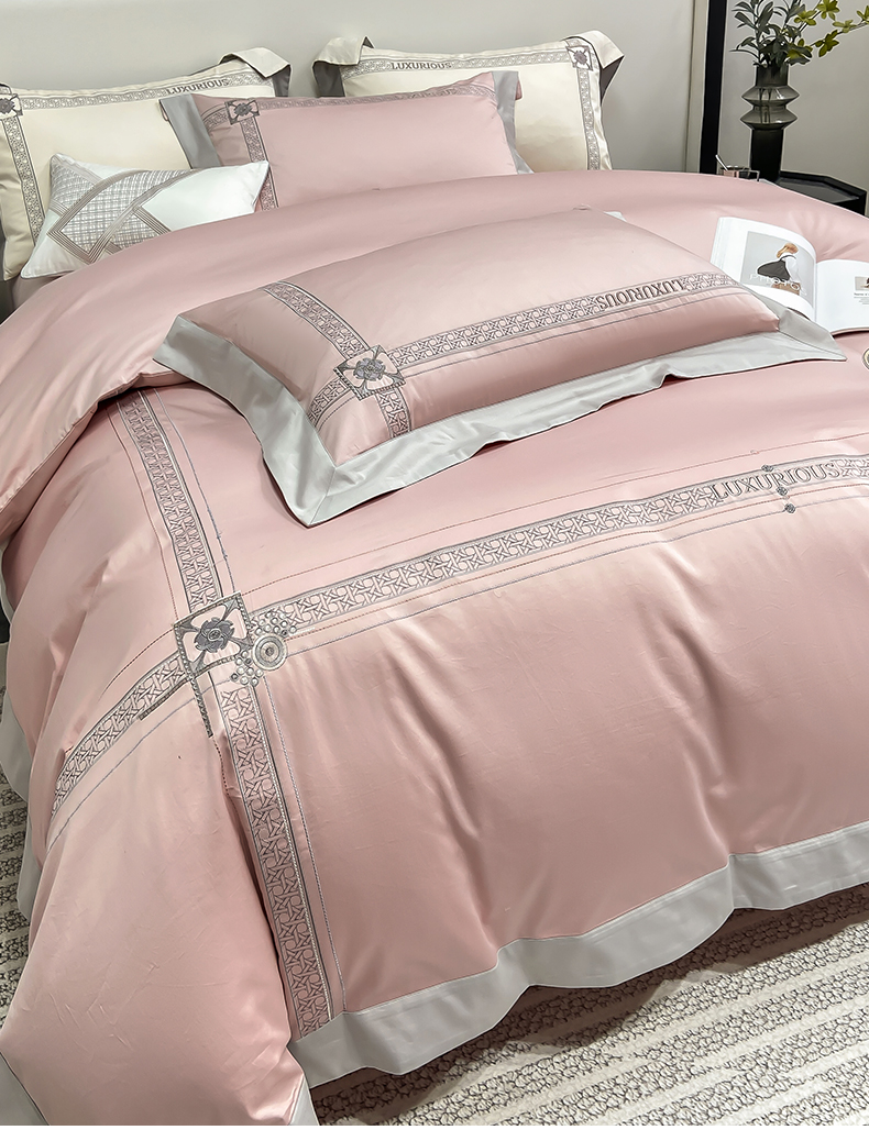 当前位置: 91家纺网 > 商品网购 > 床品套件 > 四件套 > 长绒棉四件套 > 家居1号家纺 2026新款50双股轻奢长绒棉刺绣四件套-图兰 图兰-粉豆沙