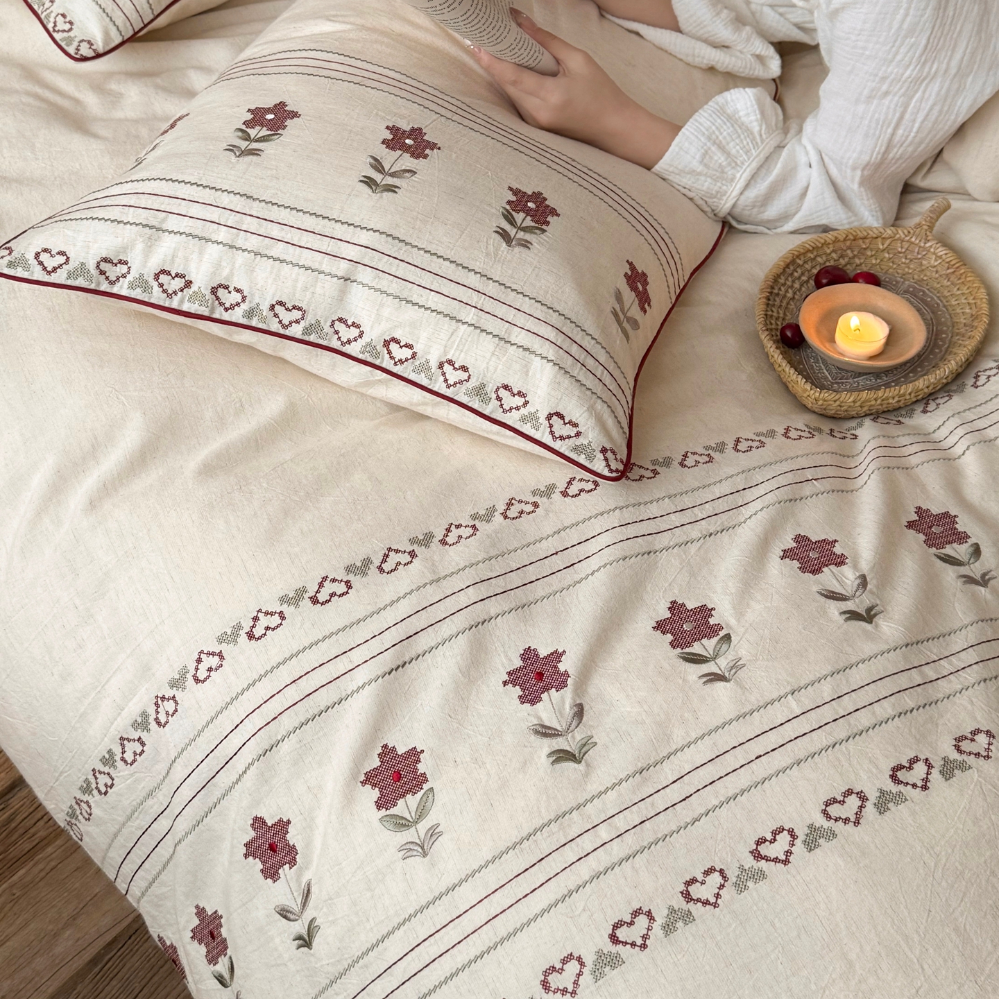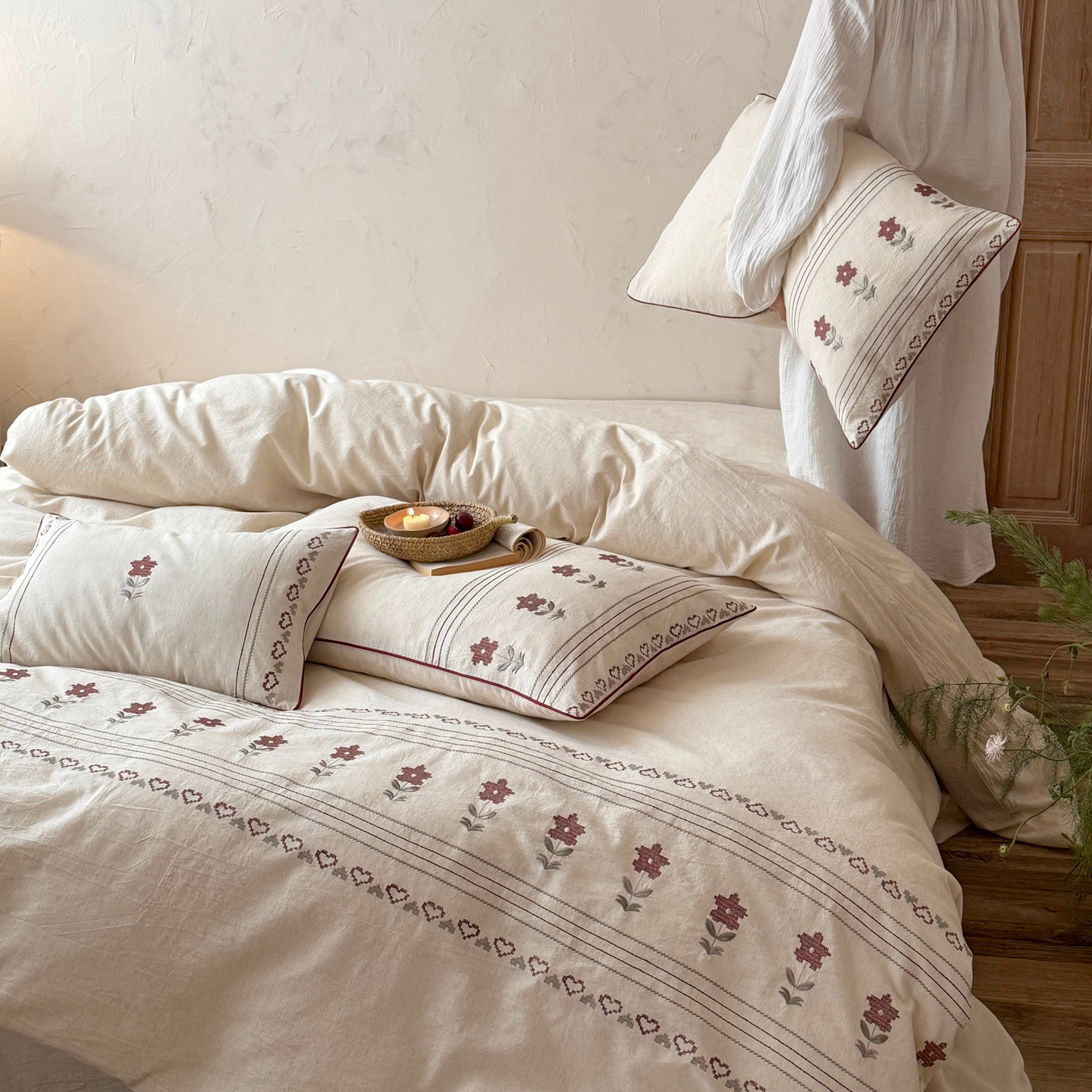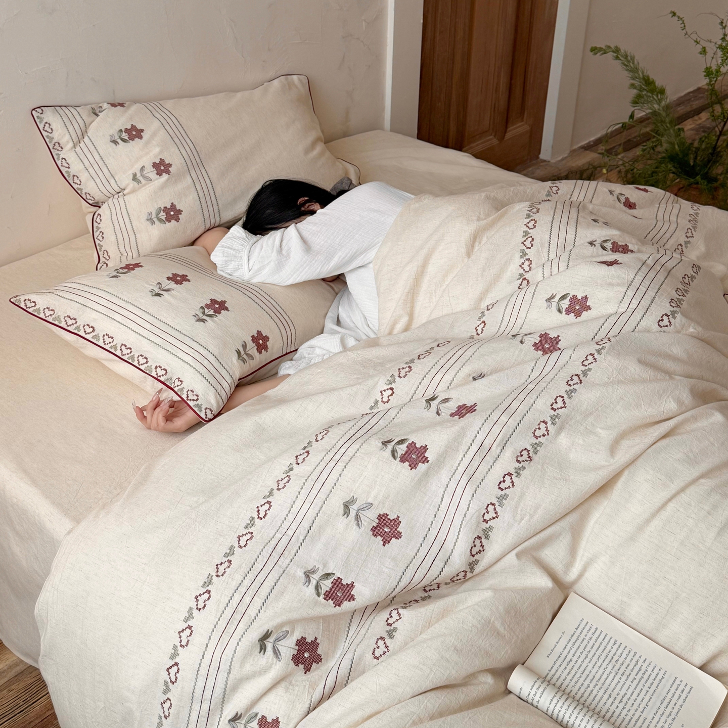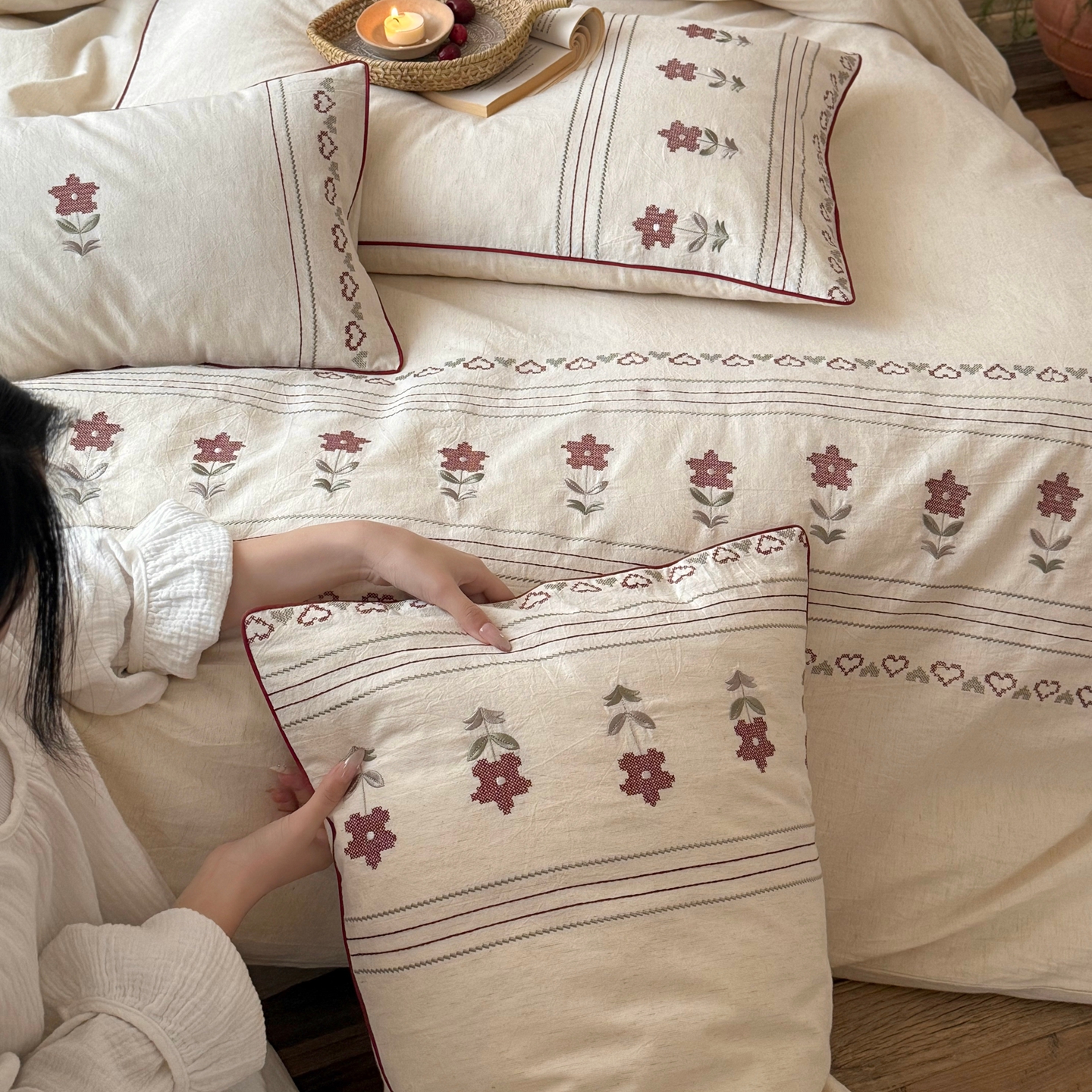当前位置: 91家纺网 > 商品网购 > 床品套件 > 四件套 > 棉麻四件套 > (总)鹿班家居 2026春季新品色织棉麻精密刺绣四件套-花询见山(标准会员-20元)