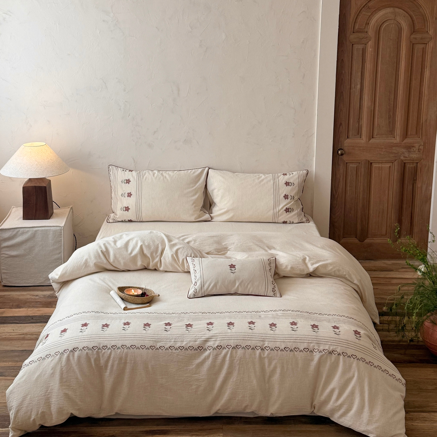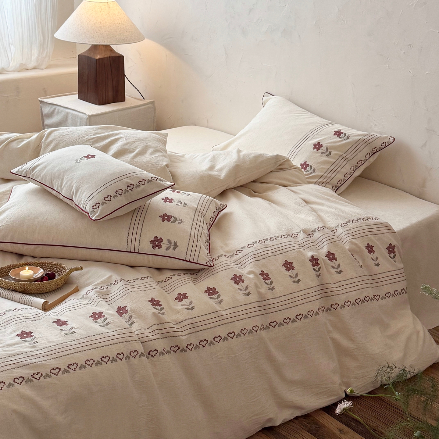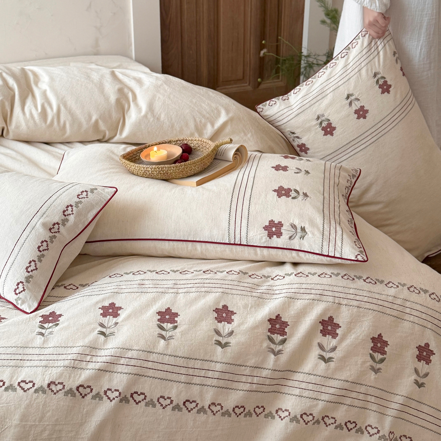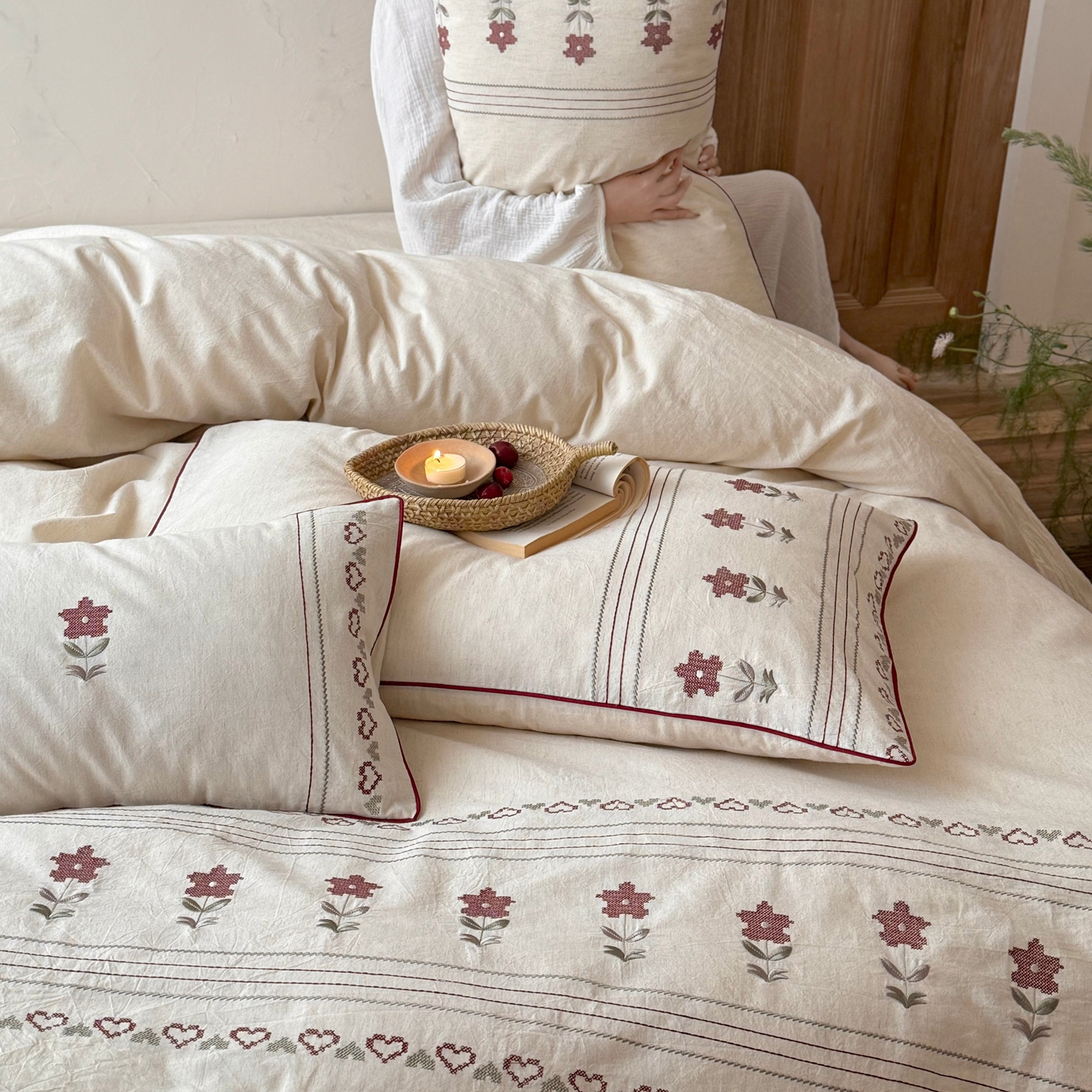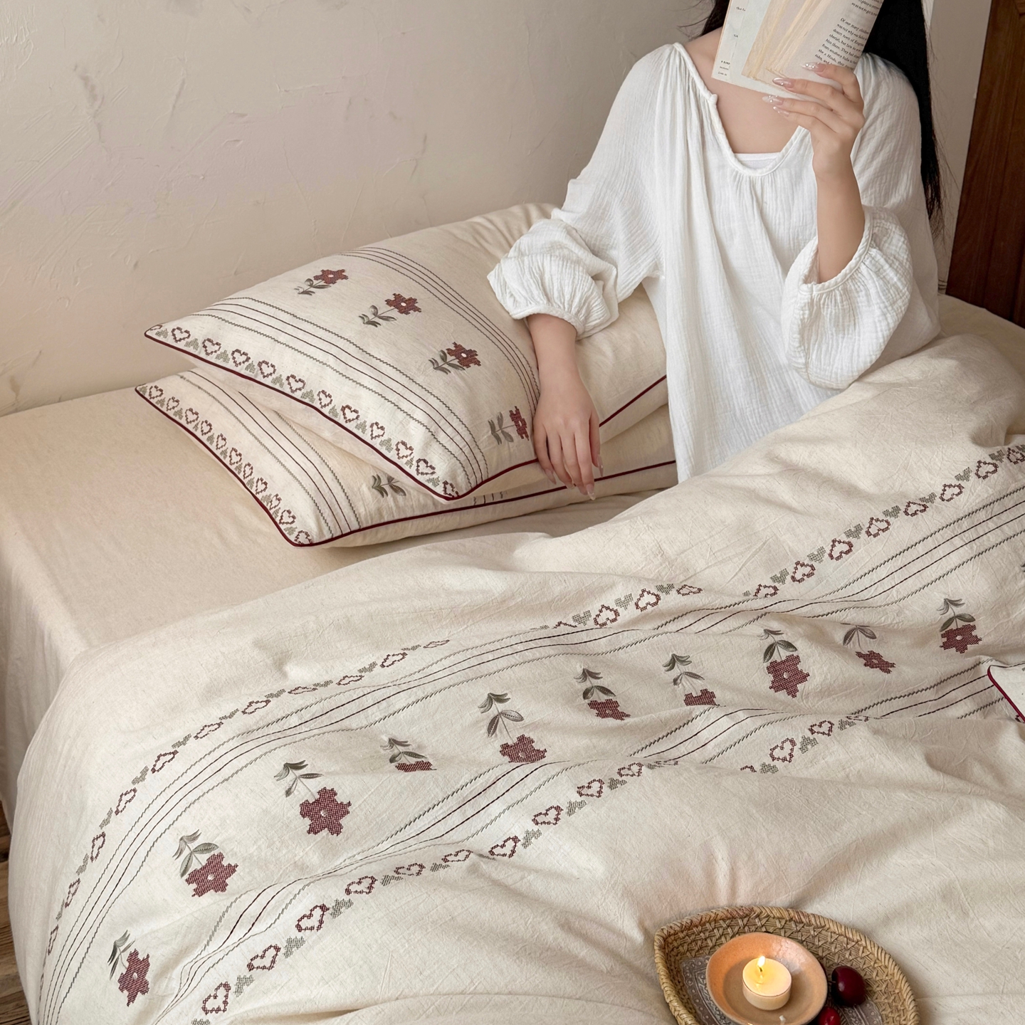 当前位置: 91家纺网 > 商品网购 > 床品套件 > 四件套 > 棉麻四件套 > (总)鹿班家居 2026春季新品色织棉麻精密刺绣四件套-花询见山(标准会员-20元)