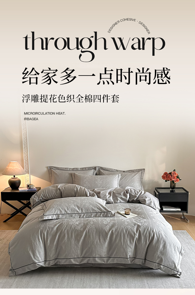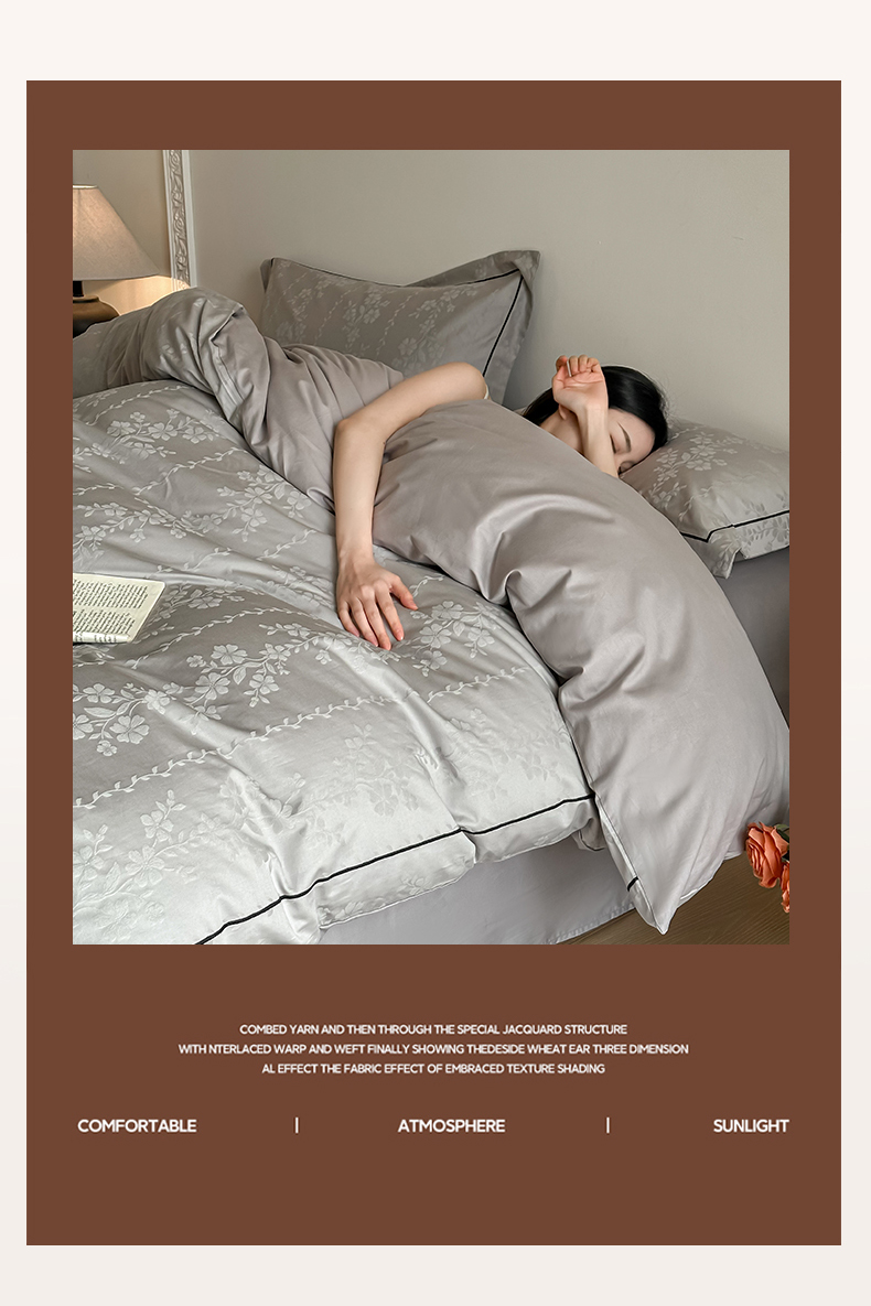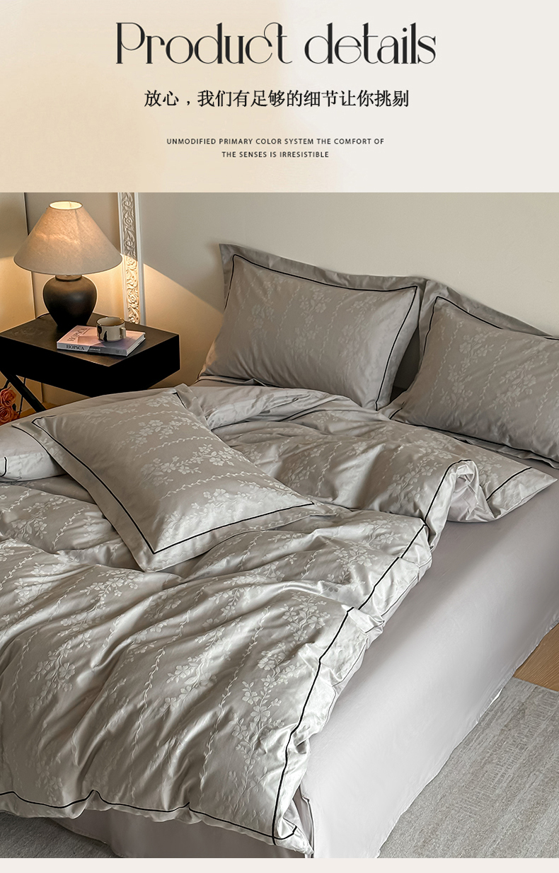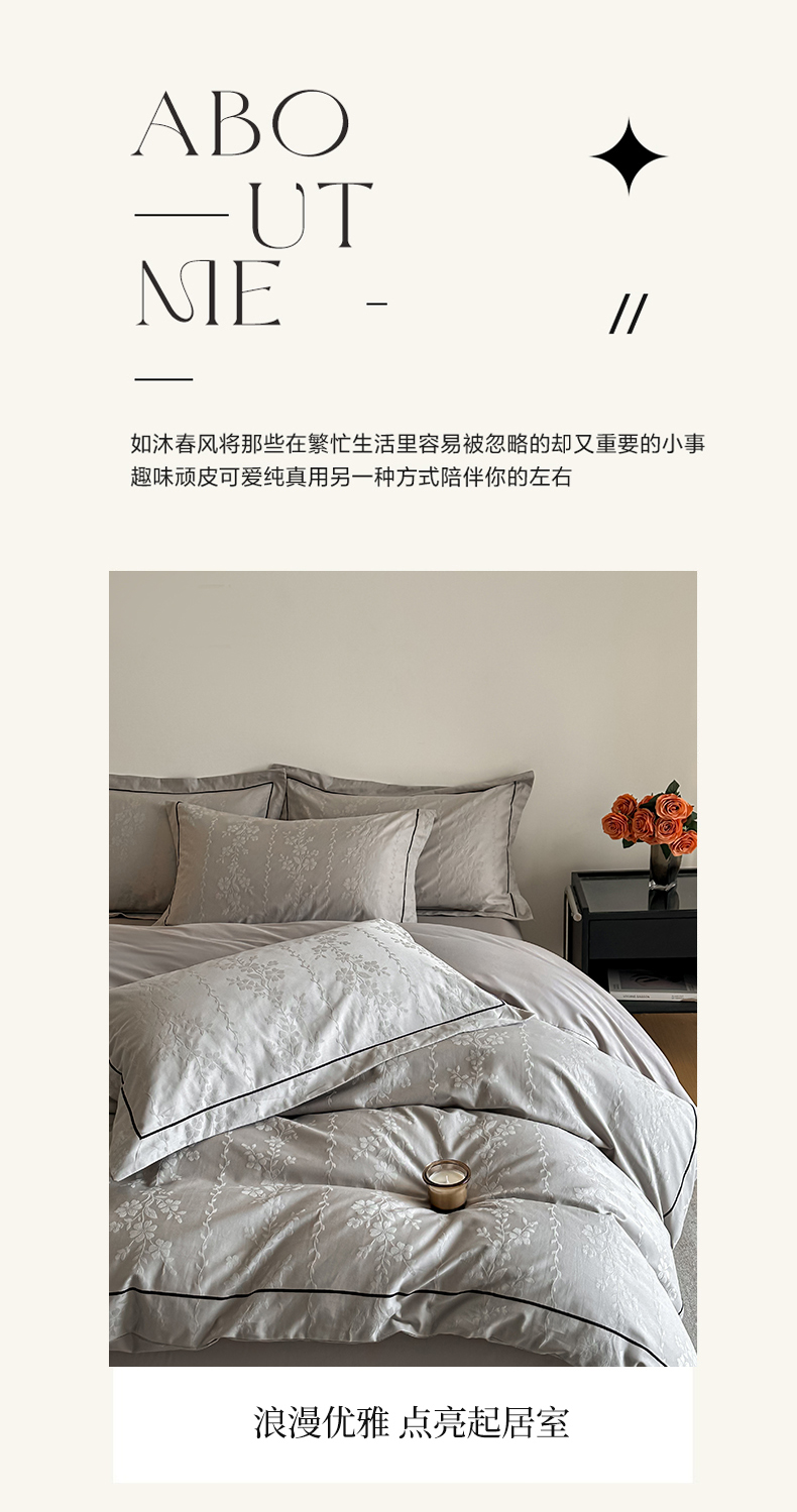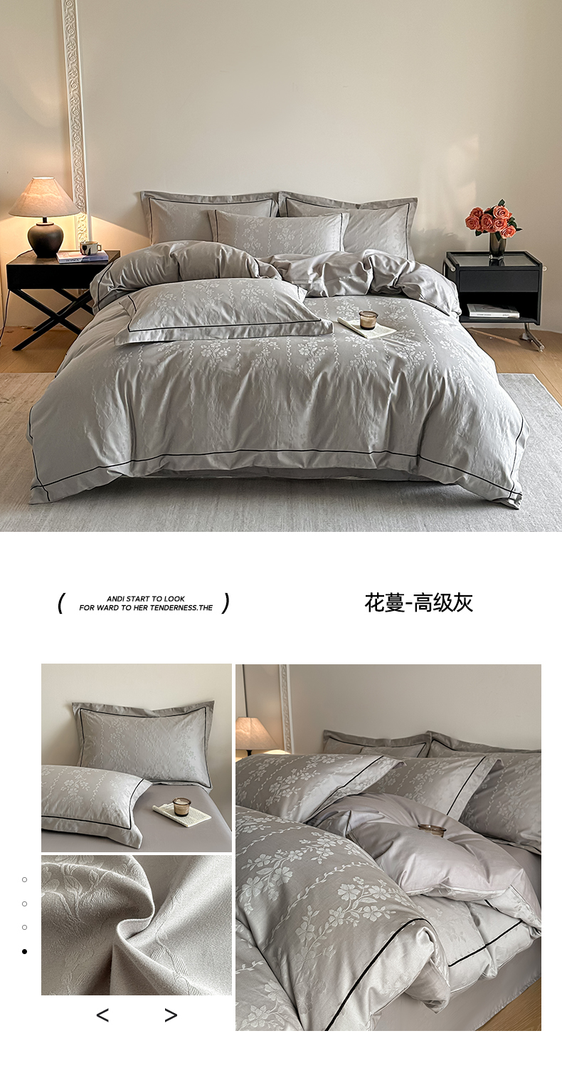 商品名称:首尔家纺 2026新款浮雕提花色织全棉四件套 花蔓-高级灰