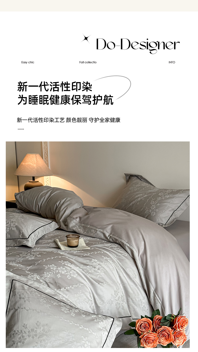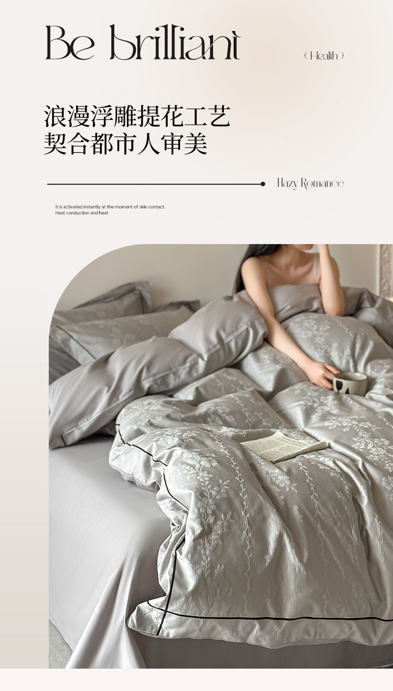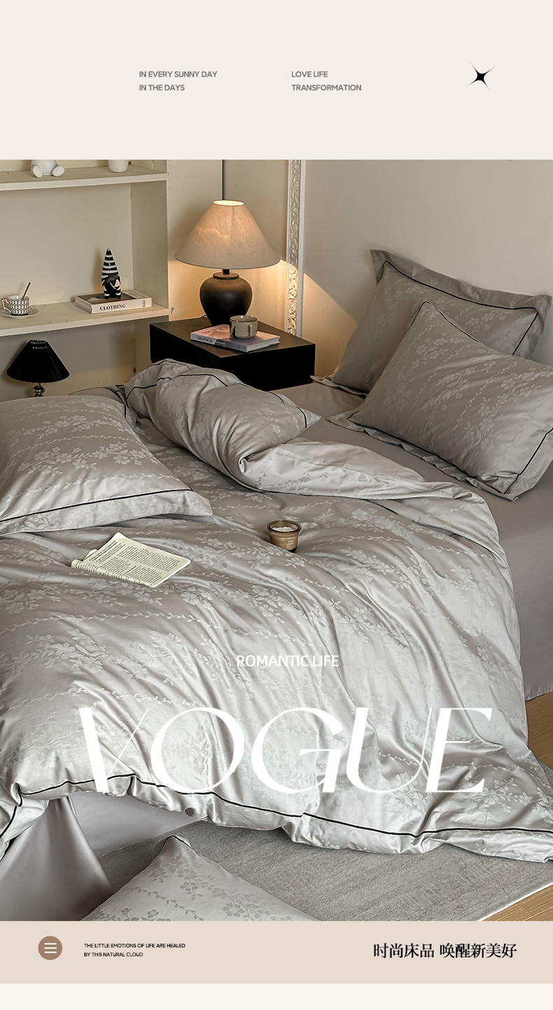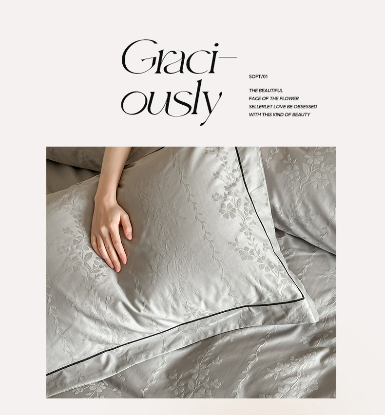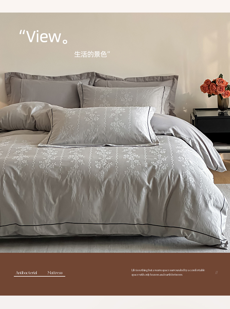 商品名称:首尔家纺 2026新款浮雕提花色织全棉四件套 花蔓-高级灰