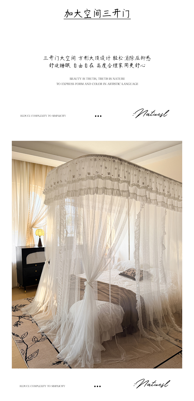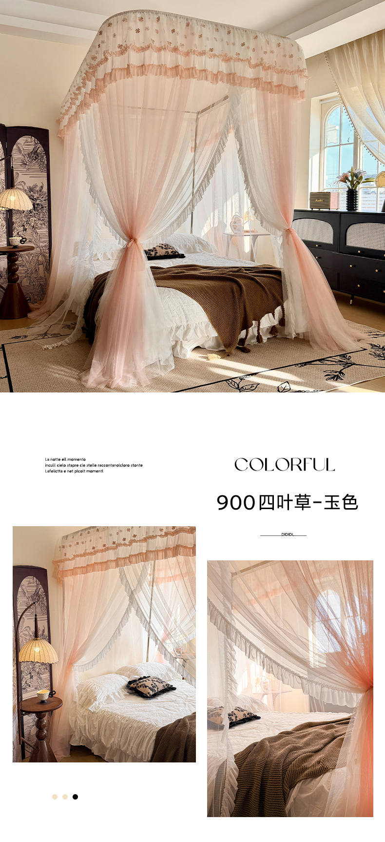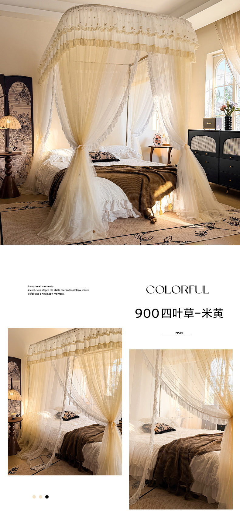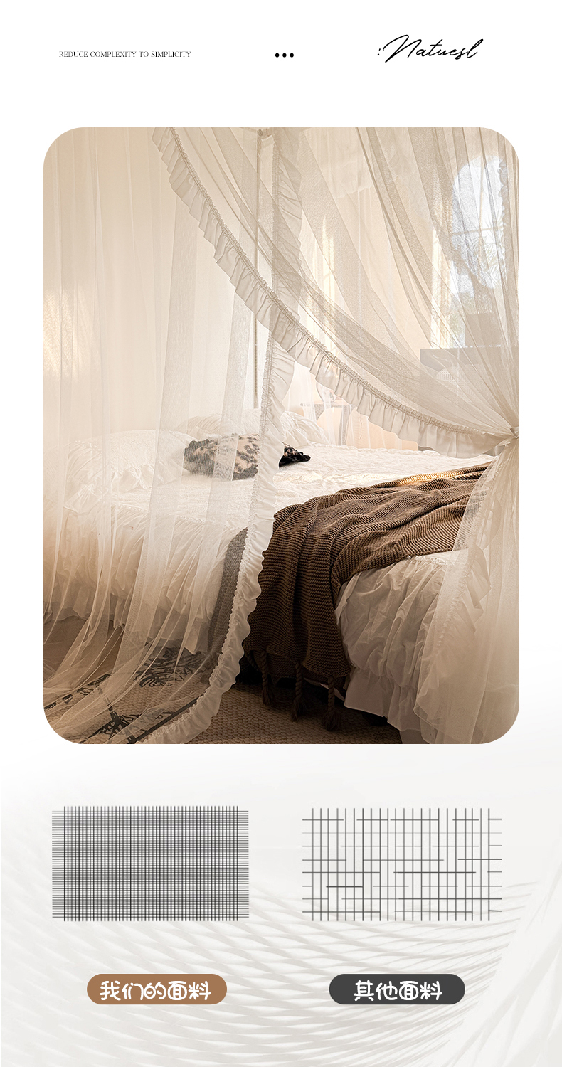 (总)都市缘蚊帐 2026新款浪漫905多丽棉纱落地宫廷蚊帐,麦芽杏-场景1,麦芽杏-场景2,粉扑色,摩卡,云雾白