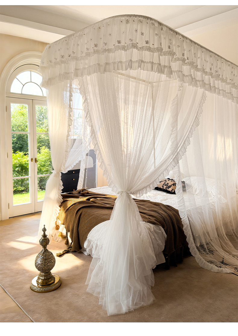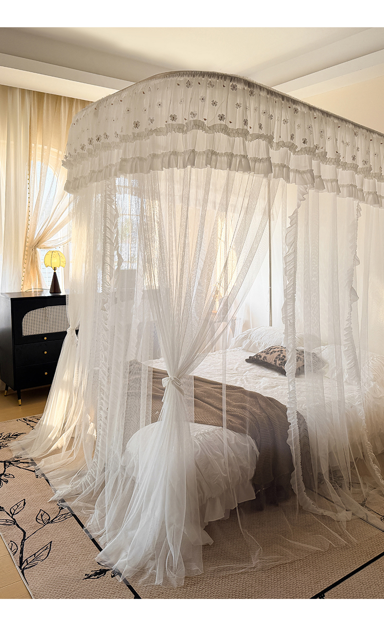 商品名称:都市缘蚊帐 2026新款900绣花轨道支架宫廷蚊帐1.5m 1.8m 900四叶草-白色