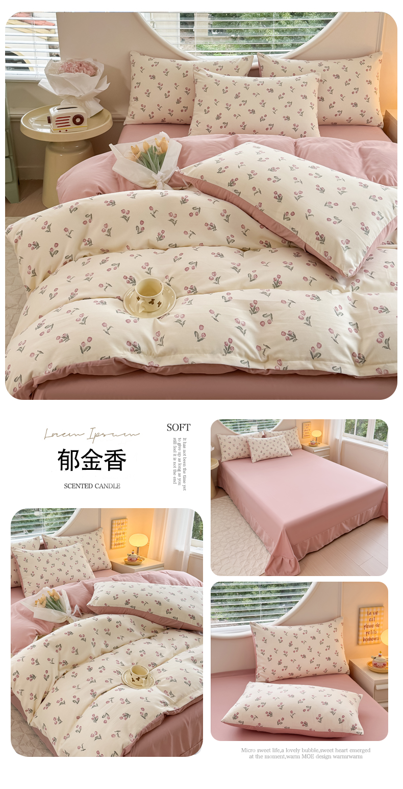 • 91家纺网 家纺一手货源 找家纺 (总)爱多多家居 2026新款双层纱针织棉印花四件套,格子熊,爱心灰,初夏,花丛灰,花丛咖,欢乐颂,玫瑰花园,南瓜派,小豹纹,熊猫绿,郁金香