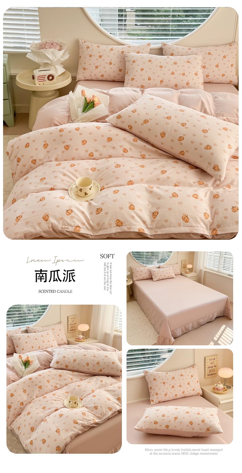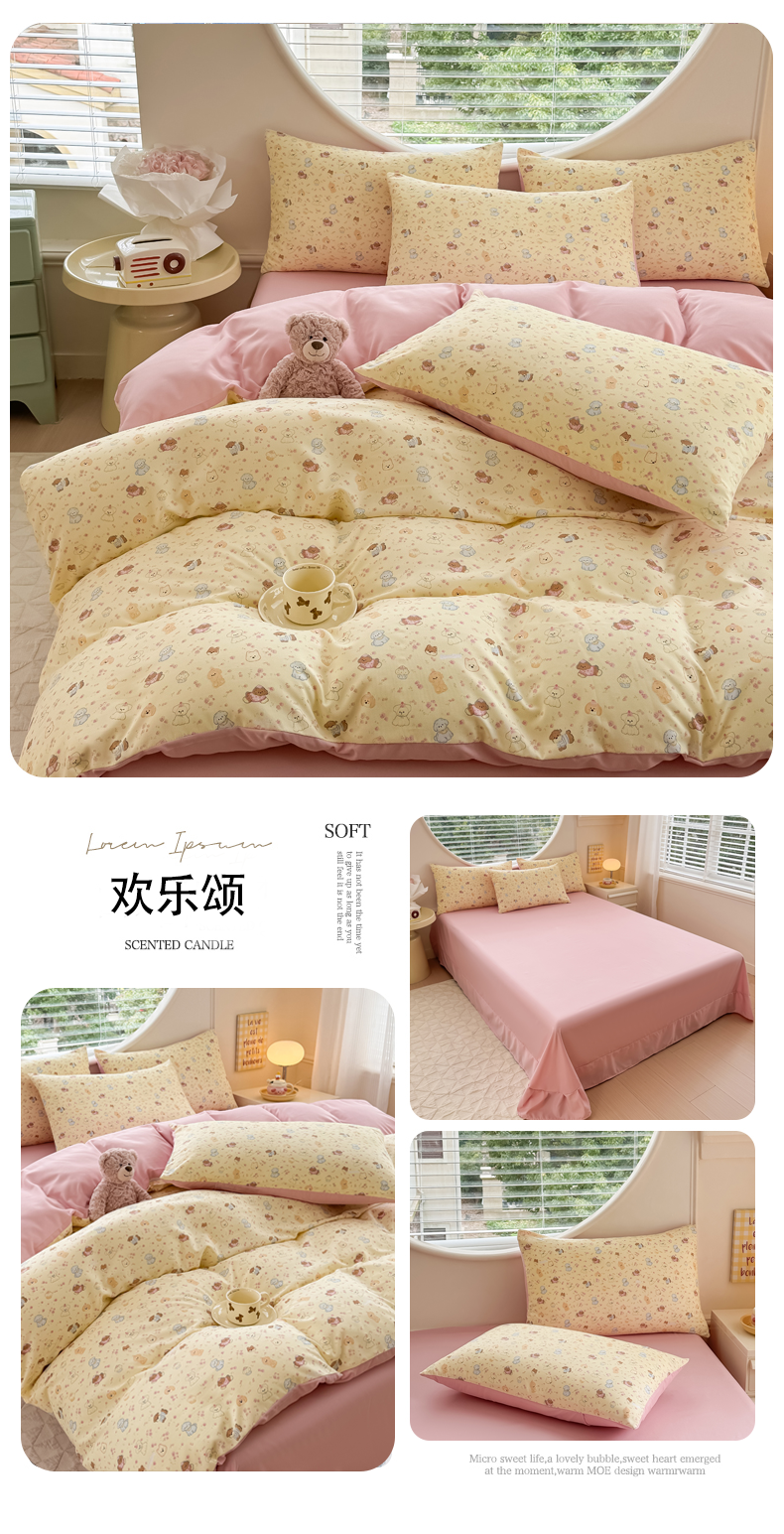 • 91家纺网 家纺一手货源 找家纺 (总)爱多多家居 2026新款双层纱针织棉印花四件套,格子熊,爱心灰,初夏,花丛灰,花丛咖,欢乐颂,玫瑰花园,南瓜派,小豹纹,熊猫绿,郁金香