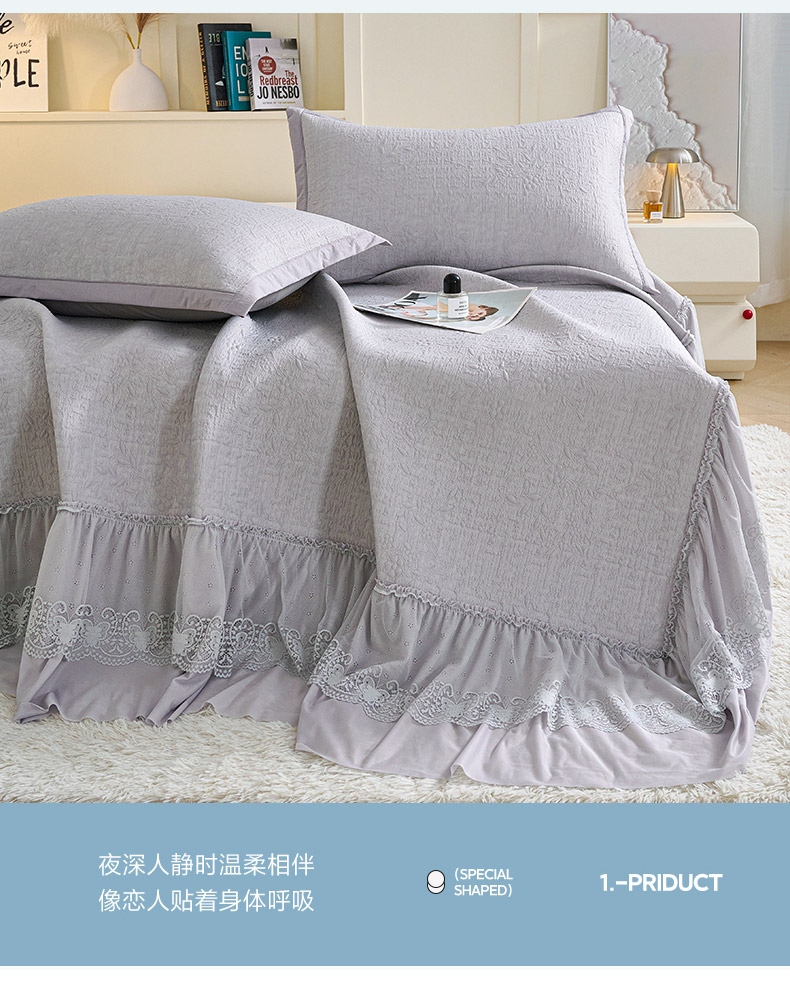 (总)梵克保罗 2026春夏新款雪纺床盖夏被四件套单夏被床盖三件套,奶茶色,嫩芽绿,浅米色,仙气紫,玉芙蓉