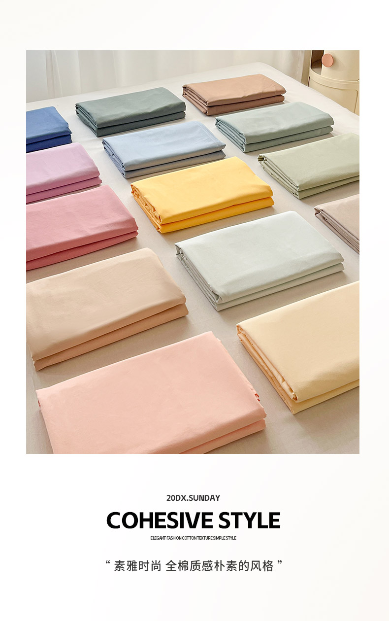 • 91家纺网 家纺一手货源 找家纺 (总)泽西家纺+V17798841158发大图 2026新款A类全棉纯棉13376单品床单床单单件,组合图仅做展示,豆绿,橄榄绿,焦糖,军绿,卡其,露白,米月粉,奶茶杏,奶油黄,柠檬黄,牛仔蓝,暖豆沙,浅米灰,晴空蓝,绅士灰,微微紫,雾蓝,芋泥紫,云水绿