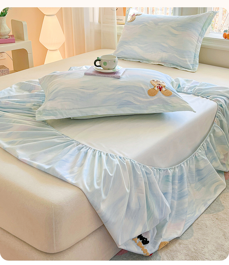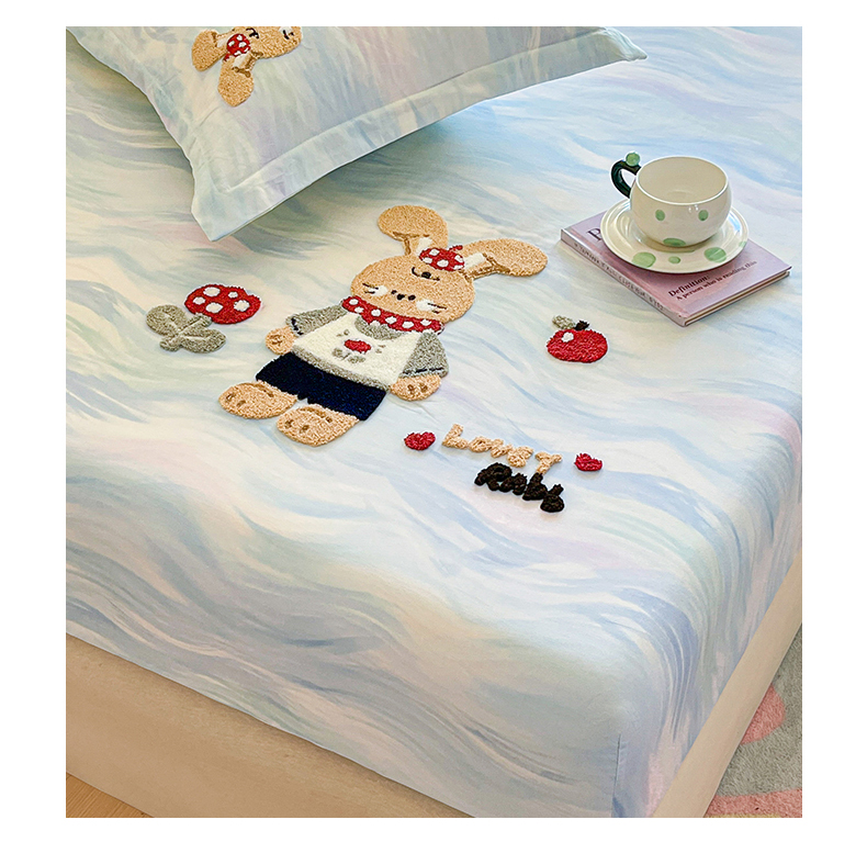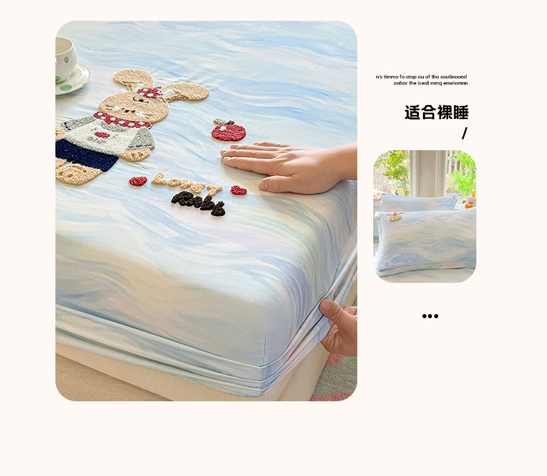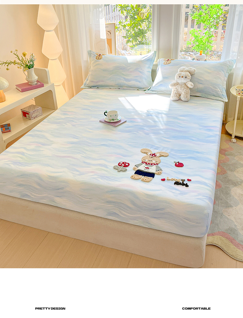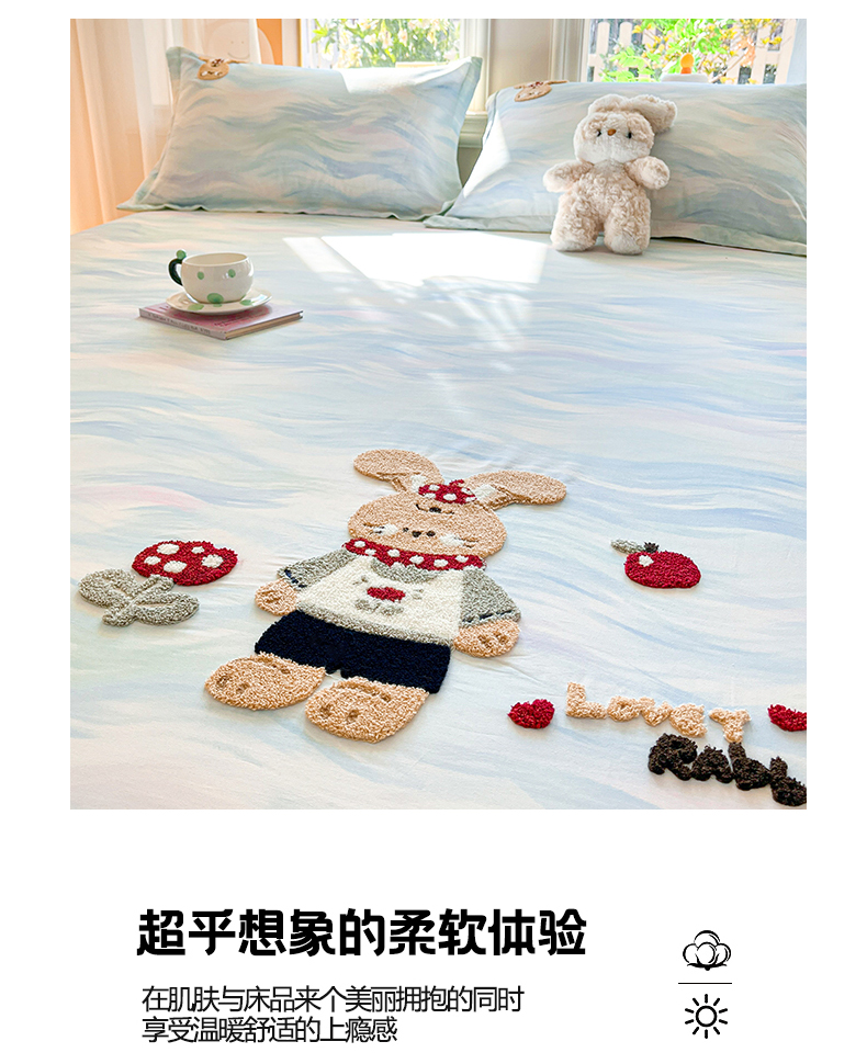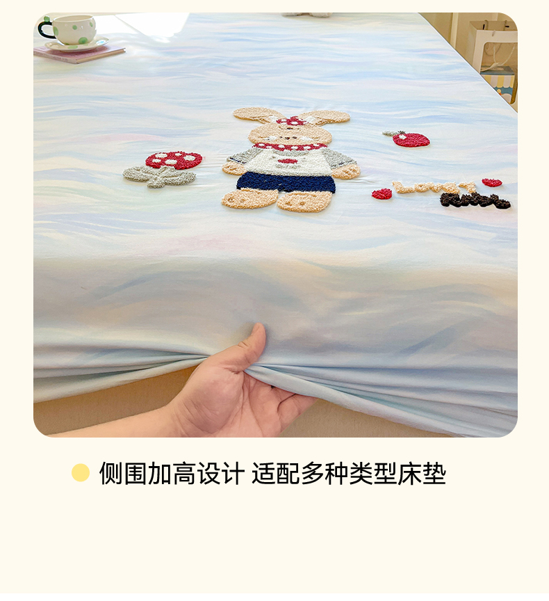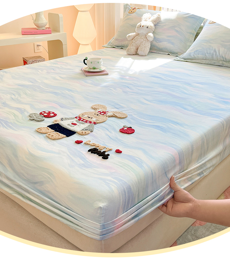 (总)笙意家纺 2026新款50S全棉纯棉毛巾绣单品床笠床笠单件,雾蓝小兔,粉豹纹喵,复古格犬,海盐萌宠,派对小熊,甜心kt,星甜狐兔,星野雪人,星云萌犬