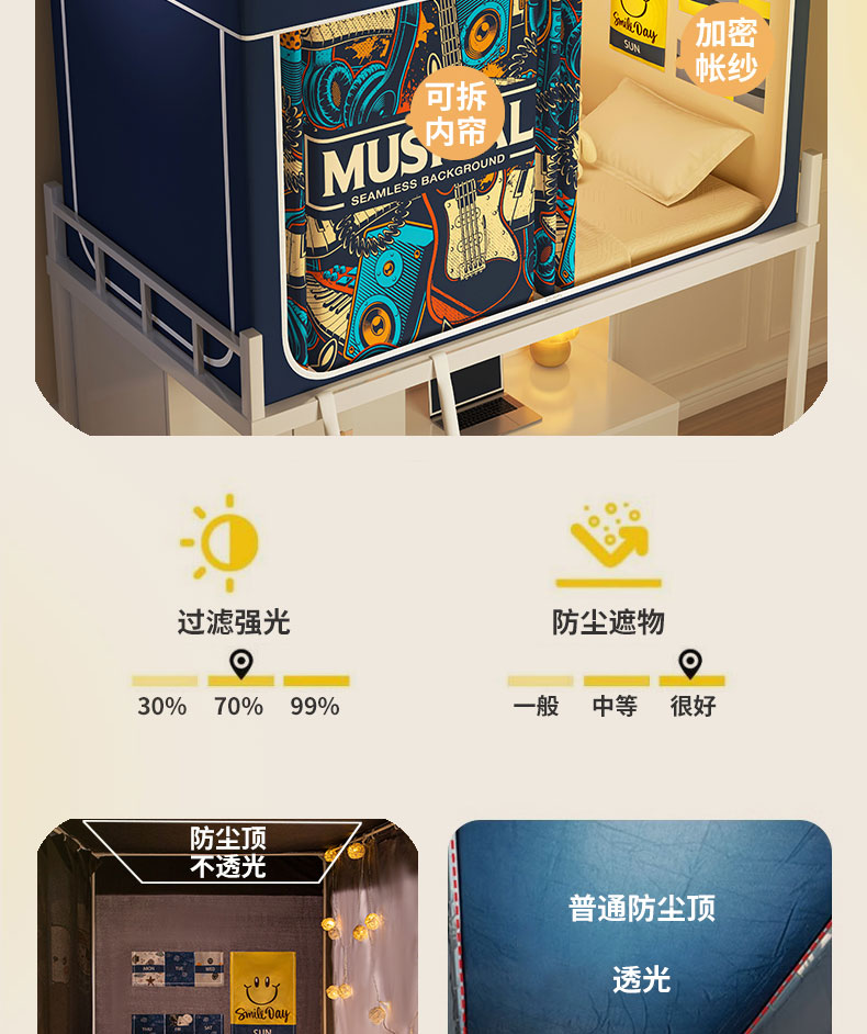 当前位置: 91家纺网 > 商品网购 > 床上用品 > 蚊帐 > 学生蚊帐 > 宅部落 2026新款宅部落学生床帘宿舍上下铺印花无涂层强遮光学生蚊帐 潮派