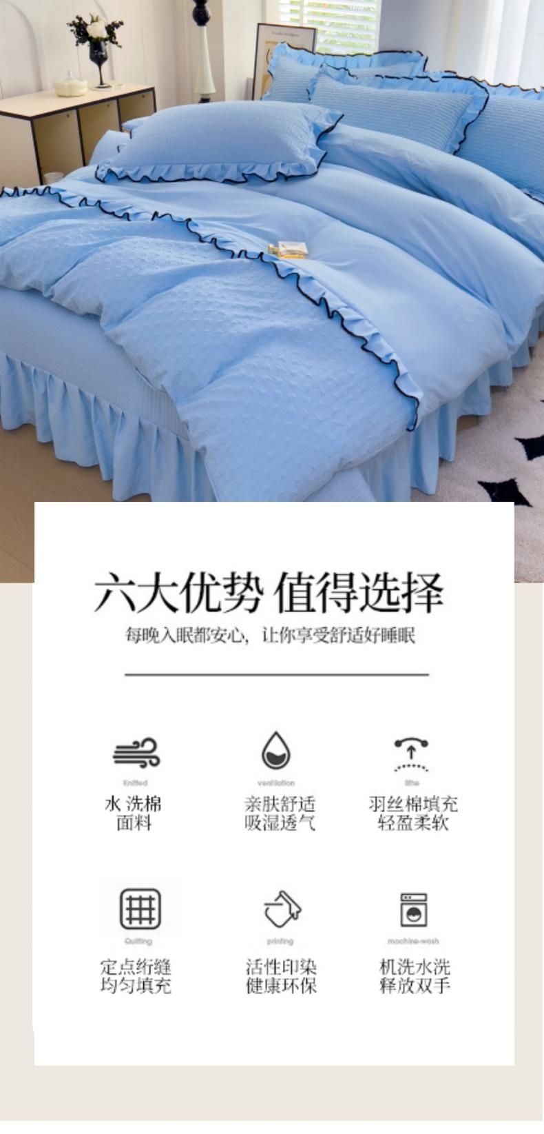 (总)畅畅家纺 2026新款春夏高档轻奢韩版提花花边床盖四件套水洗真丝冰丝套件,花边-粉色,花边-米白色,花边-蓝色,花边-浅玉