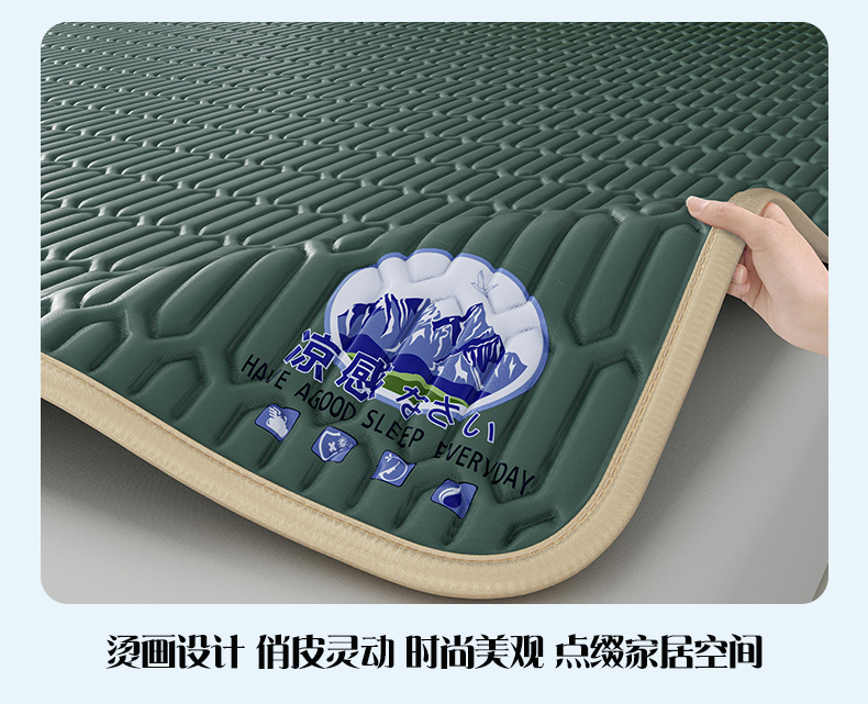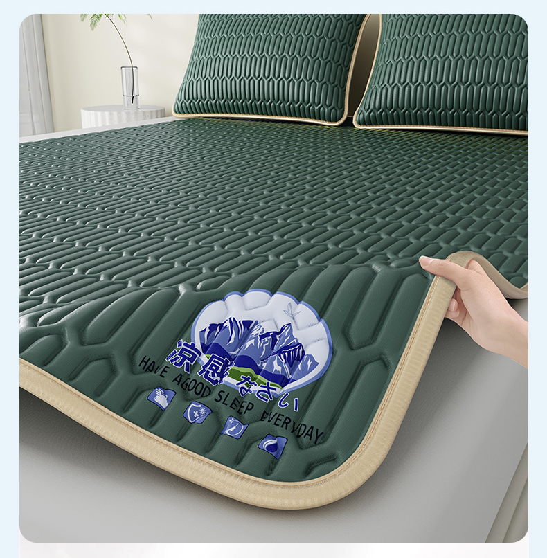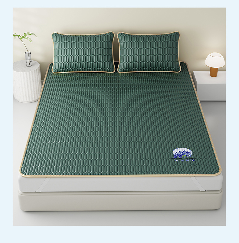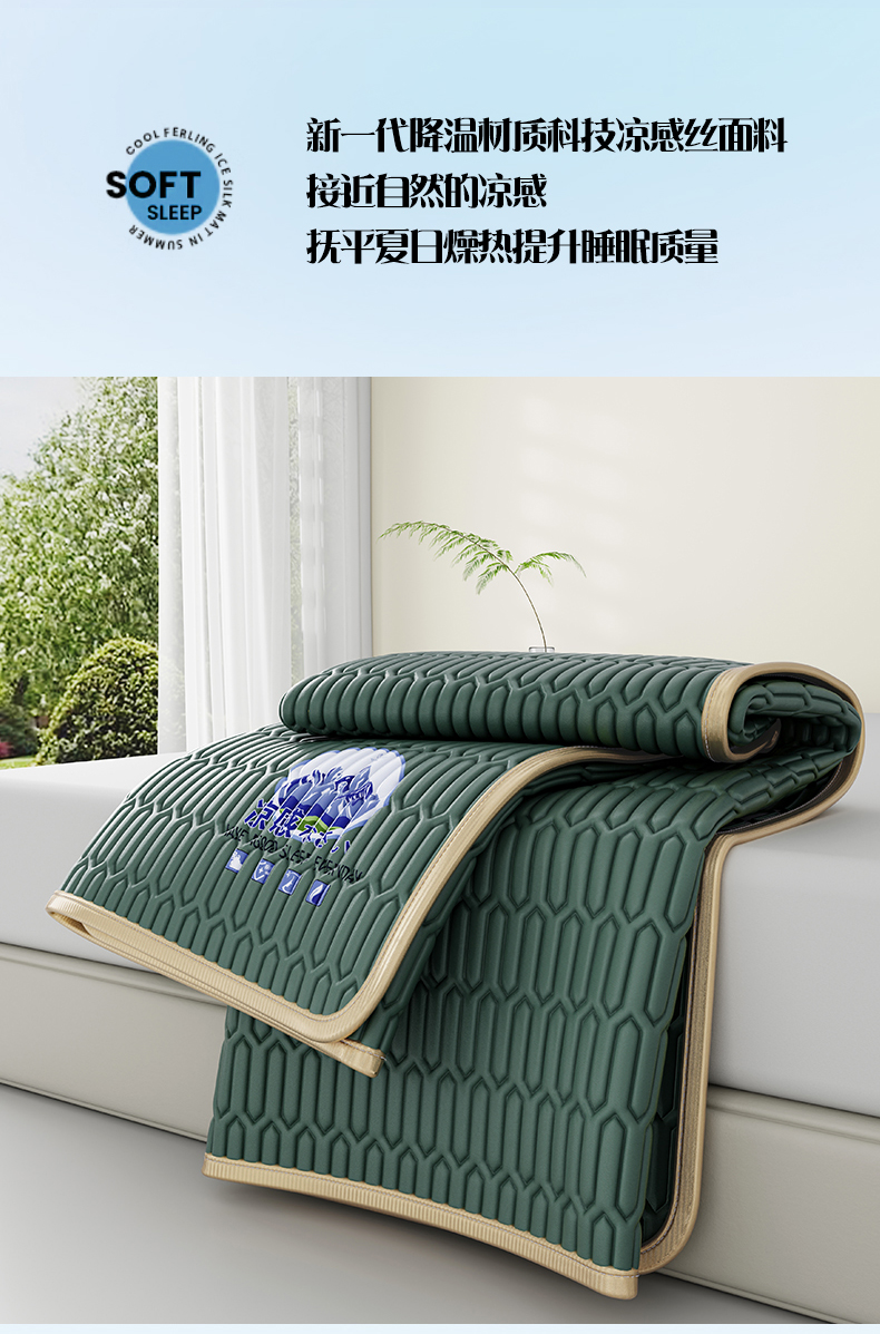 奇丝雅 2026新款夏季A类乳胶凉席冰丝席纯色家用双人冰丝凉席席子-大床 富士山-墨绿