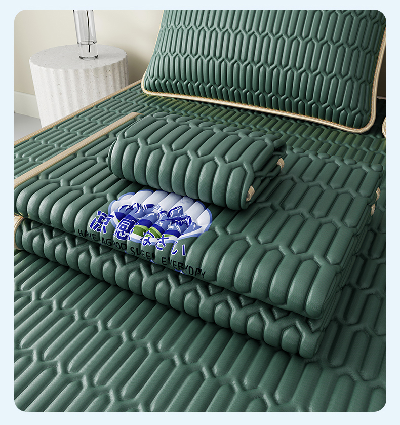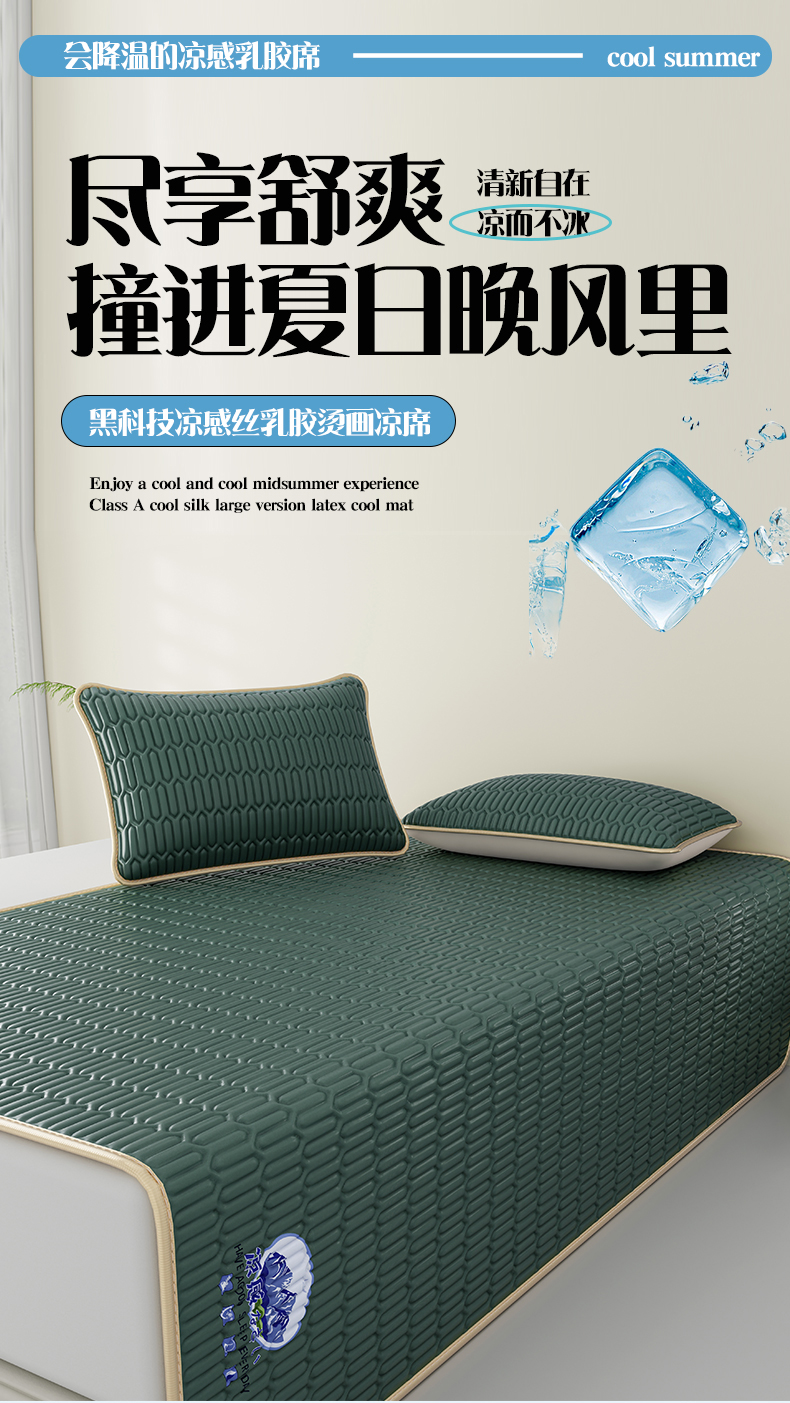 商品名称:奇丝雅 2026新款夏季A类乳胶凉席冰丝席纯色家用双人冰丝凉席席子-大床 富士山-墨绿
