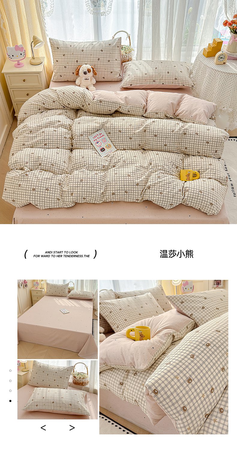 (总)铺尚美家纺 2026新款A类古法水洗仿棉云感纱四件套,萌兔小熊,安娜,波点熊,布丁狗,草莓啵啵,草莓熊-粉,草莓熊-蓝,丁香紫,格纹萌友团,格子熊,狗狗乐园,乖乖狗-灰,乖乖狗-玉,花园小猫,猫狗狂欢夜,玫瑰庄园,莫兰迪,奶绿牛油果,蔷薇花语,条纹小熊,小马星河,小奶团,星芒啵啵熊,雪花世界,英伦小木马,紫罗兰