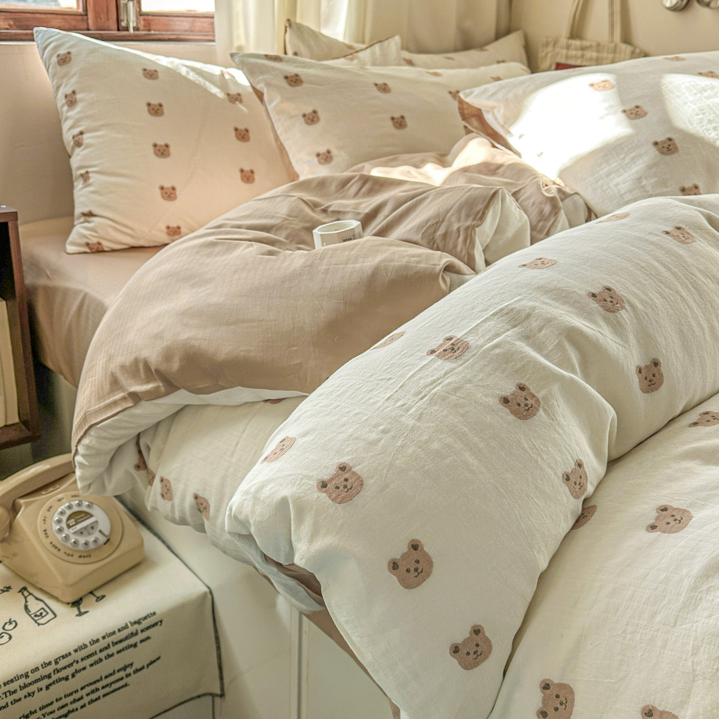 (总)田野 2025新款全棉水洗棉提花四件套,花田,花颜,帽子狗,蘑菇,飘带,泰迪狗,小树林-咖,小象,小雨点,樱桃-绿