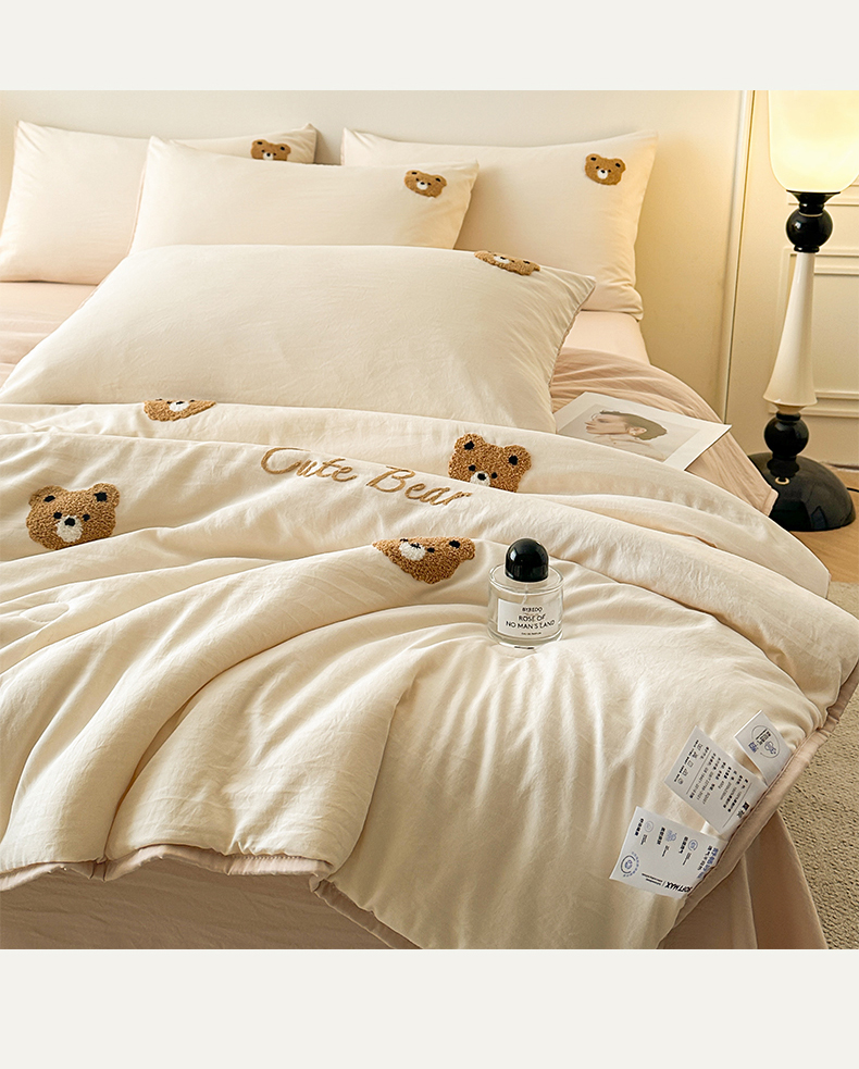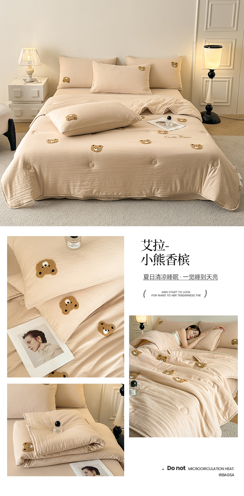 商品名称:(总)遇见家居生活馆 2026新款水洗棉毛巾绣夏被四件套-艾拉