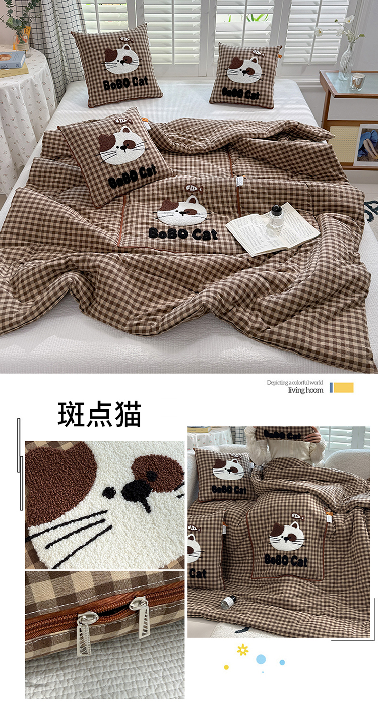 (总)宝马家纺(原梦童画) 2025新款牛奶绒贴布绣抱枕被可爱猫咪,猫咪-咖