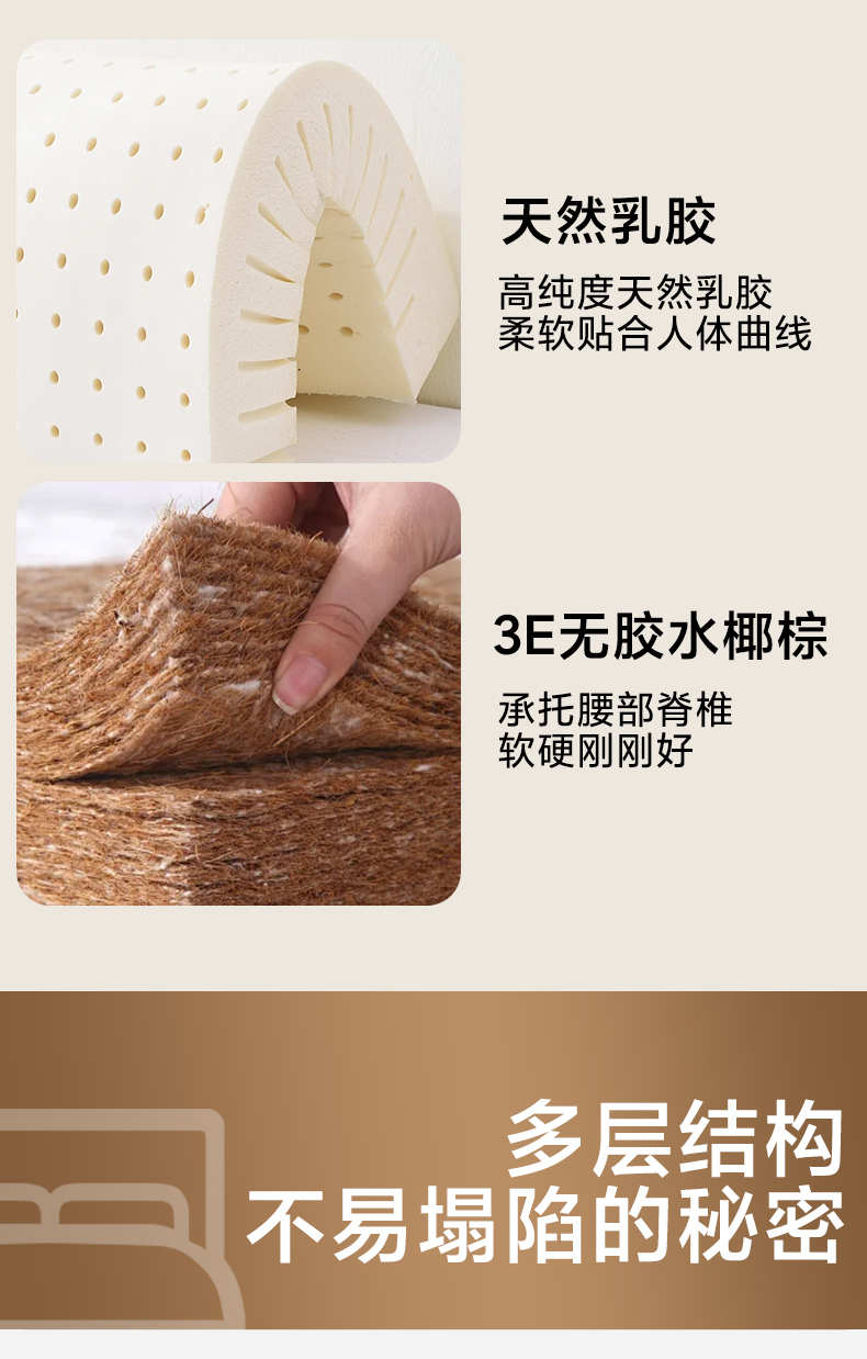当前位置: 91家纺网 > 商品网购 > 床垫/床褥 > 普通床垫 > 时奥家纺 2026新款3E环保椰棕乳胶床垫-云梦白 5cm棕+2cm乳胶(8cm)