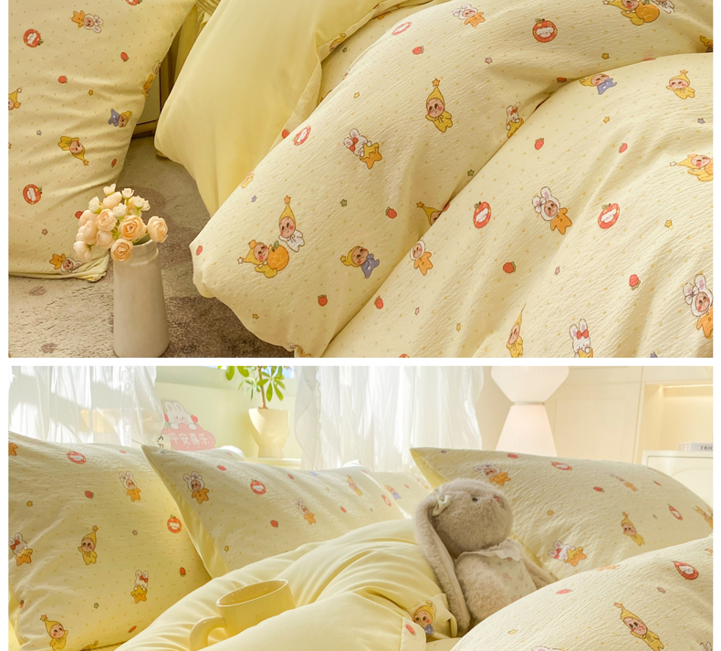 (总)优贝家纺 2026春夏新款韩系小清新水洗棉古法棉夹棉床盖四件套-风格二,杏芙萌犬,奶咖萌兔,时尚萌犬,桃粉花漾,甜心小熊,雾灰粉芙,星星萌宠,芋泥奶兔,芋雾花眠