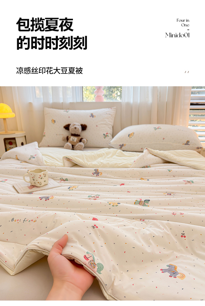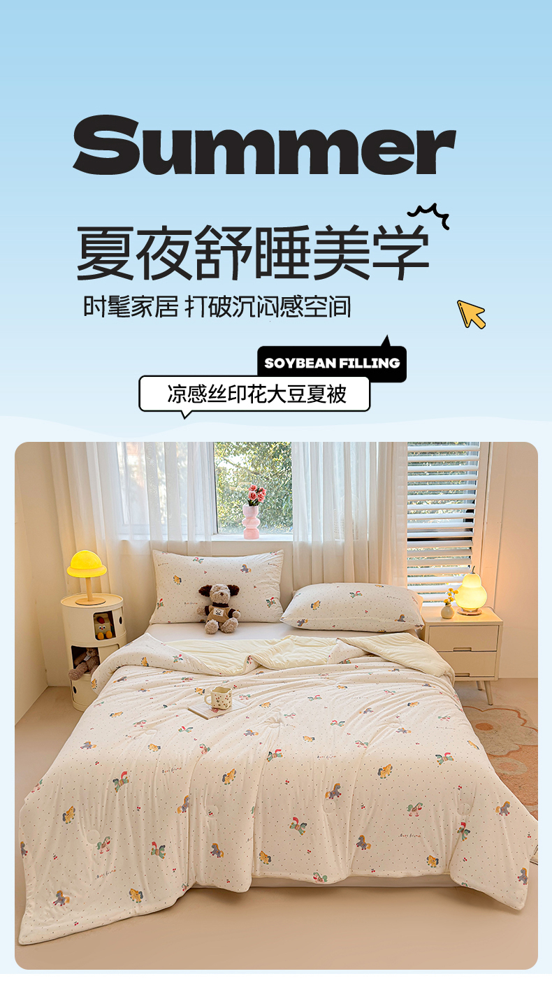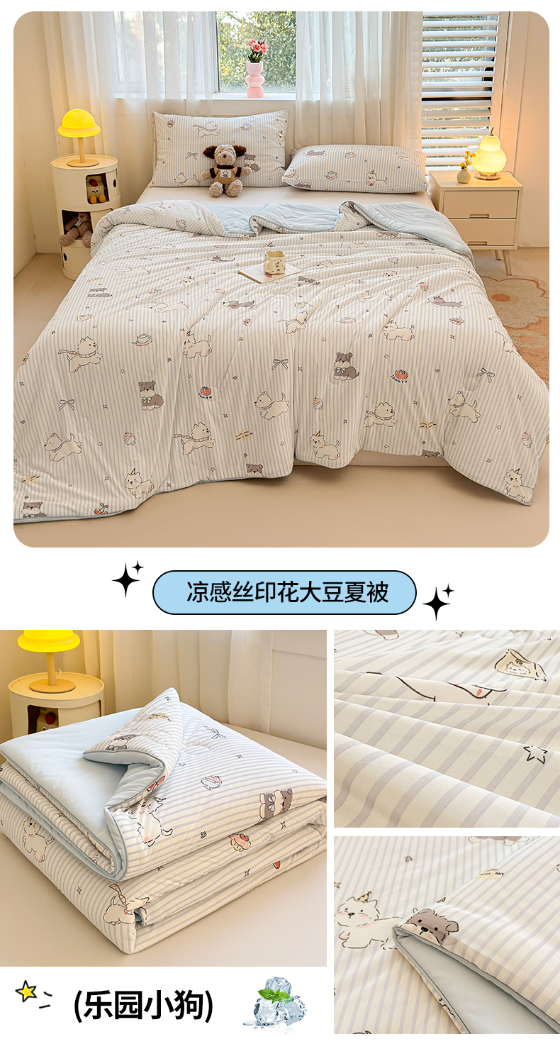 (总)景眠 2026新款凉感丝印花仿锦氨大豆夏被夏凉被空调被,欢快美食家,蓝花猫咪,乐园小狗,丽舍之梦,梦回浅浅,秘密花园,犬马之恋,甜心小熊,西瓜派,夏日铃兰,叶柔苏夏,樱桃兔