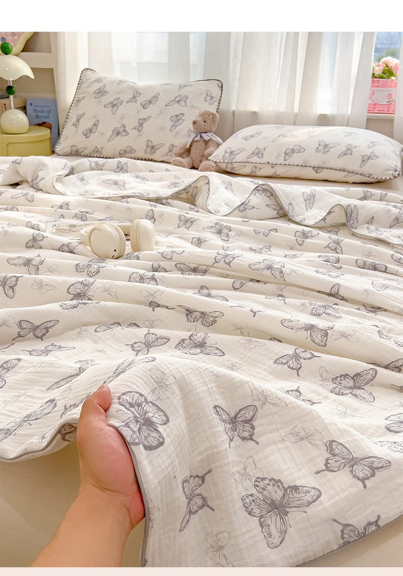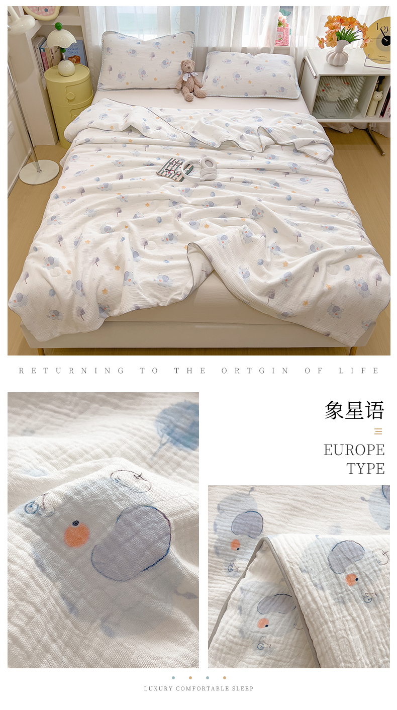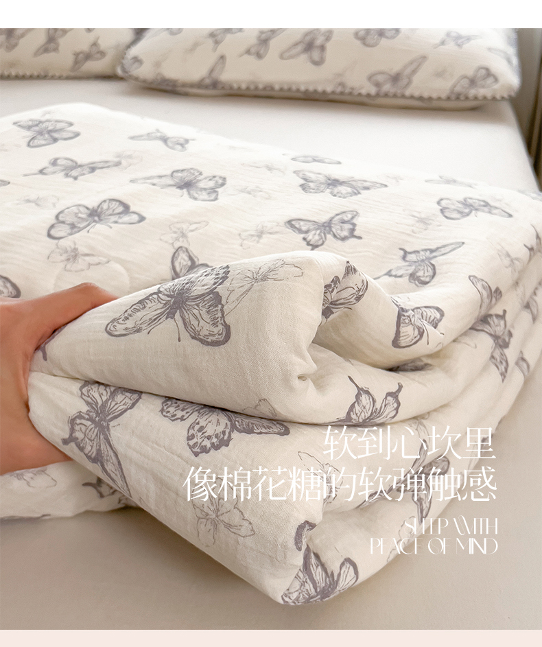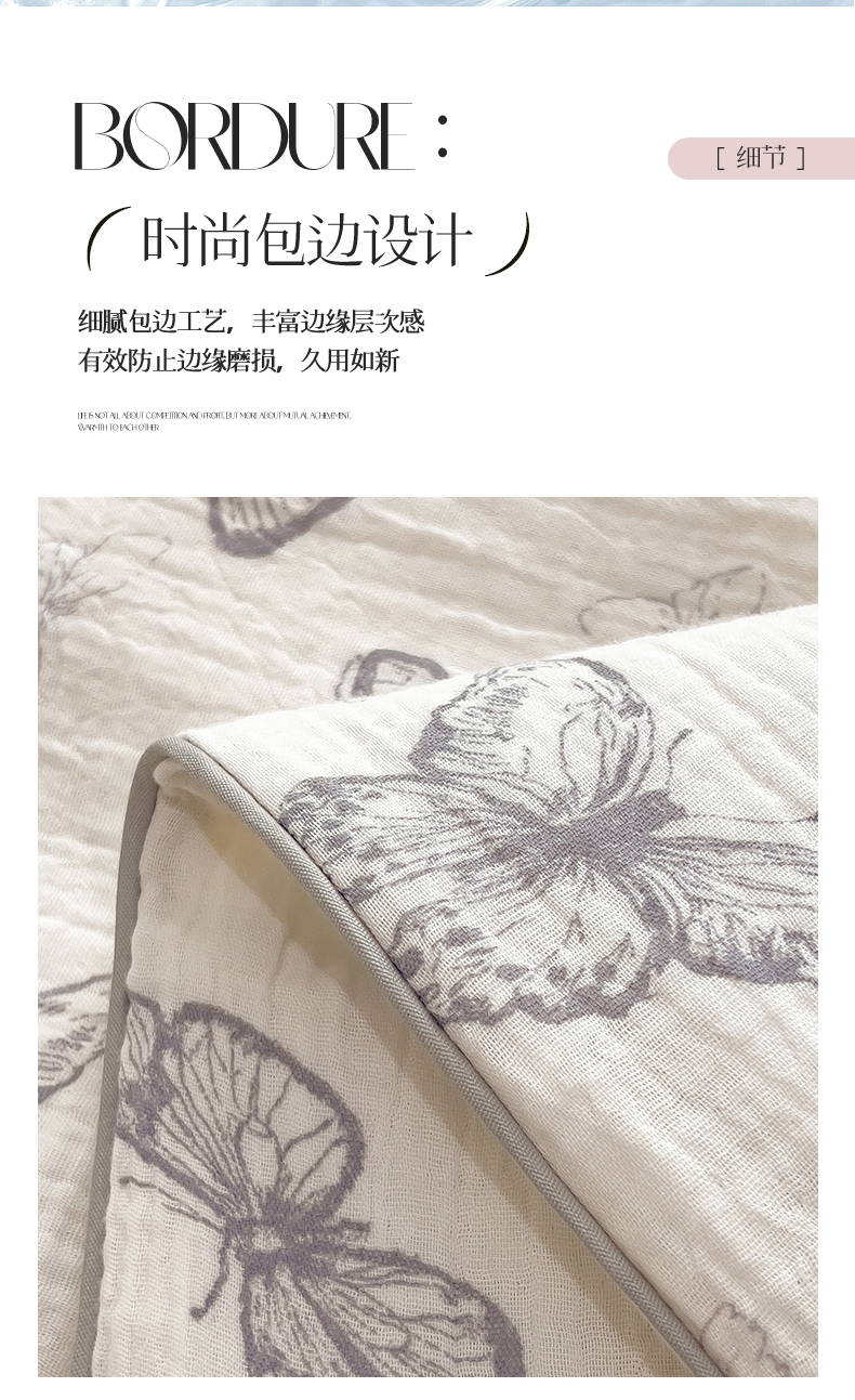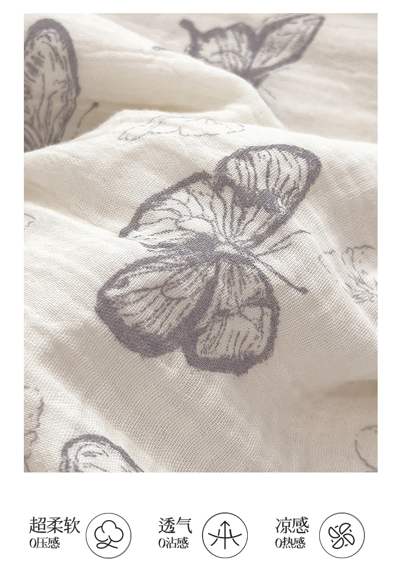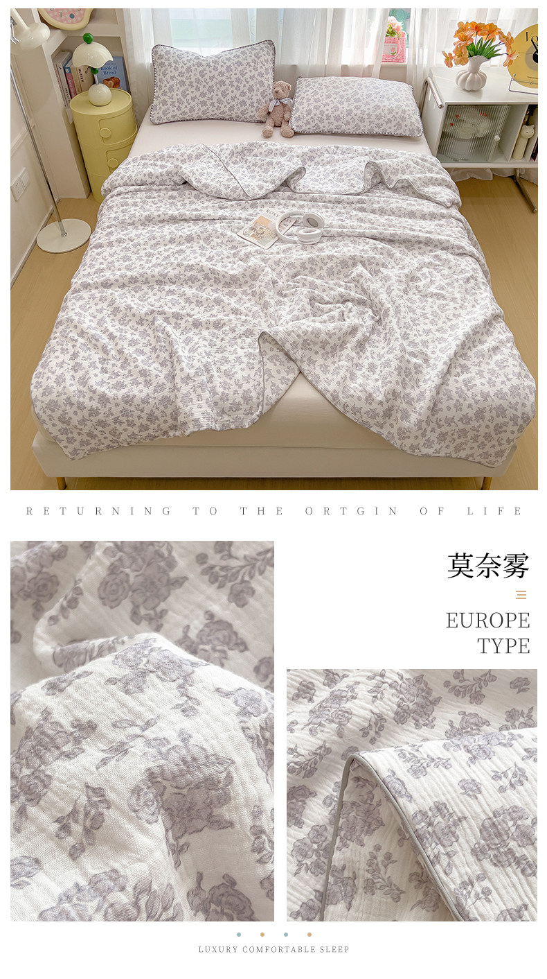 商品名称:兄弟坊 2026春夏新款全棉纯棉印花双层皱皱纱(滚边款)夏被纱布夏凉被午睡被盖毯夏凉被 云间羽