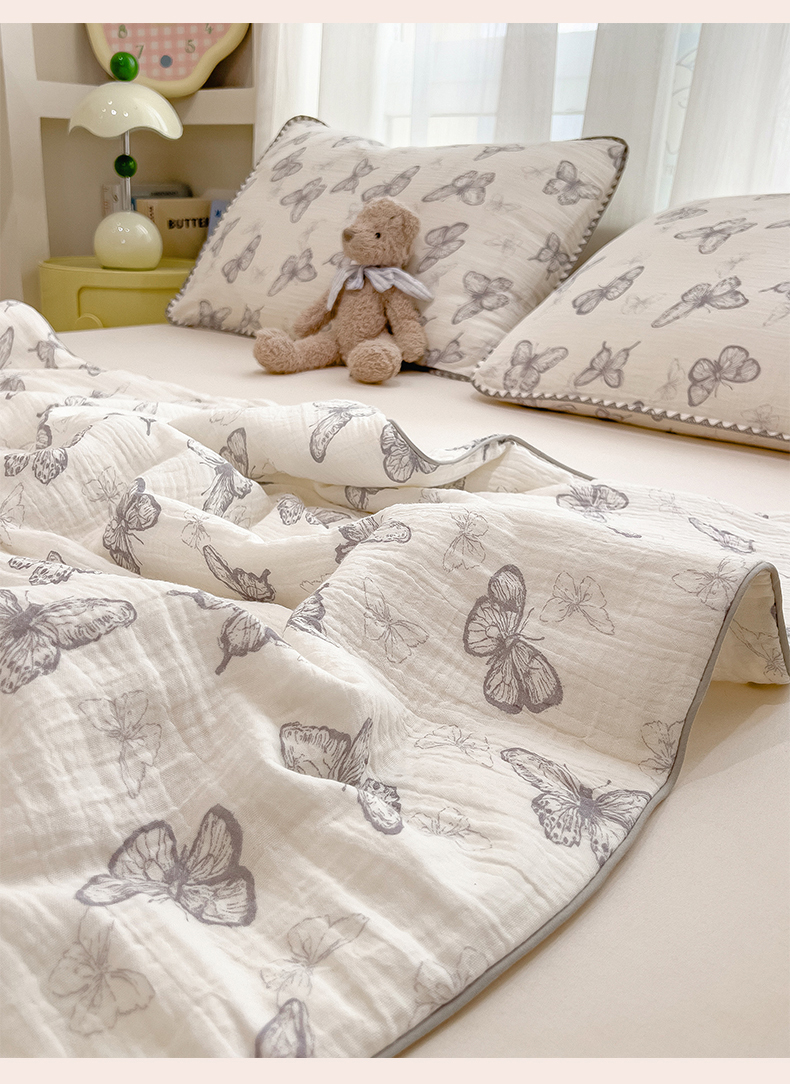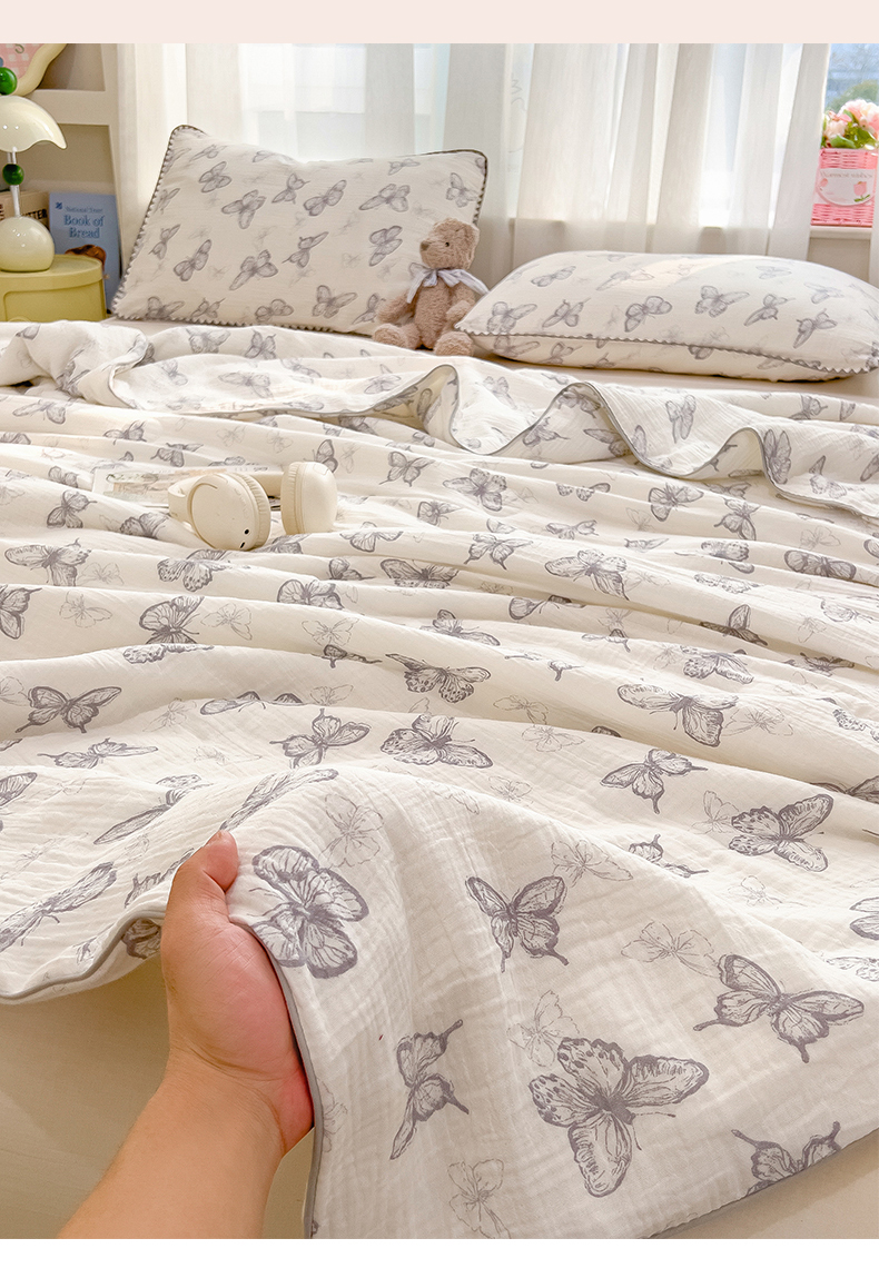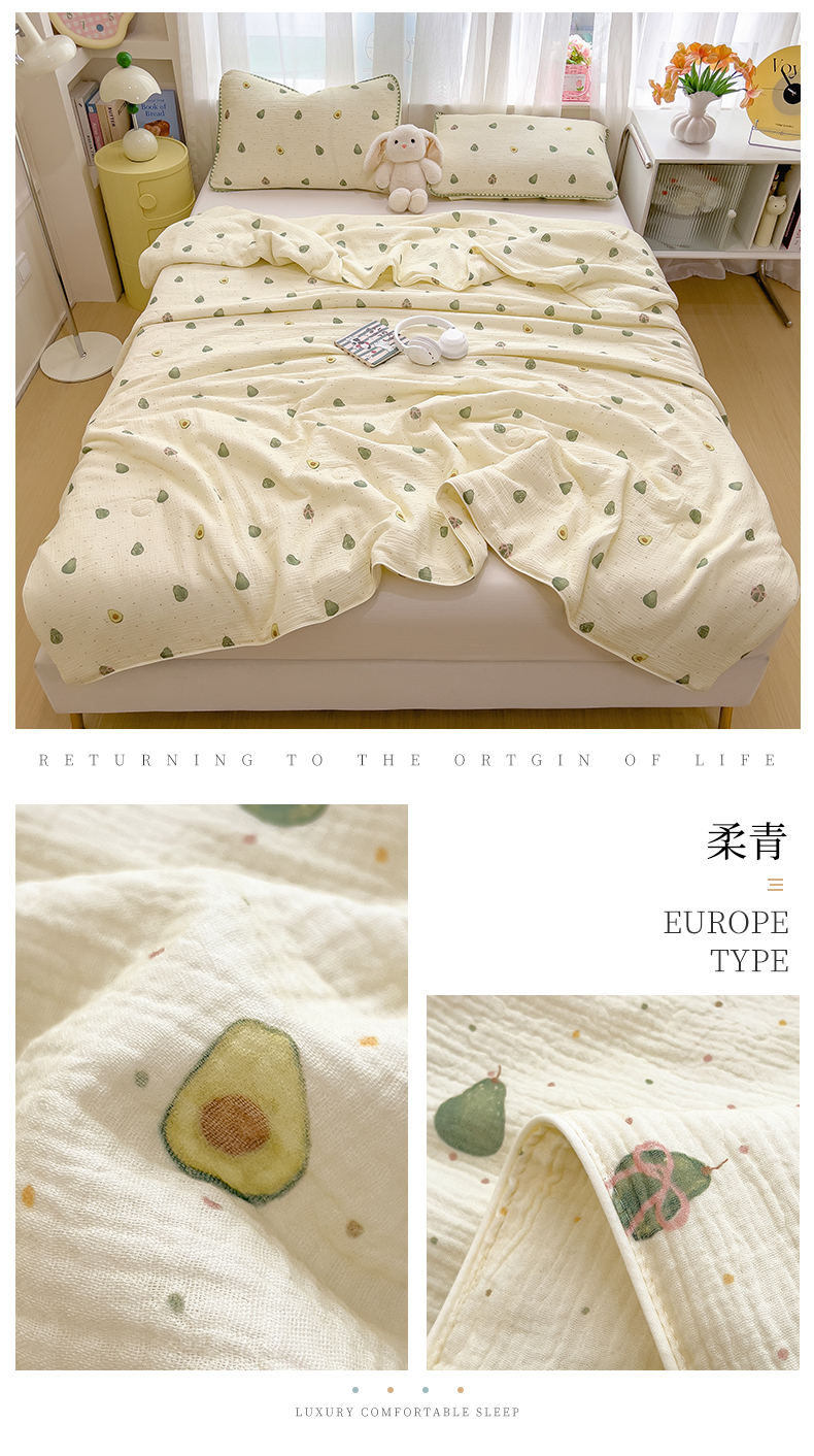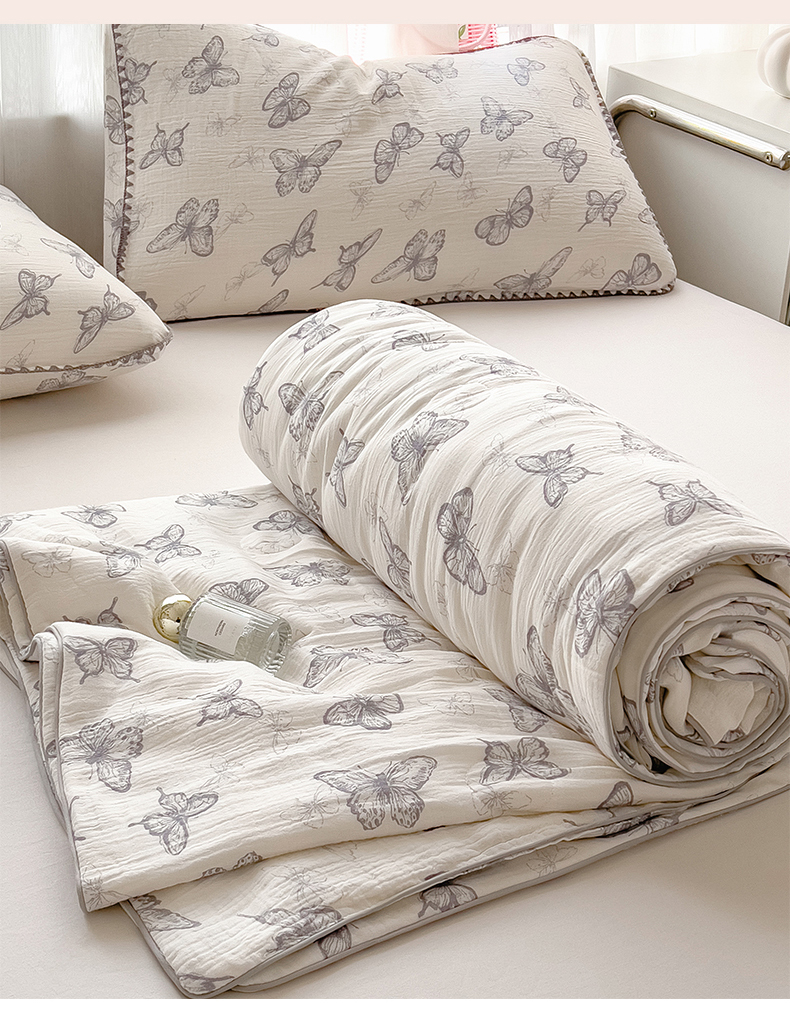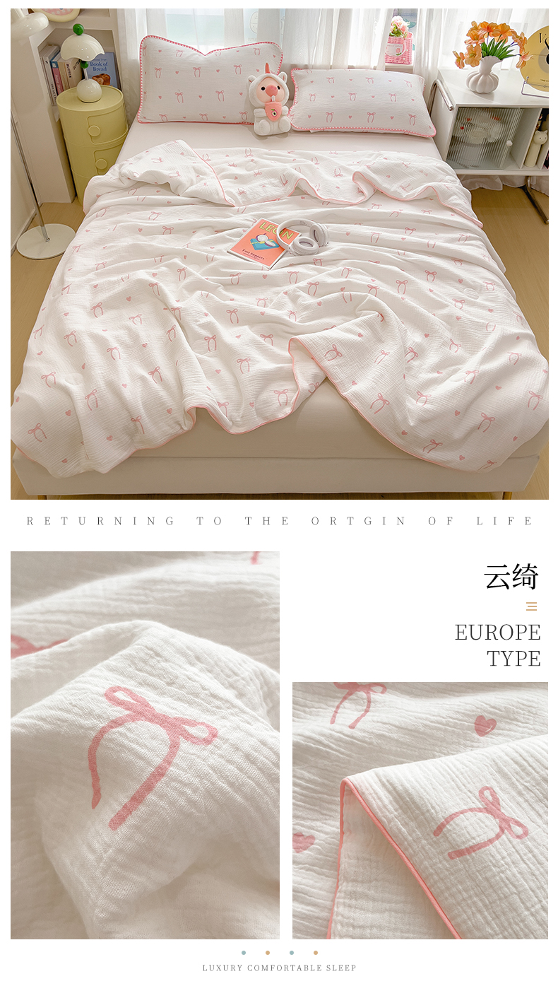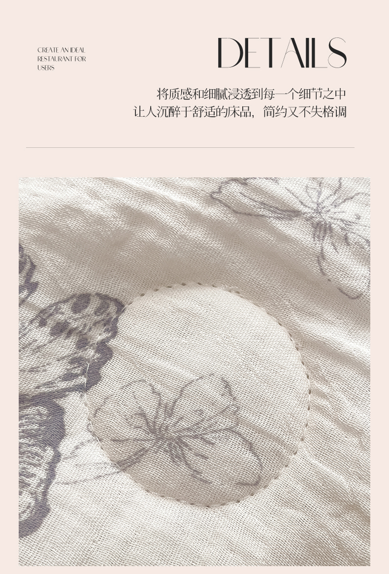 商品名称:兄弟坊 2026春夏新款全棉纯棉印花双层皱皱纱(滚边款)夏被纱布夏凉被午睡被盖毯夏凉被 云间羽