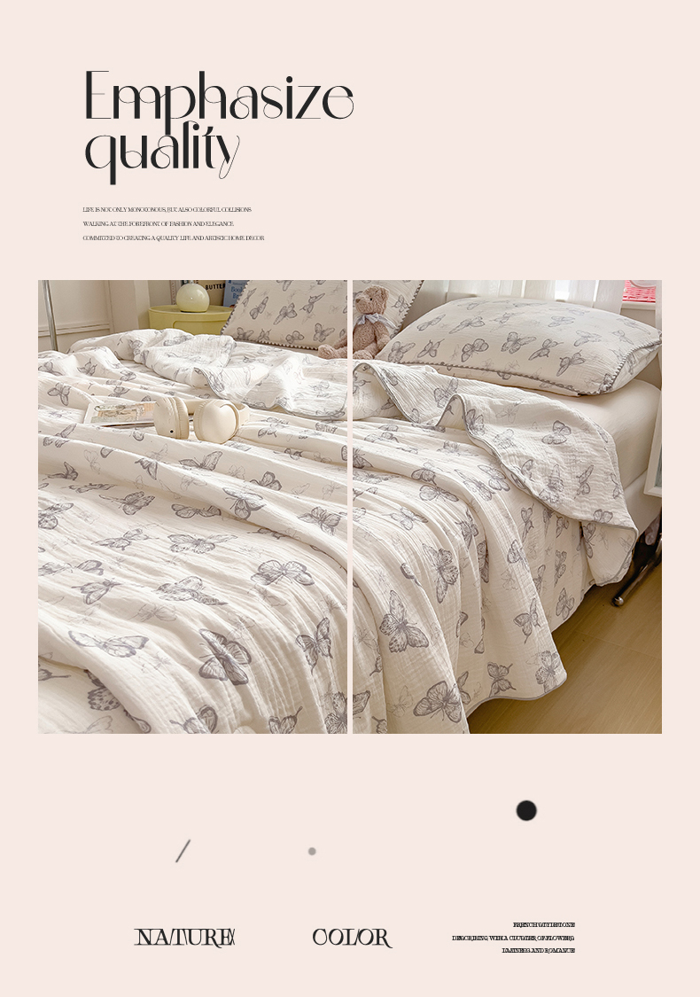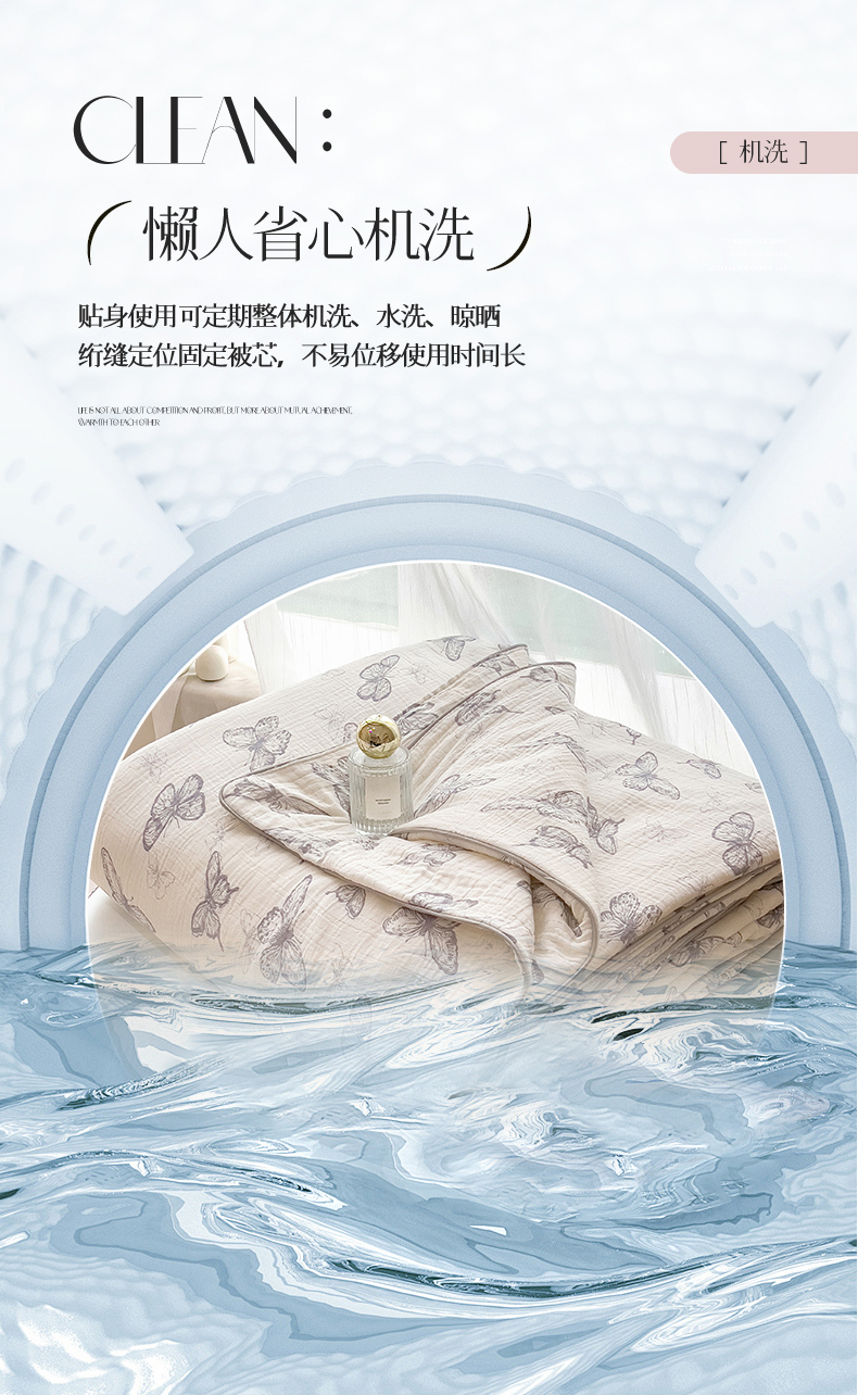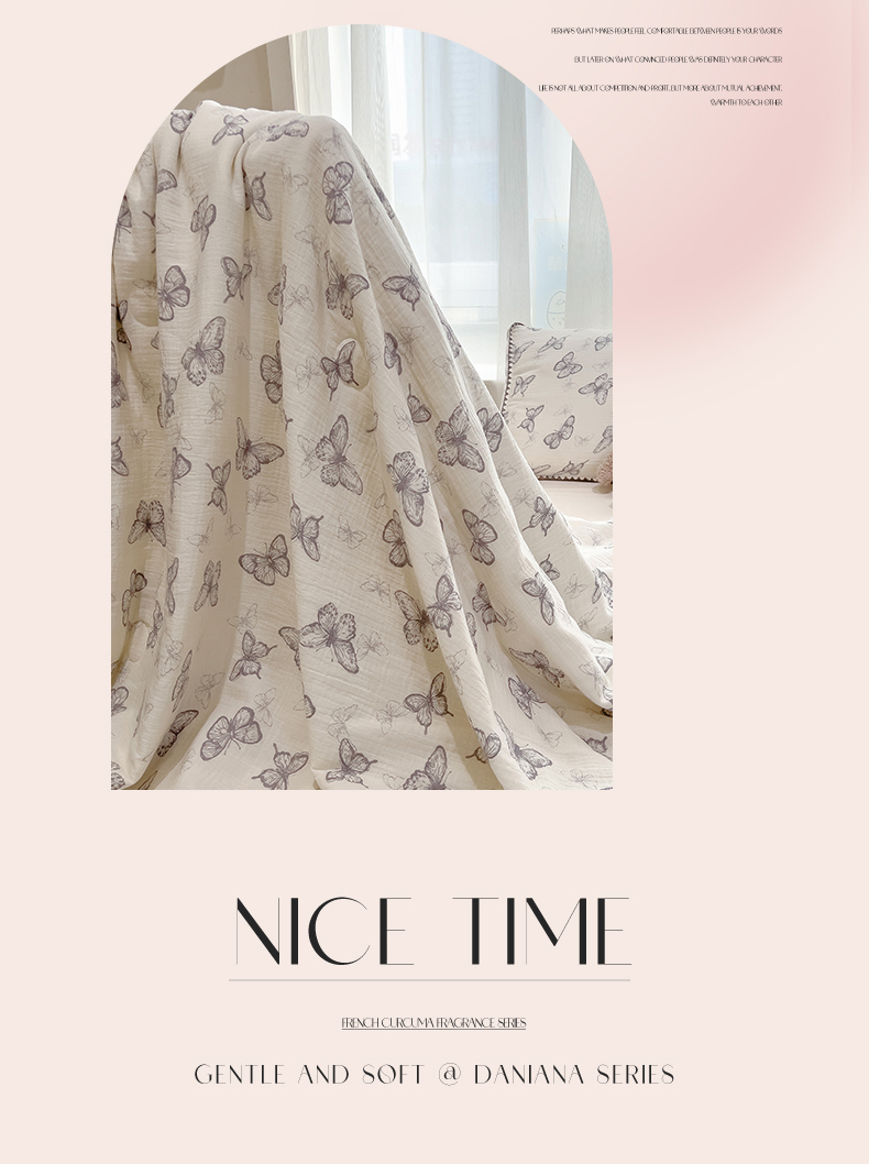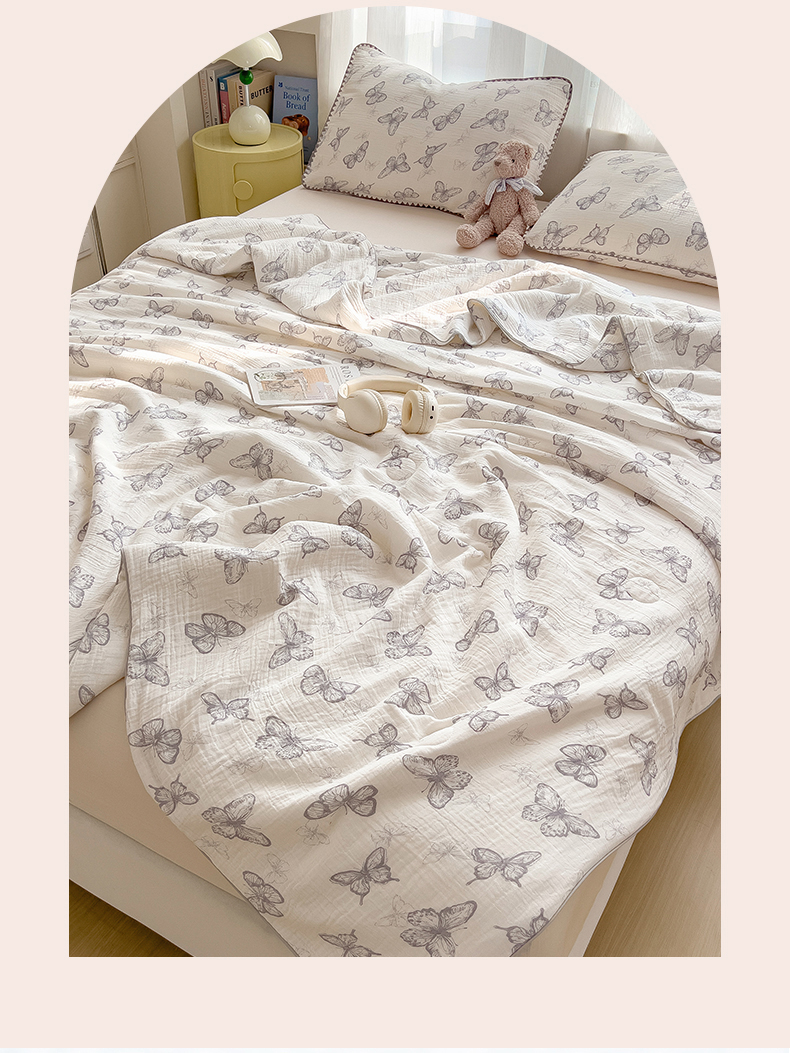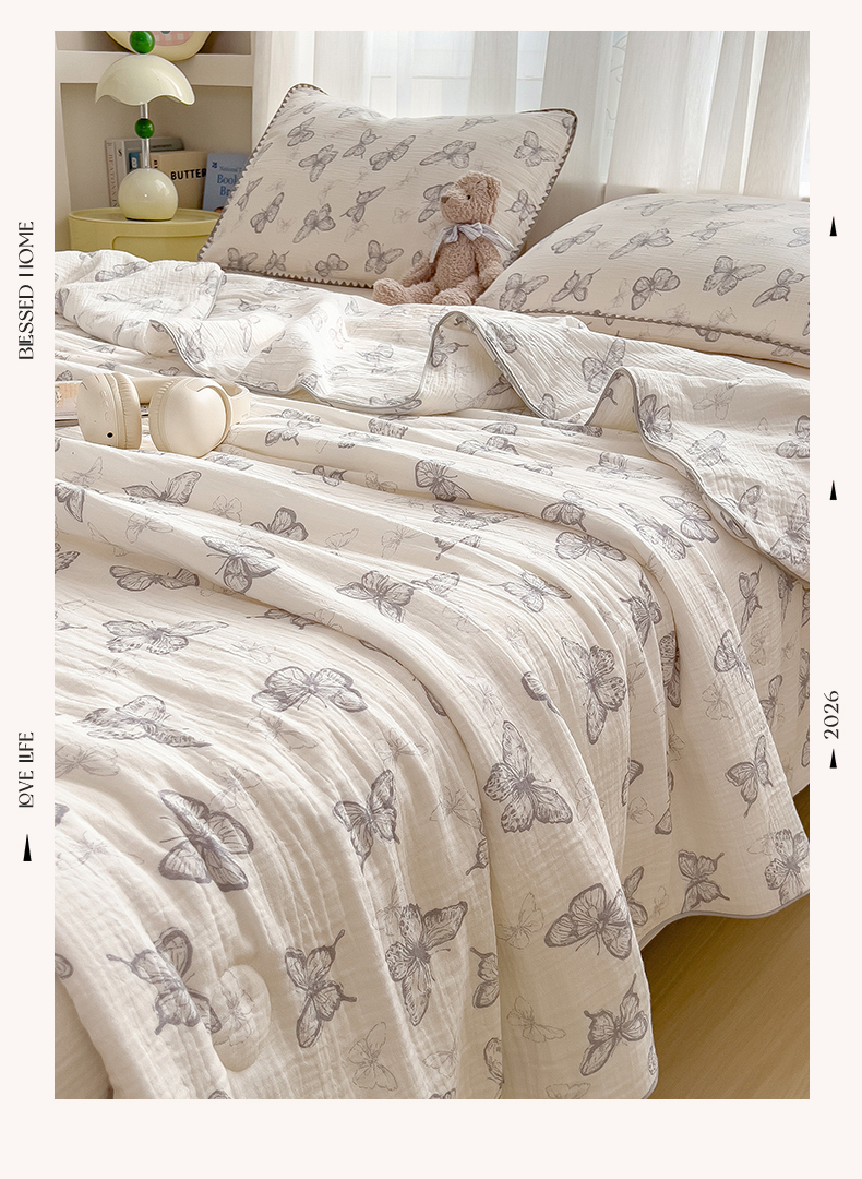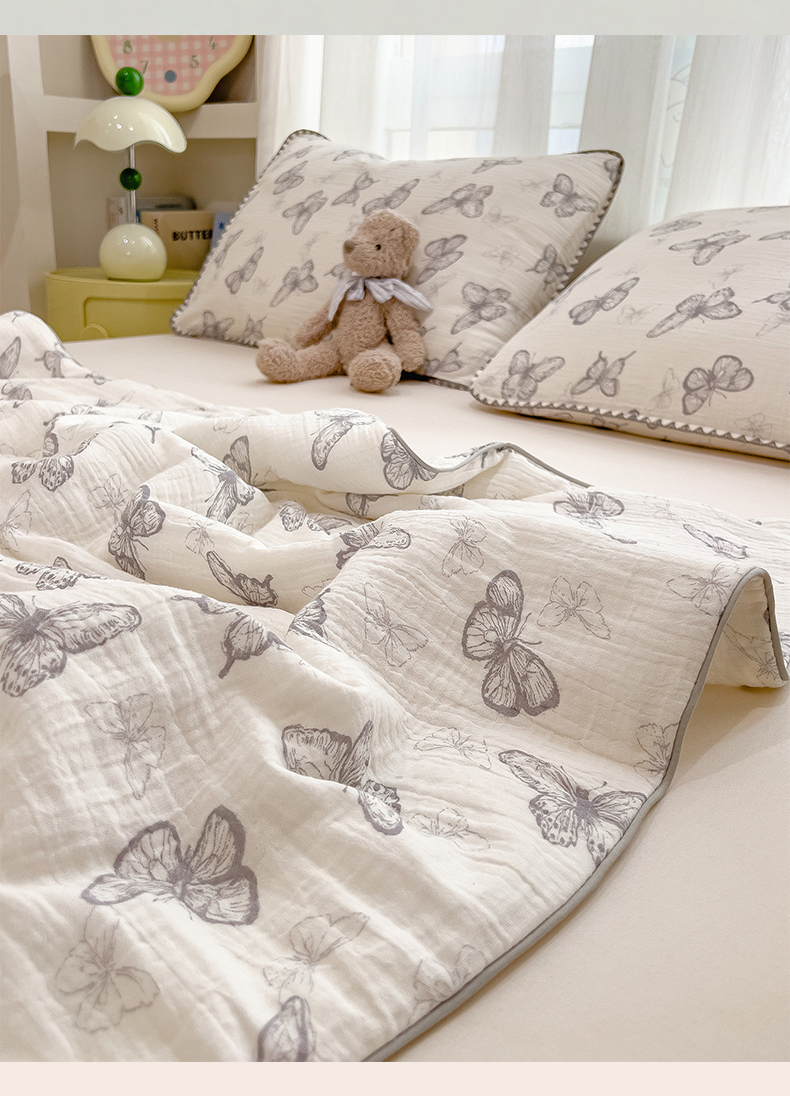 商品名称:兄弟坊 2026春夏新款全棉纯棉印花双层皱皱纱(滚边款)夏被纱布夏凉被午睡被盖毯夏凉被 云间羽