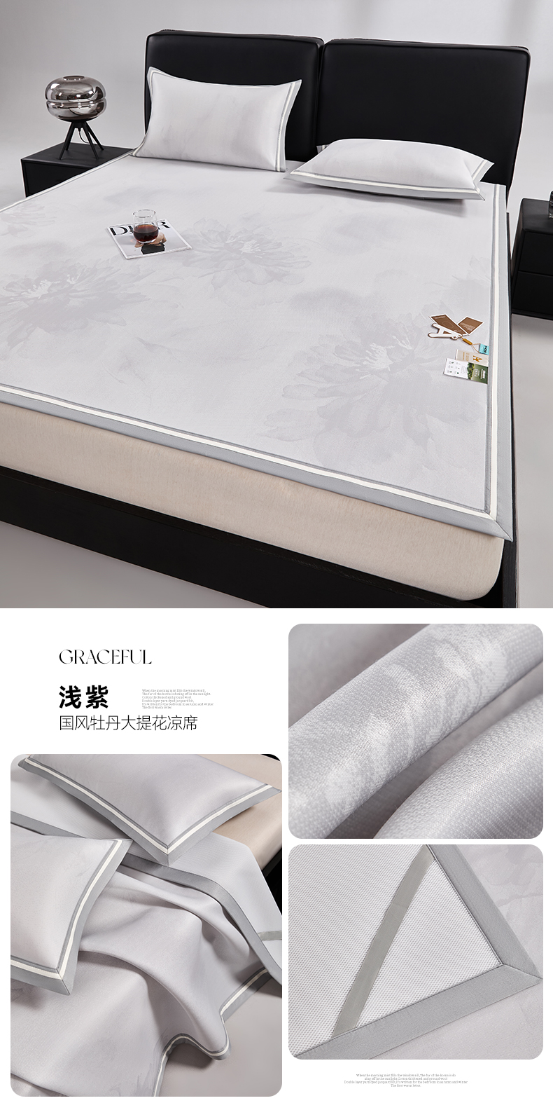 (总)小牛席业 2026春夏新款【实拍风格】PE凉感凉席席子-轻奢赫本(床笠款),轻奢赫本-灰色,轻奢赫本-粉色,轻奢赫本-蓝色,轻奢赫本-香槟