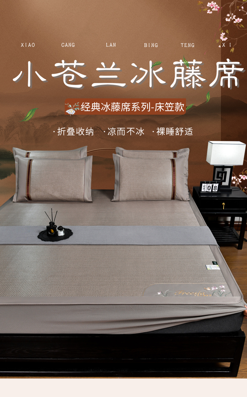 当前位置: 91家纺网 > 商品网购 > 床上用品 > 凉席 > 藤席 > 小牛席业 2026新款小苍兰冰藤席系列(床笠款)凉席藤席冰藤席冰丝席竹席乳胶席 小苍兰清香冰藤席-床笠款(香槟)