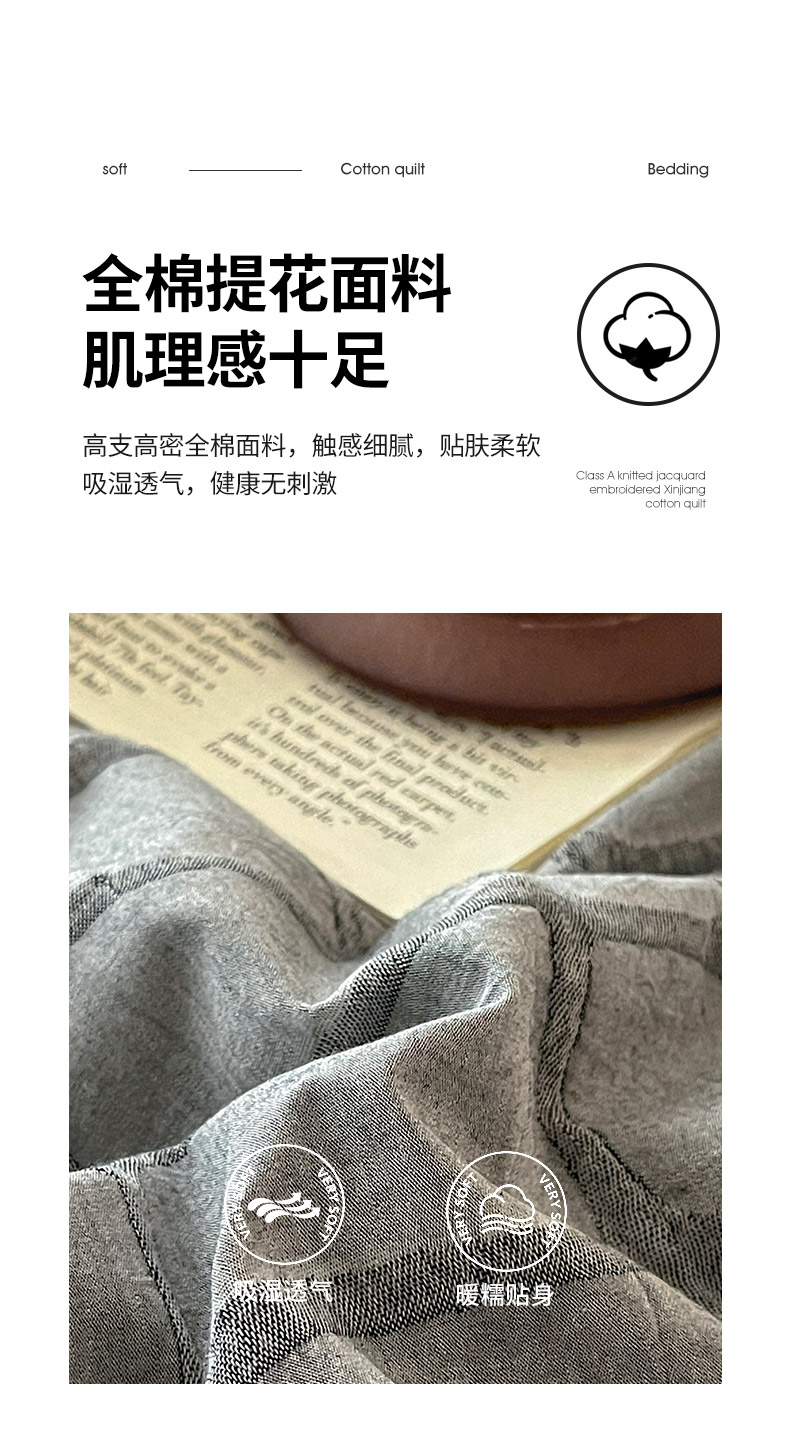 (总)绒城 2026新款全棉纯棉大提花新疆棉花夏被夏凉被空调被四件套-律动,律动-奶咖,律动-浅灰,律动-深灰,律动-天兰