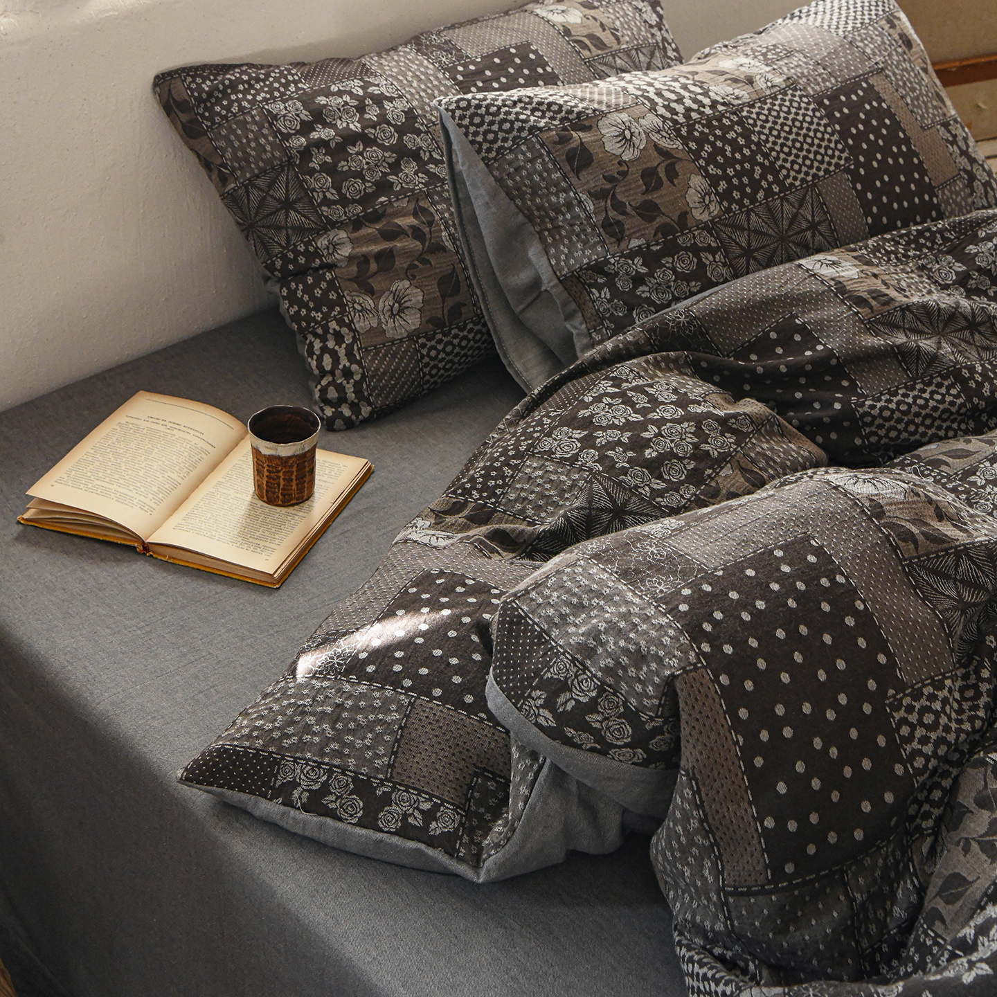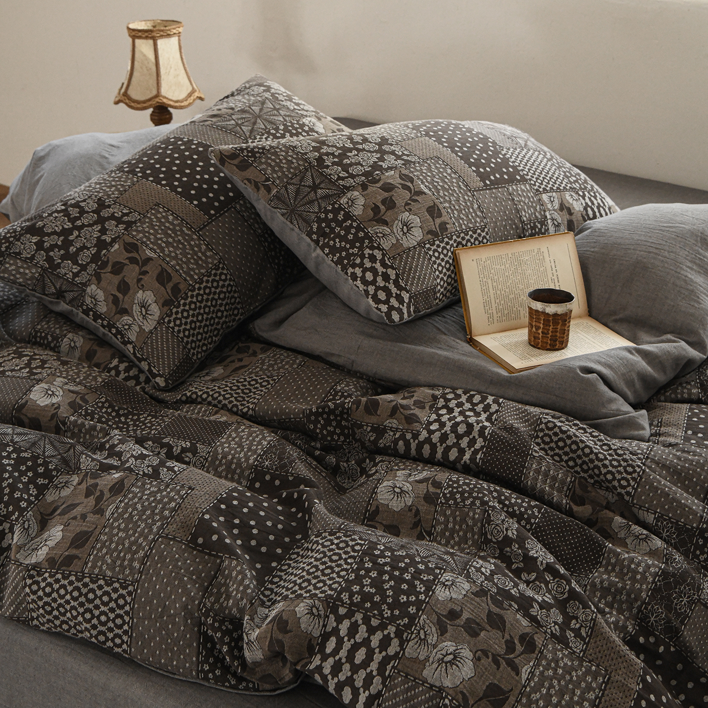 (总)松色家居 2026新款全棉色织四件套-雾屿蔷薇,雾屿蔷薇-灰
