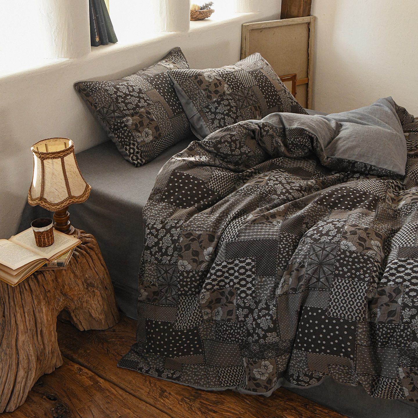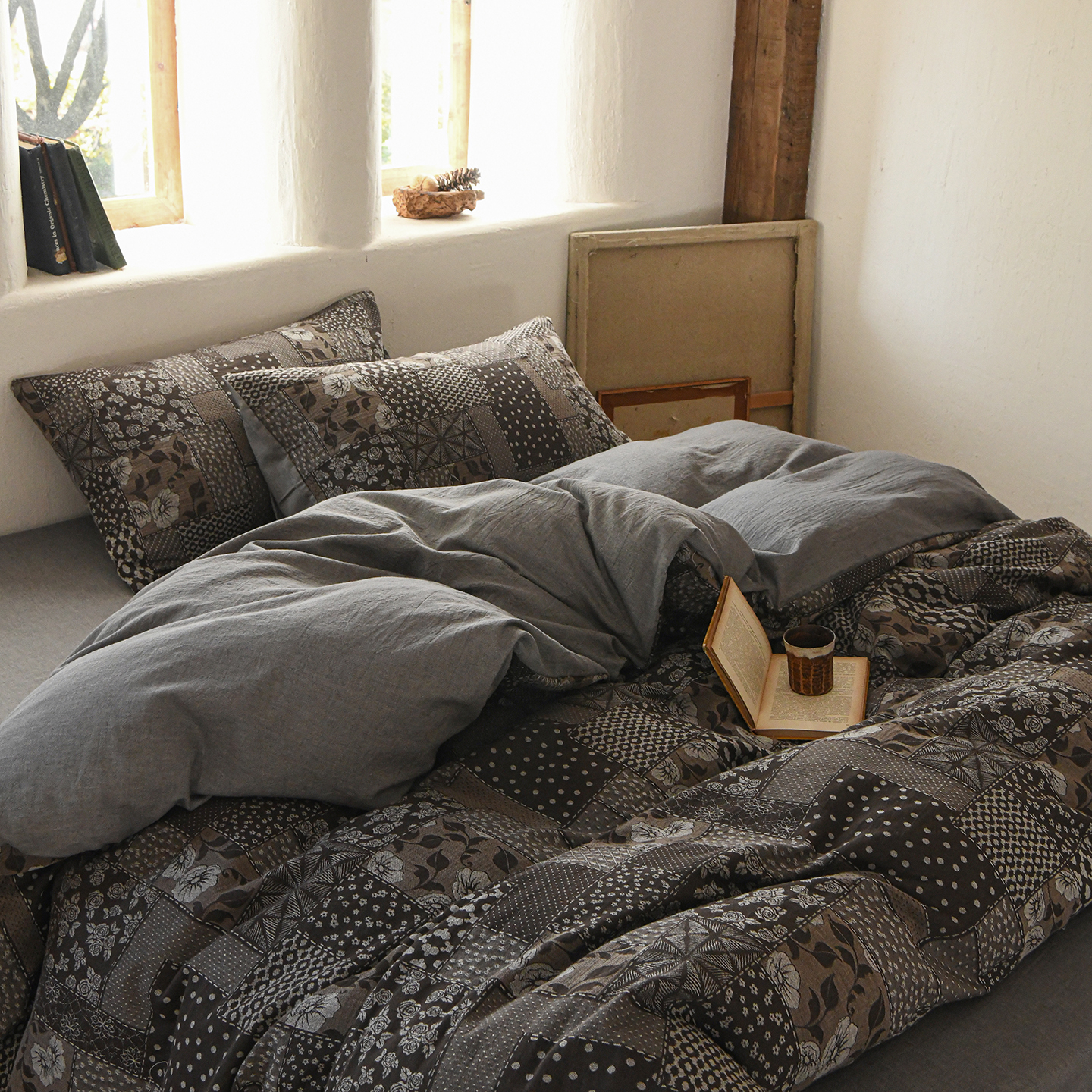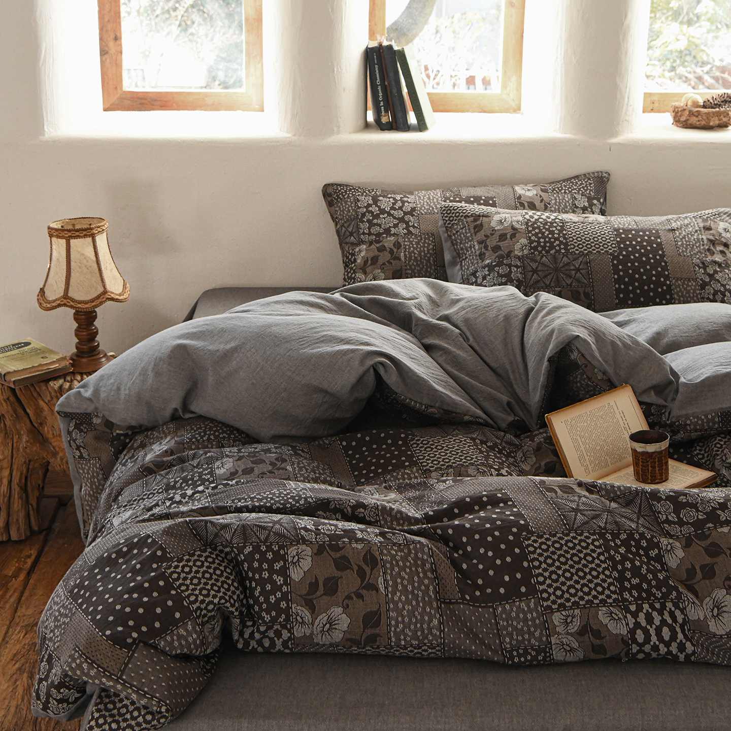 (总)松色家居 2026新款中古侘寂风织物四件套-墨韵森林,墨韵森林-棕