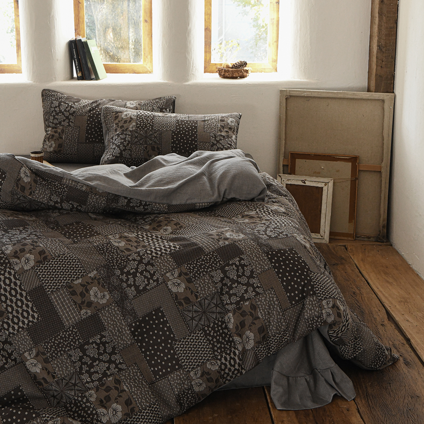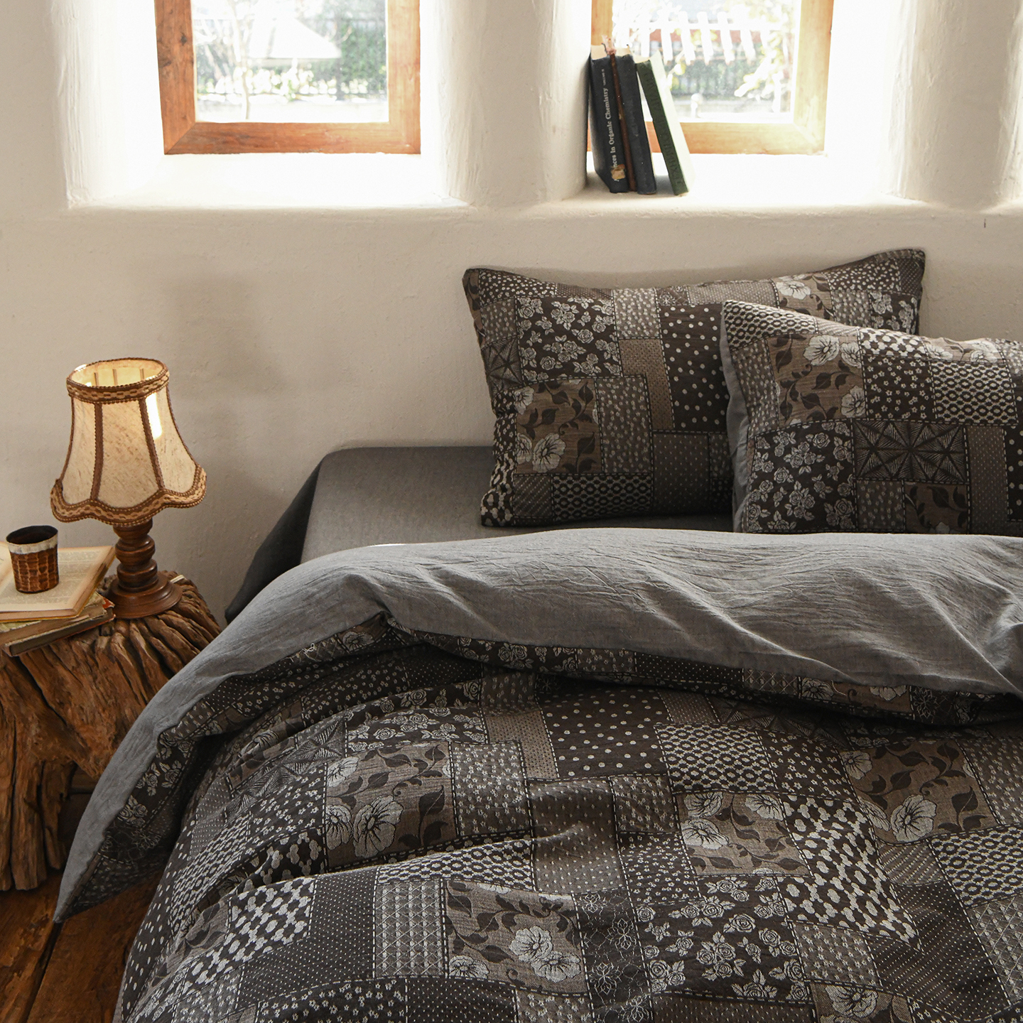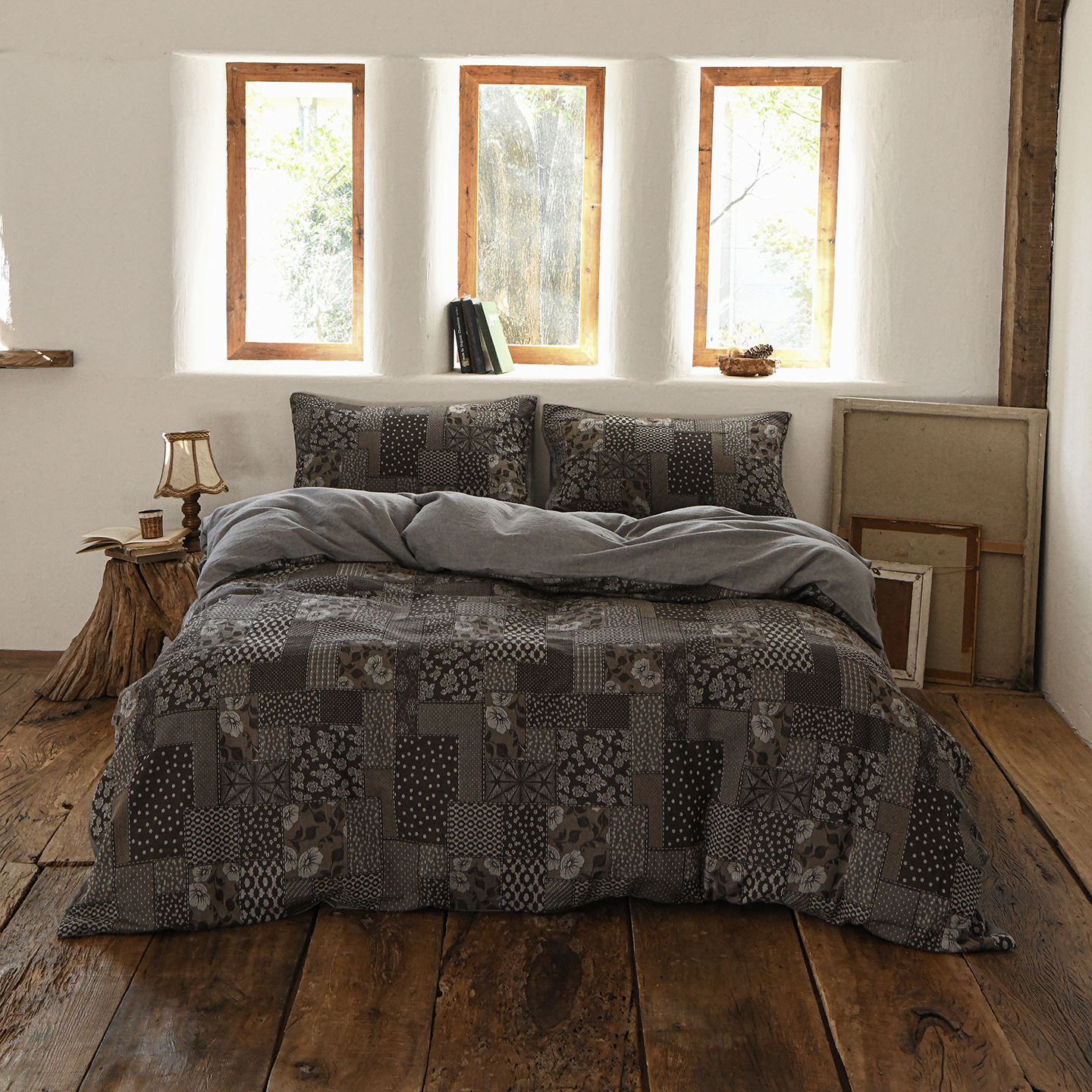 (总)松色家居 2026新款中古侘寂风织物四件套-墨韵森林,墨韵森林-棕