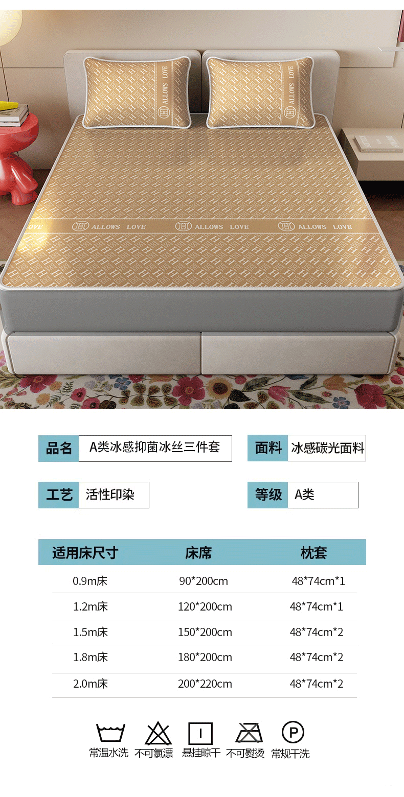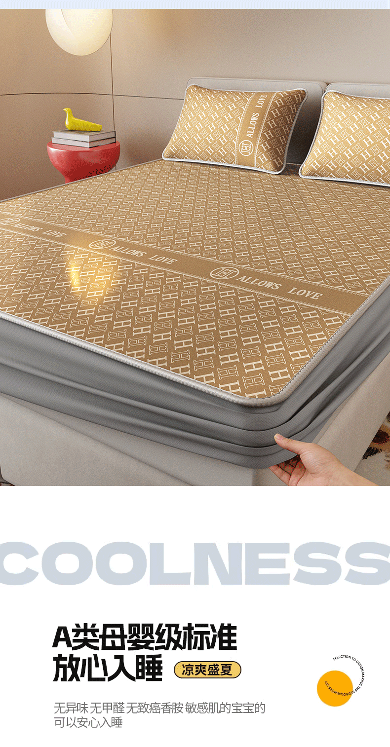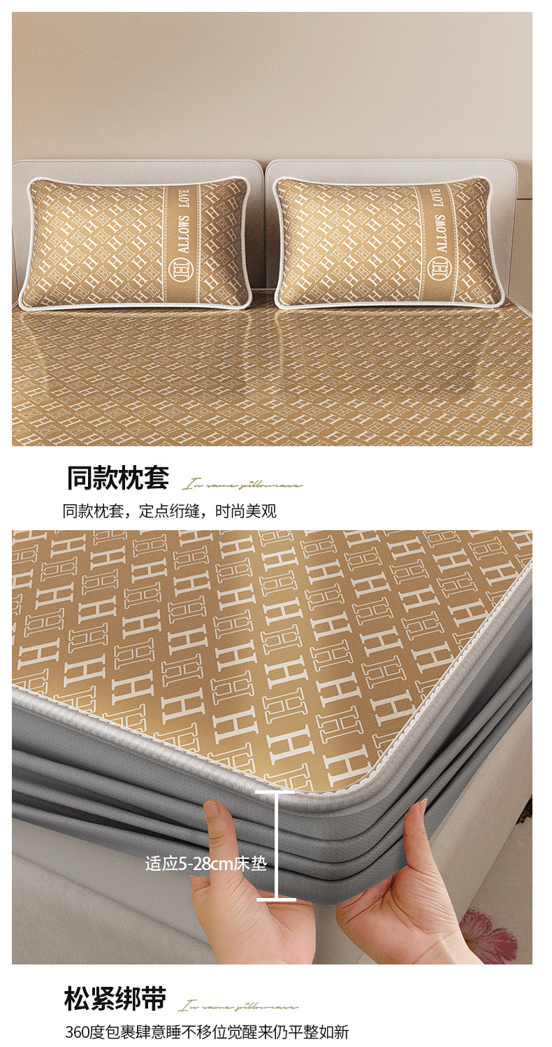 当前位置: 91家纺网 > 商品网购 > 床上用品 > 凉席 > 凉席套件 > 好福居 2026新款A类冰感抑菌印花冰丝席凉席-床笠款-床席款 咖H-床笠款