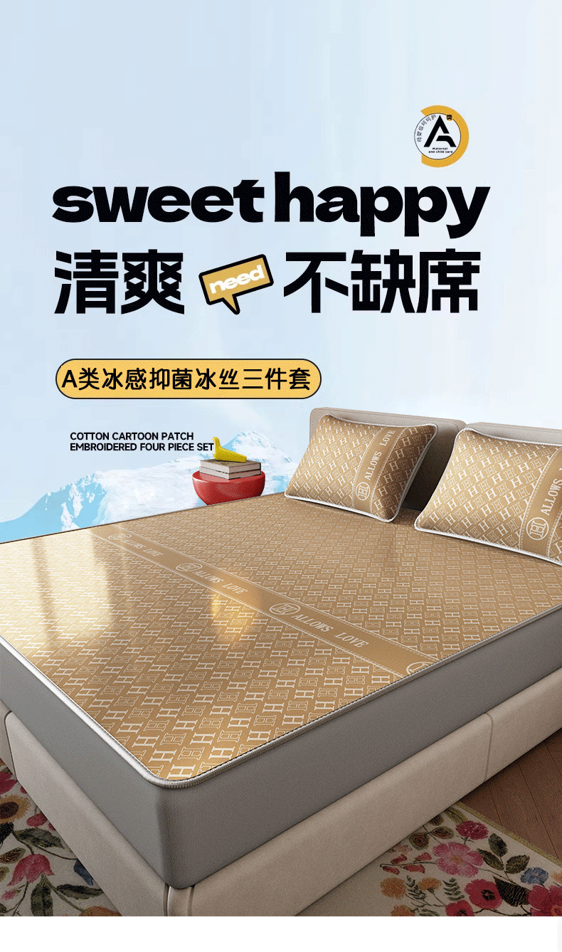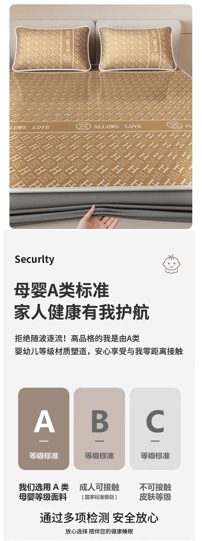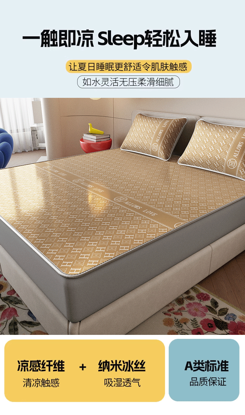 当前位置: 91家纺网 > 商品网购 > 床上用品 > 凉席 > 凉席套件 > 好福居 2026新款A类冰感抑菌印花冰丝席凉席-床笠款-床席款 咖H-床笠款